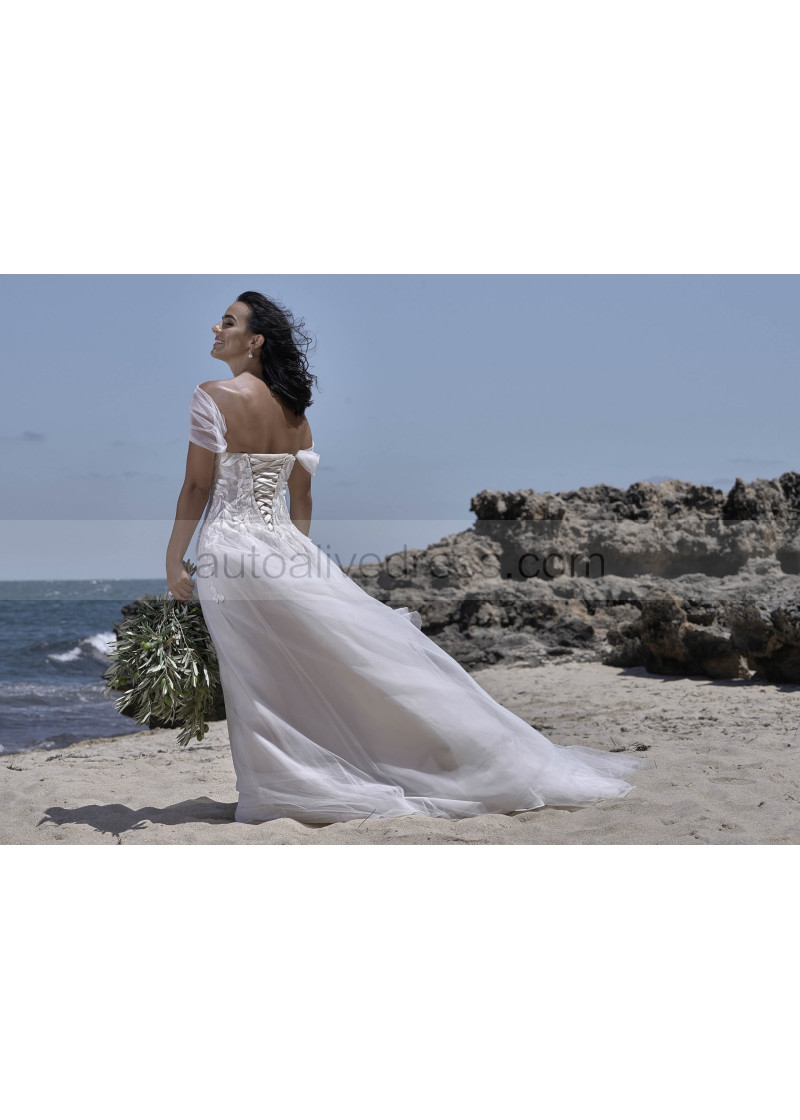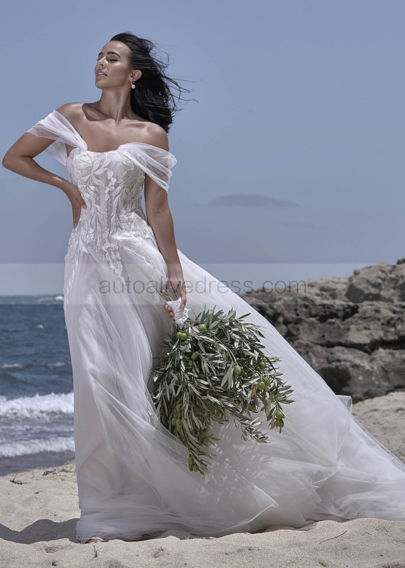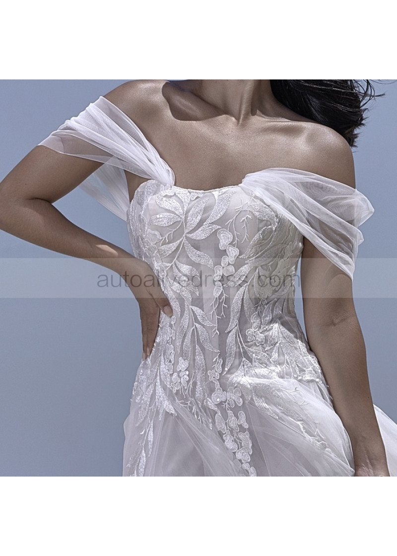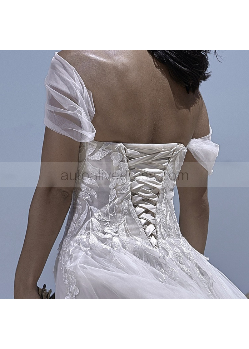 Off Shoulder Ivory Lace Tulle Stunning Wedding Dress