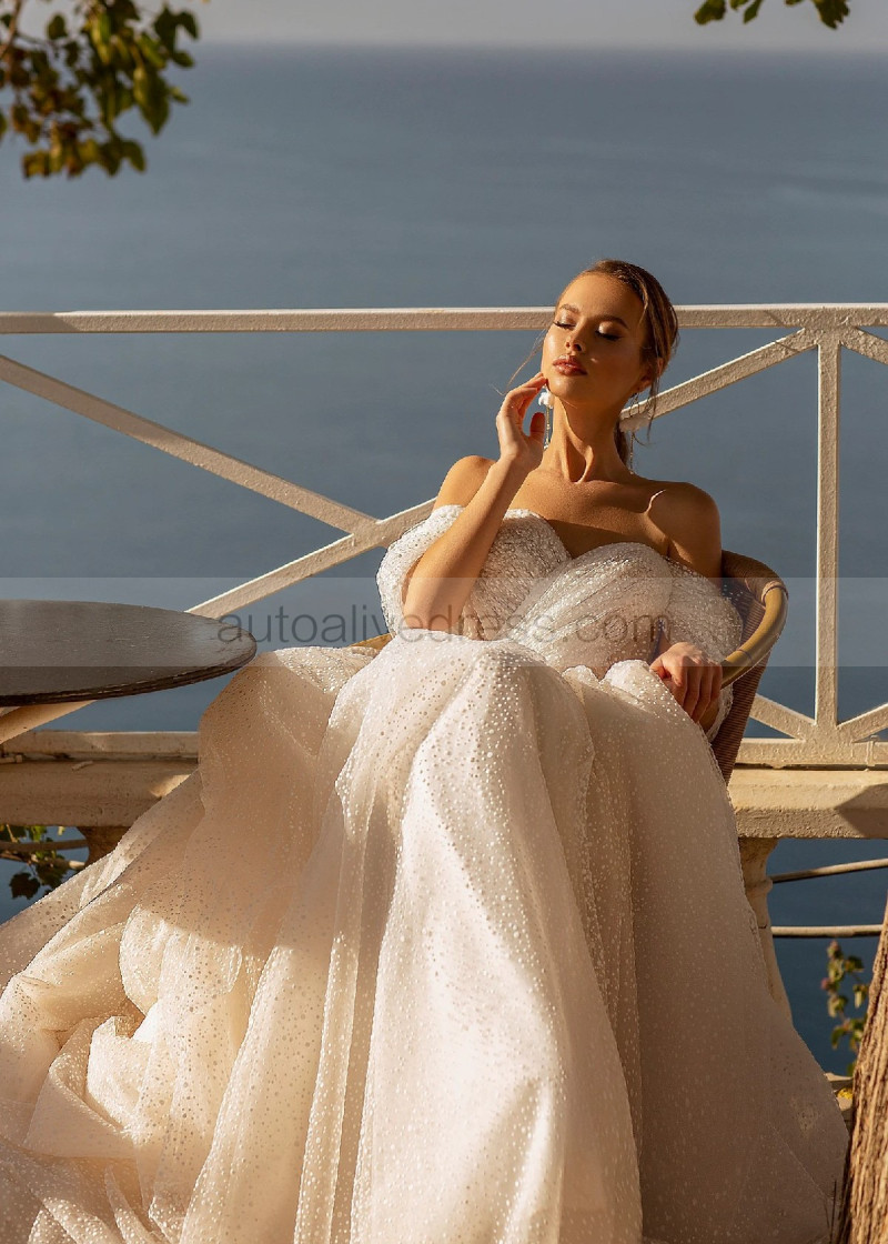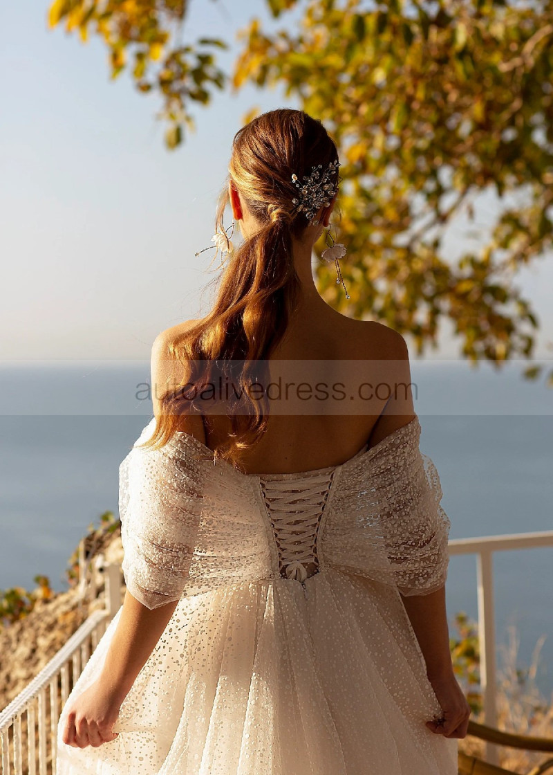 Off Shoulder Ivory Polka Dots Tulle Vintage Wedding Dress