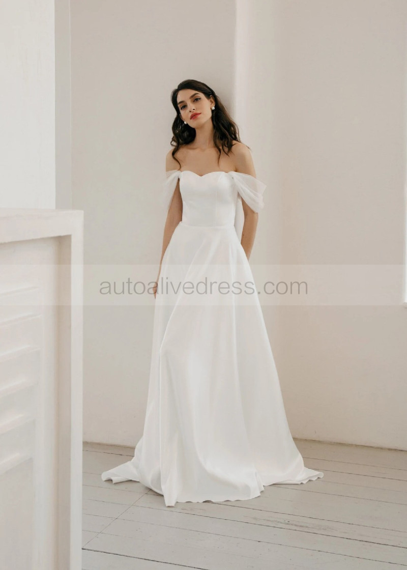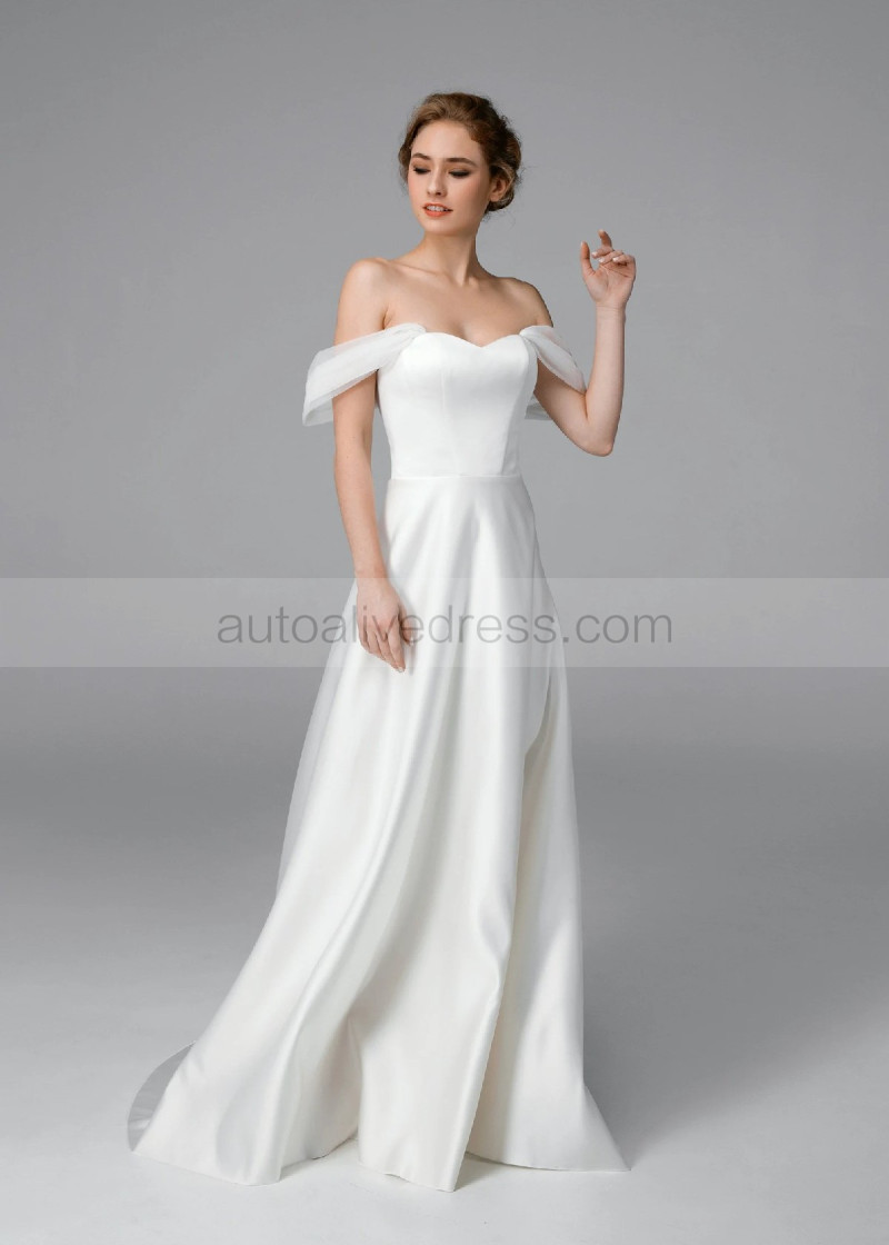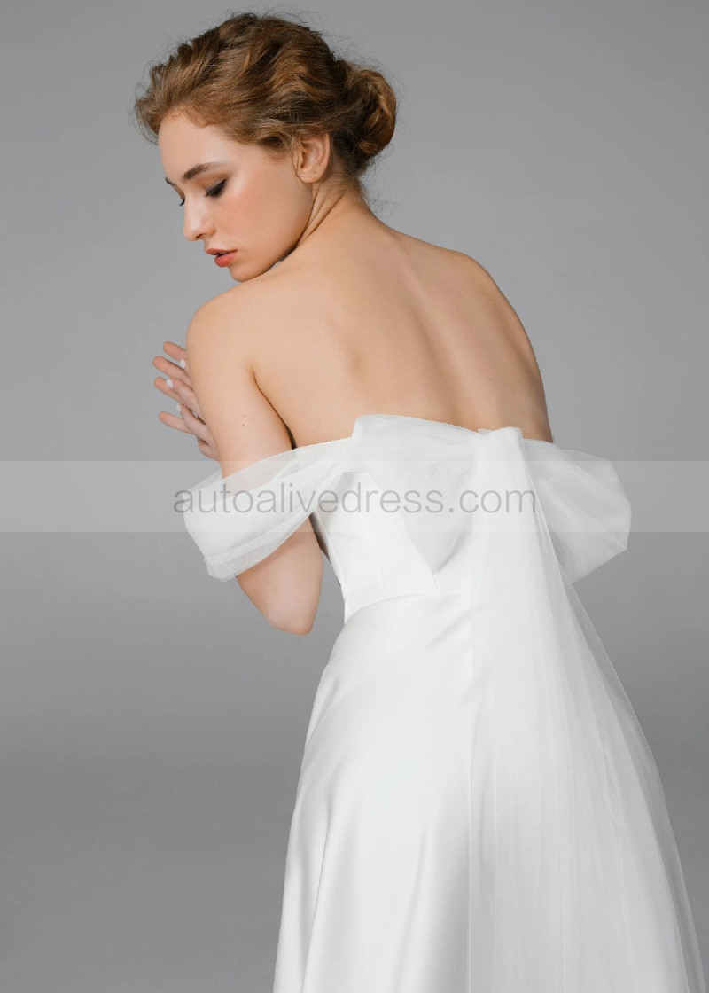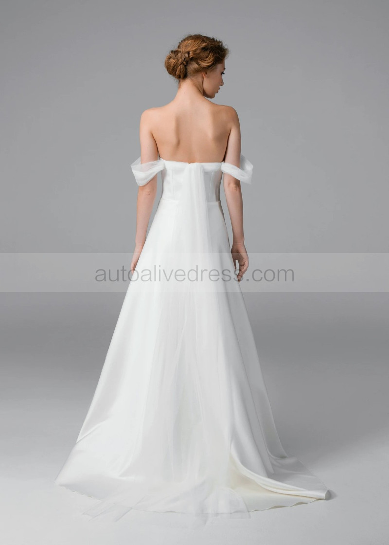 Off Shoulder Ivory Satin Tulle Chic Wedding Dress