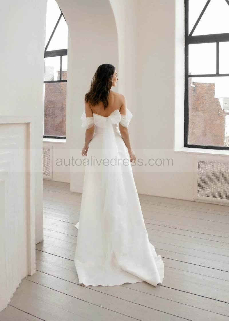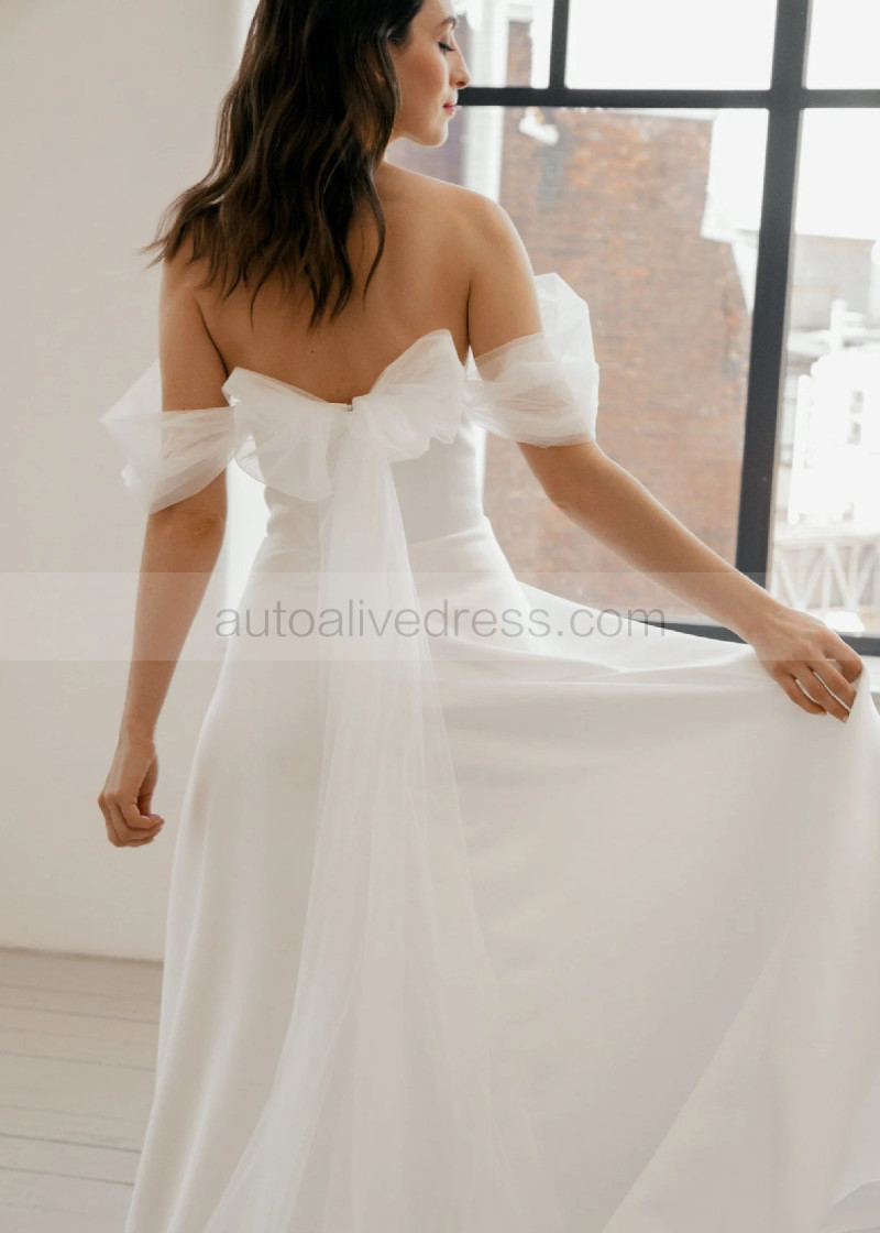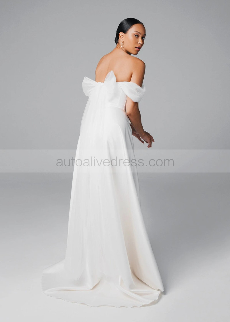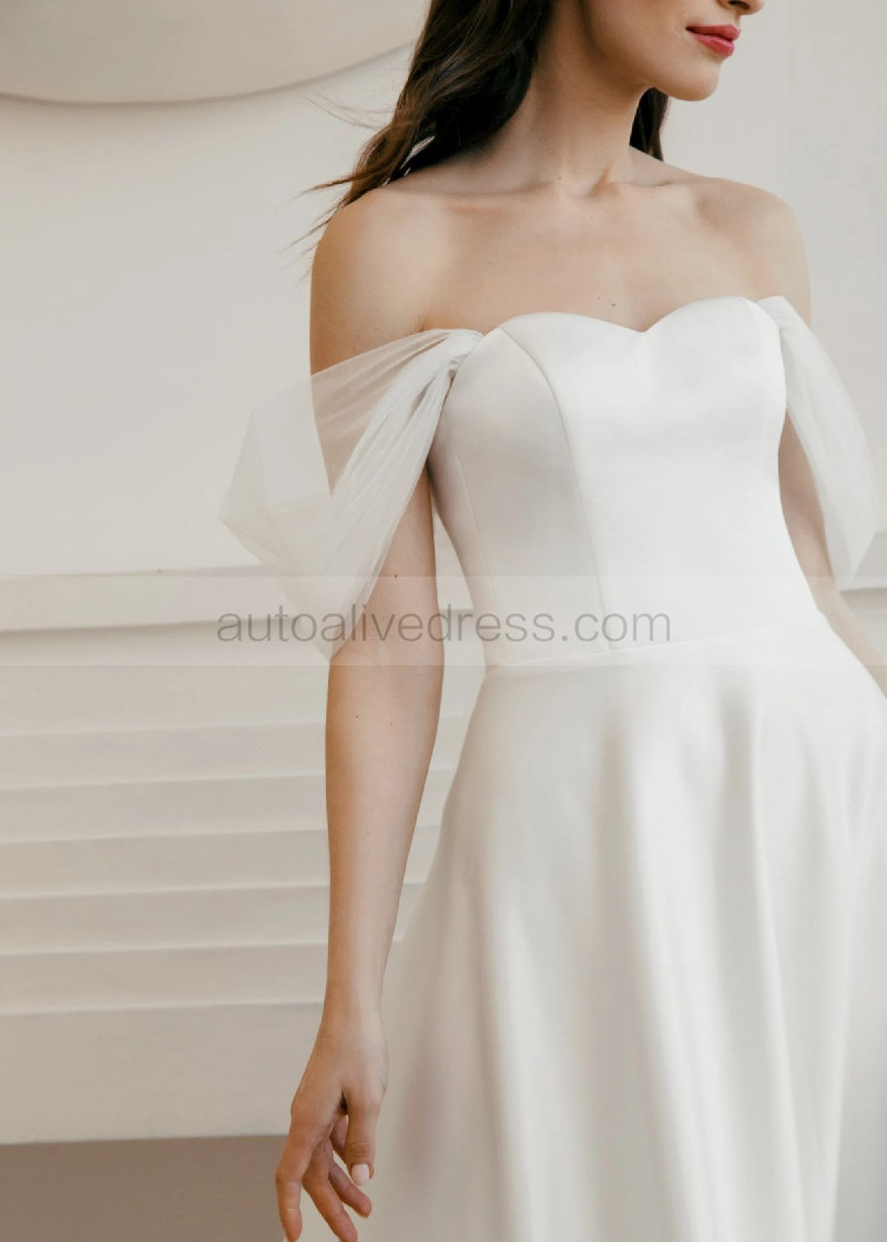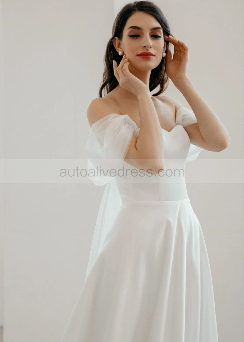 Off Shoulder Ivory Satin Tulle Chic Wedding Dress