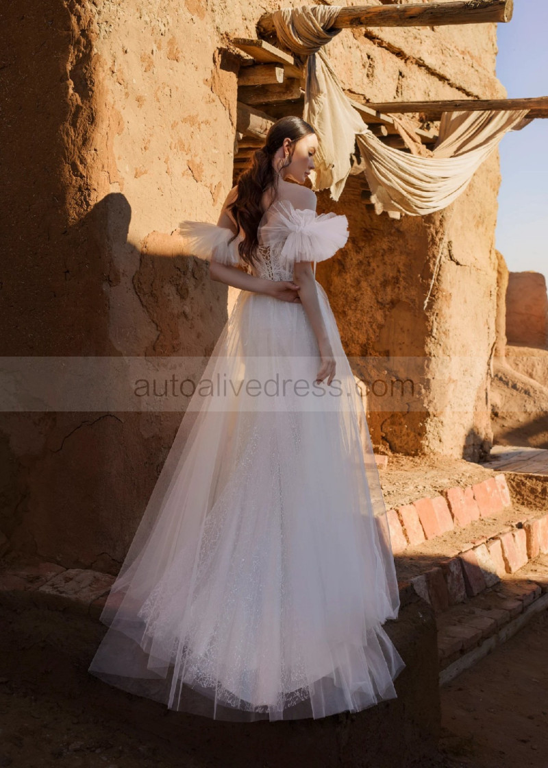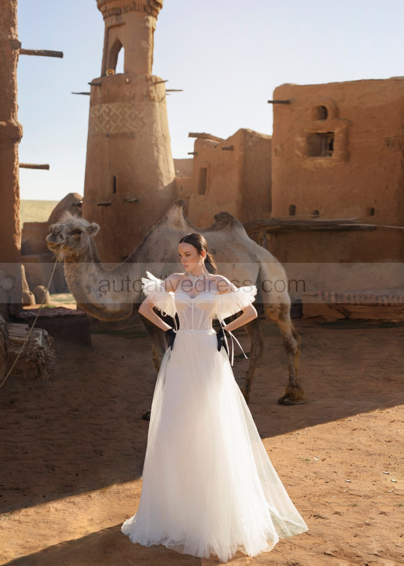 Off Shoulder Sexy Sweetheart Neck Ivory Lace Tulle Wedding Dress