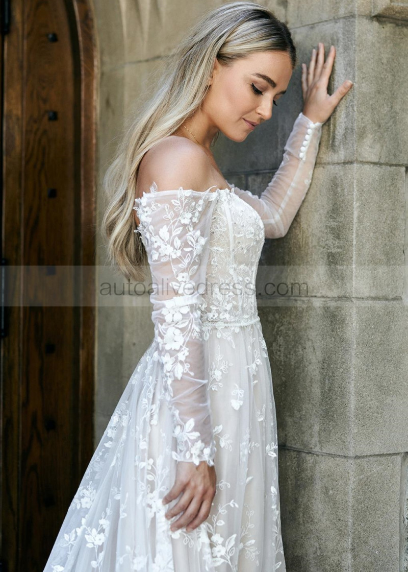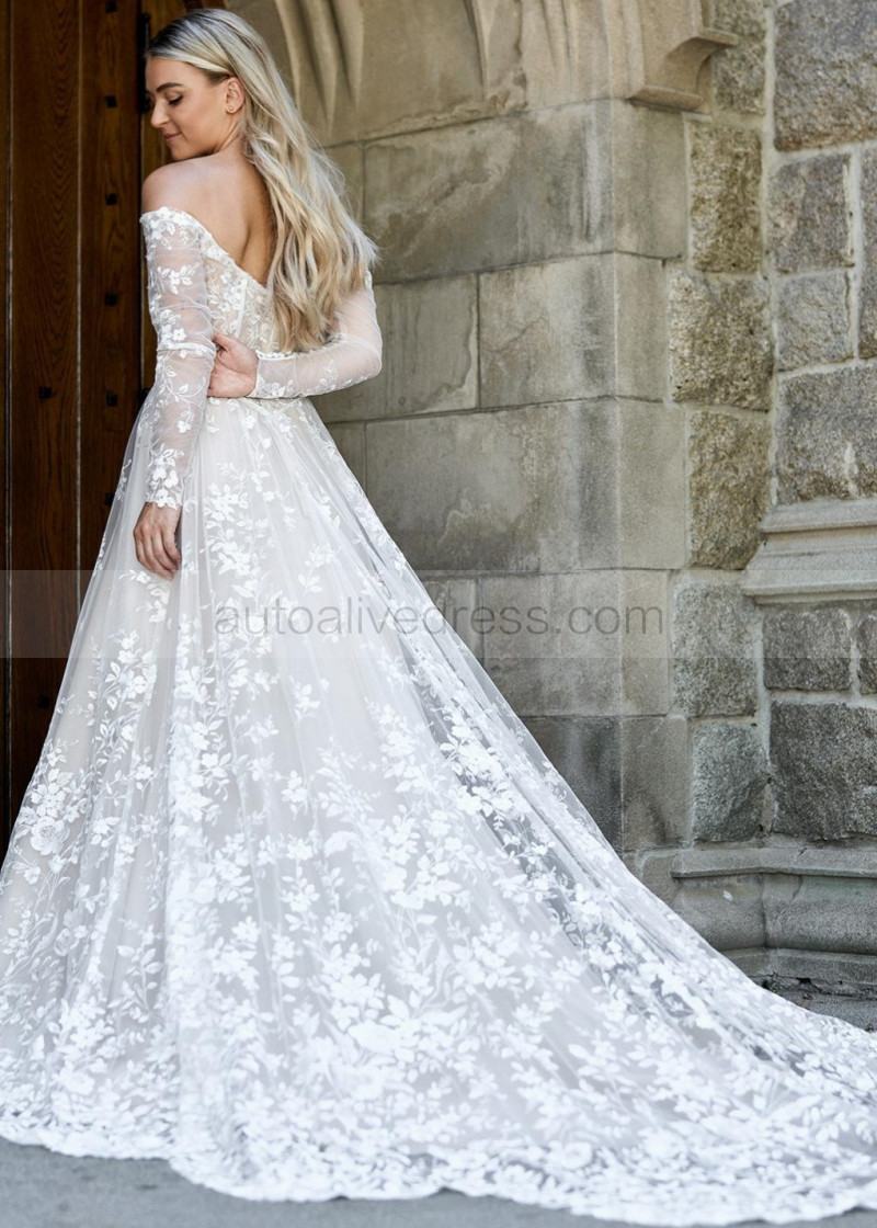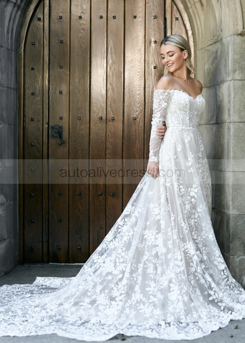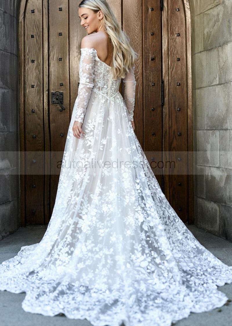 Off Shoulder White Lace Tulle Fairytale Wedding Dress