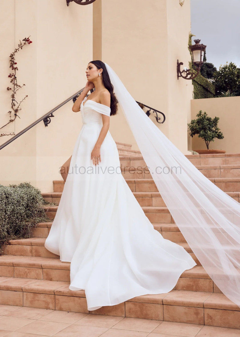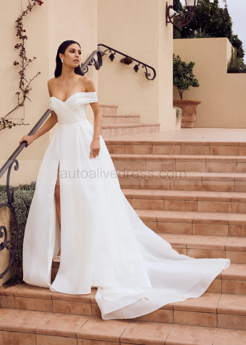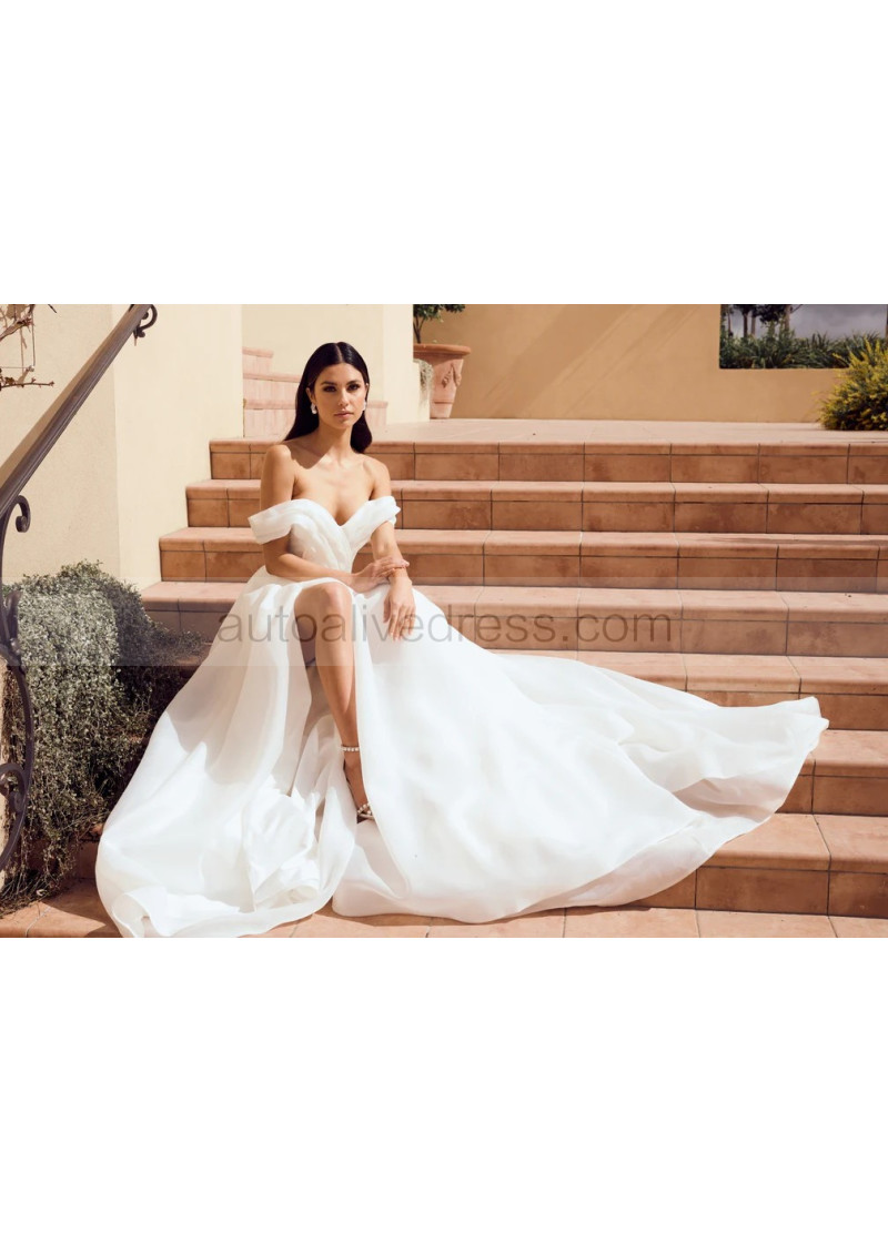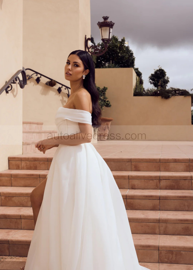Off Shoulder White Organza High Split Classic Wedding Dress