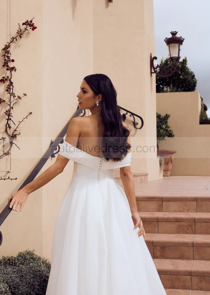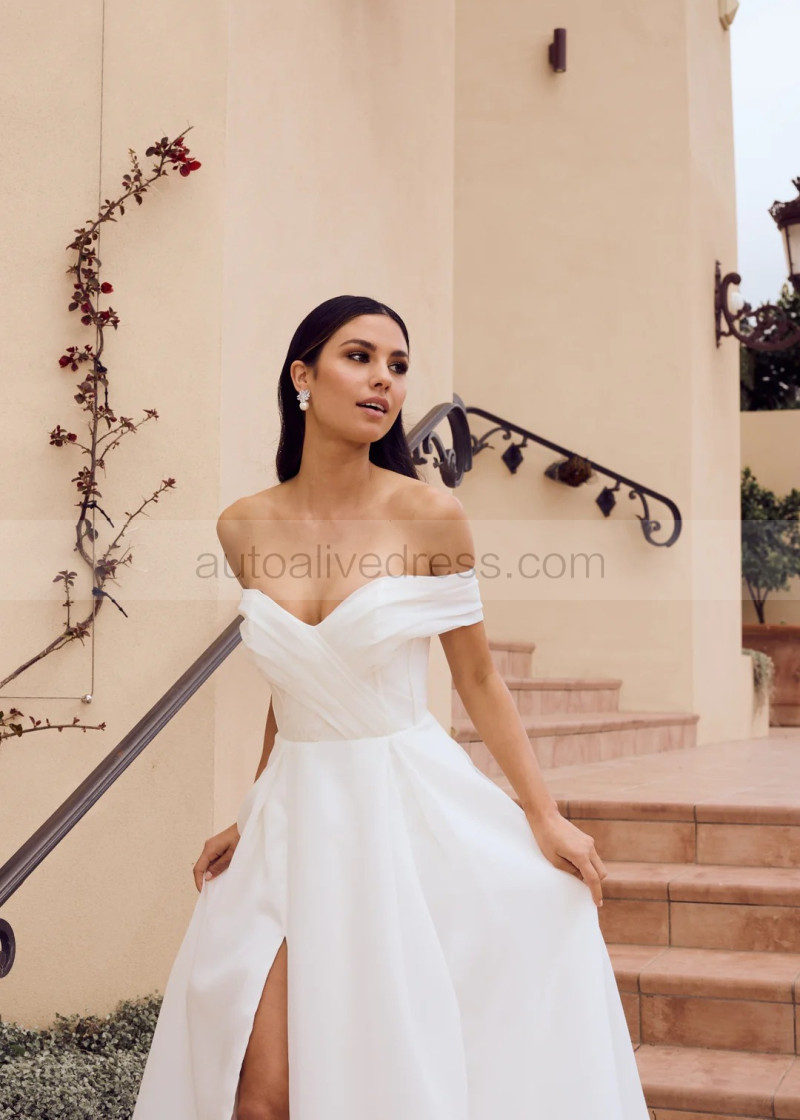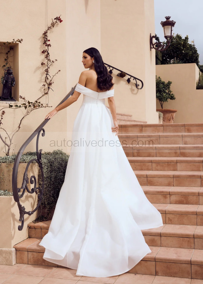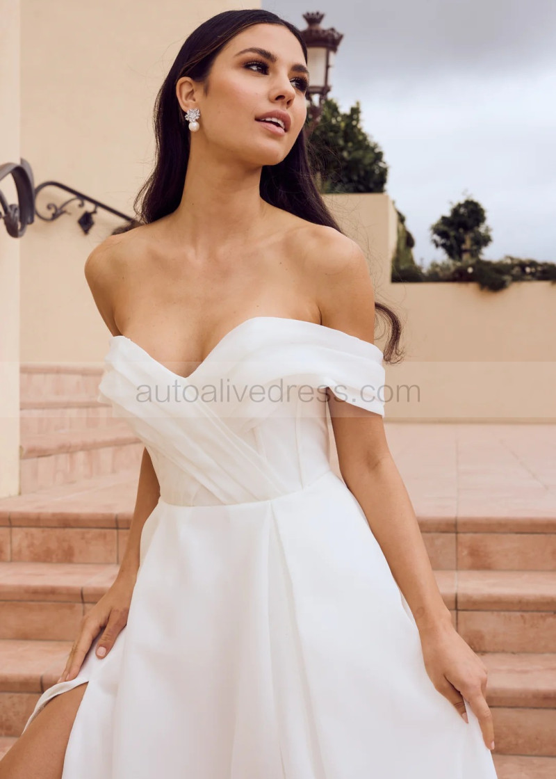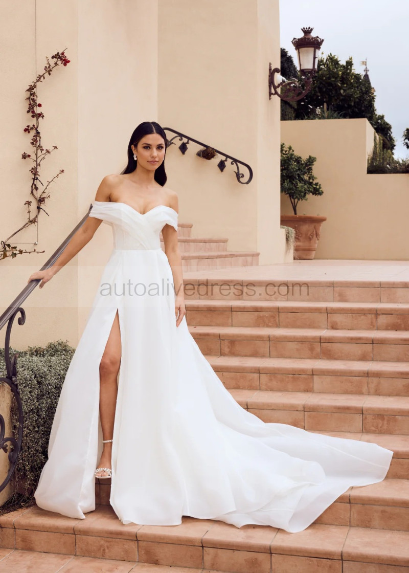 Off Shoulder White Organza High Split Classic Wedding Dress