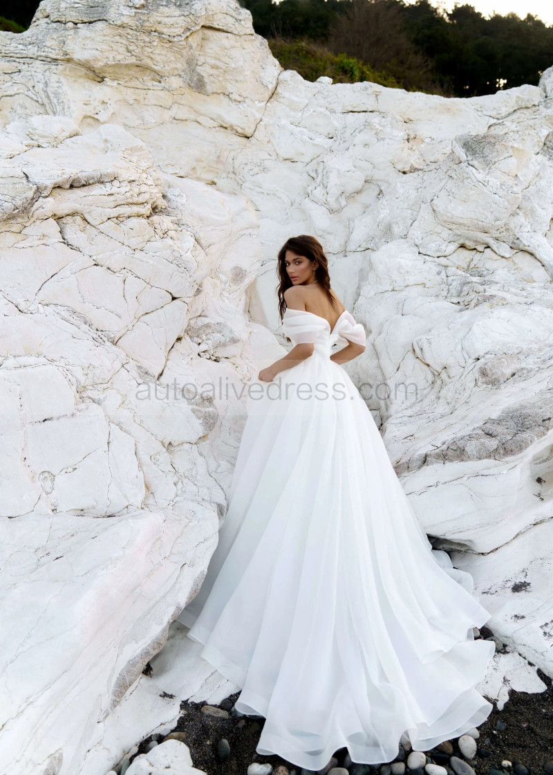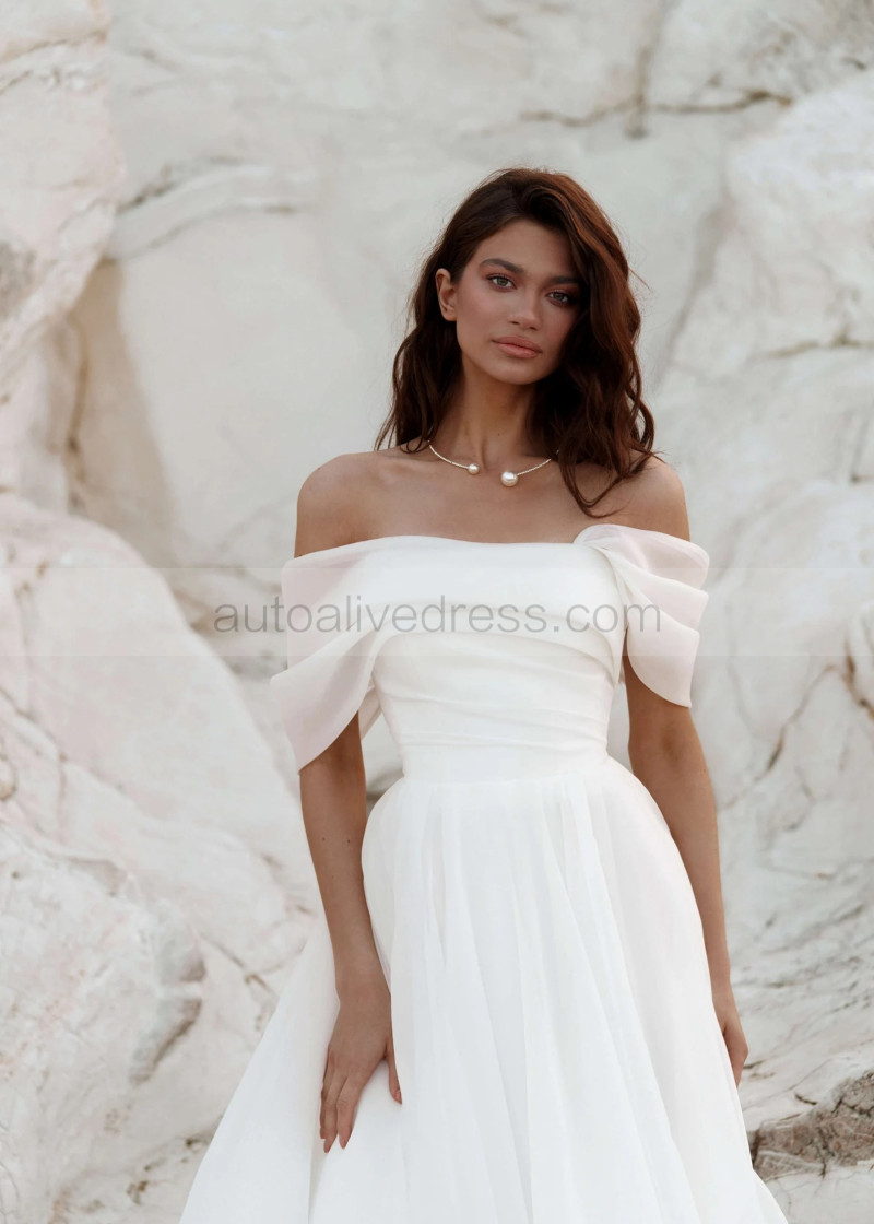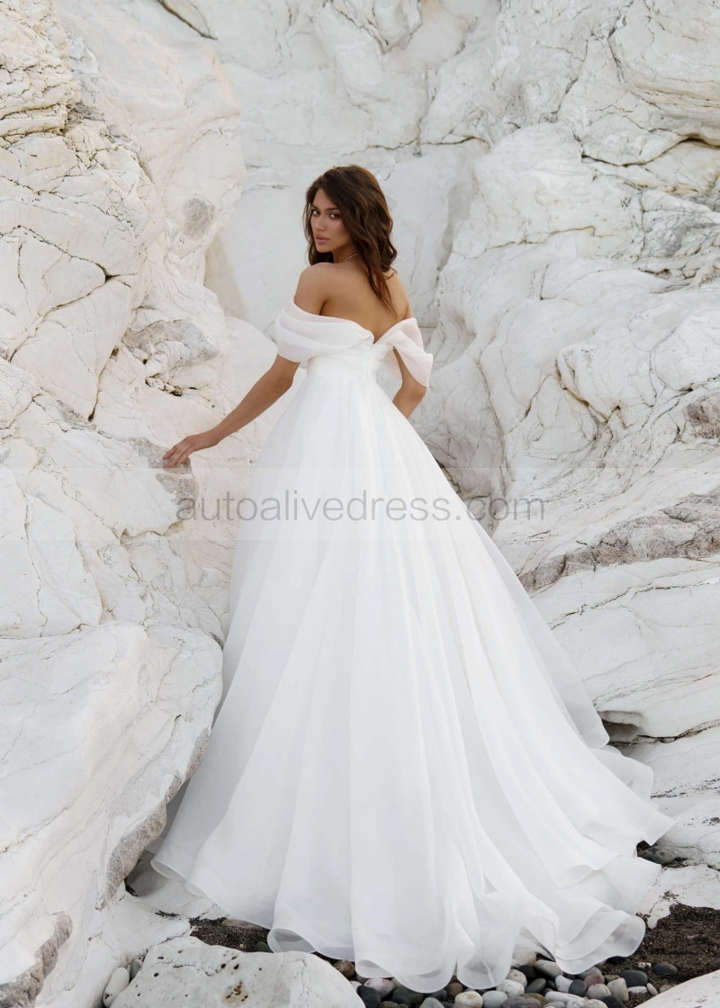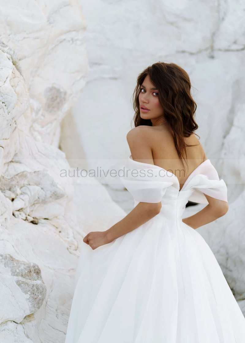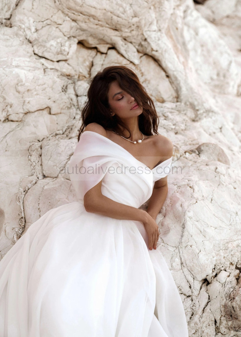Off Shoulder White Organza Pleated Stunning Wedding Dress
