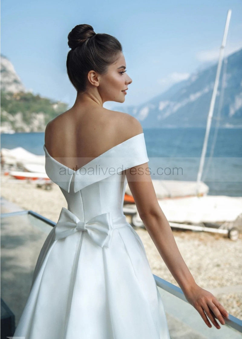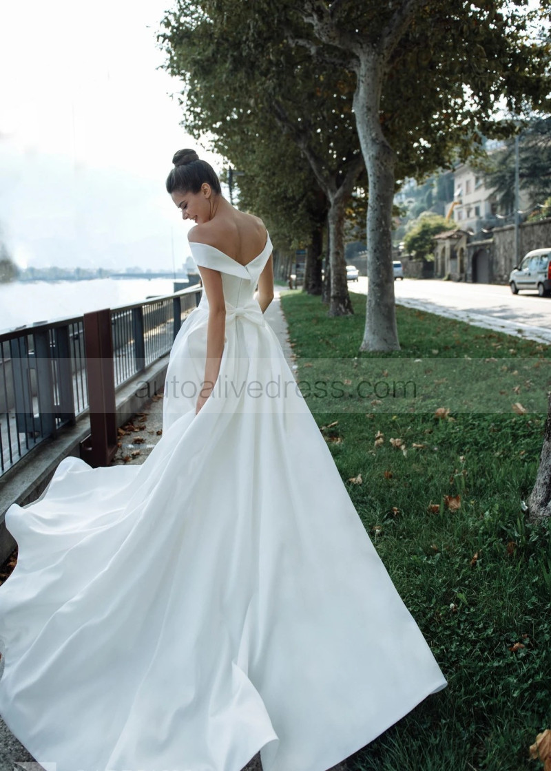 Off Shoulder White Satin Glamorous Wedding Dress