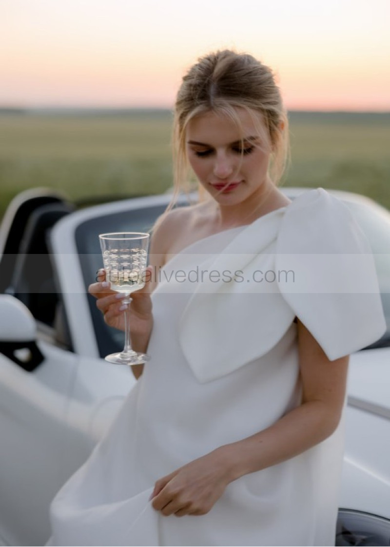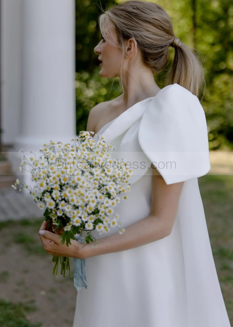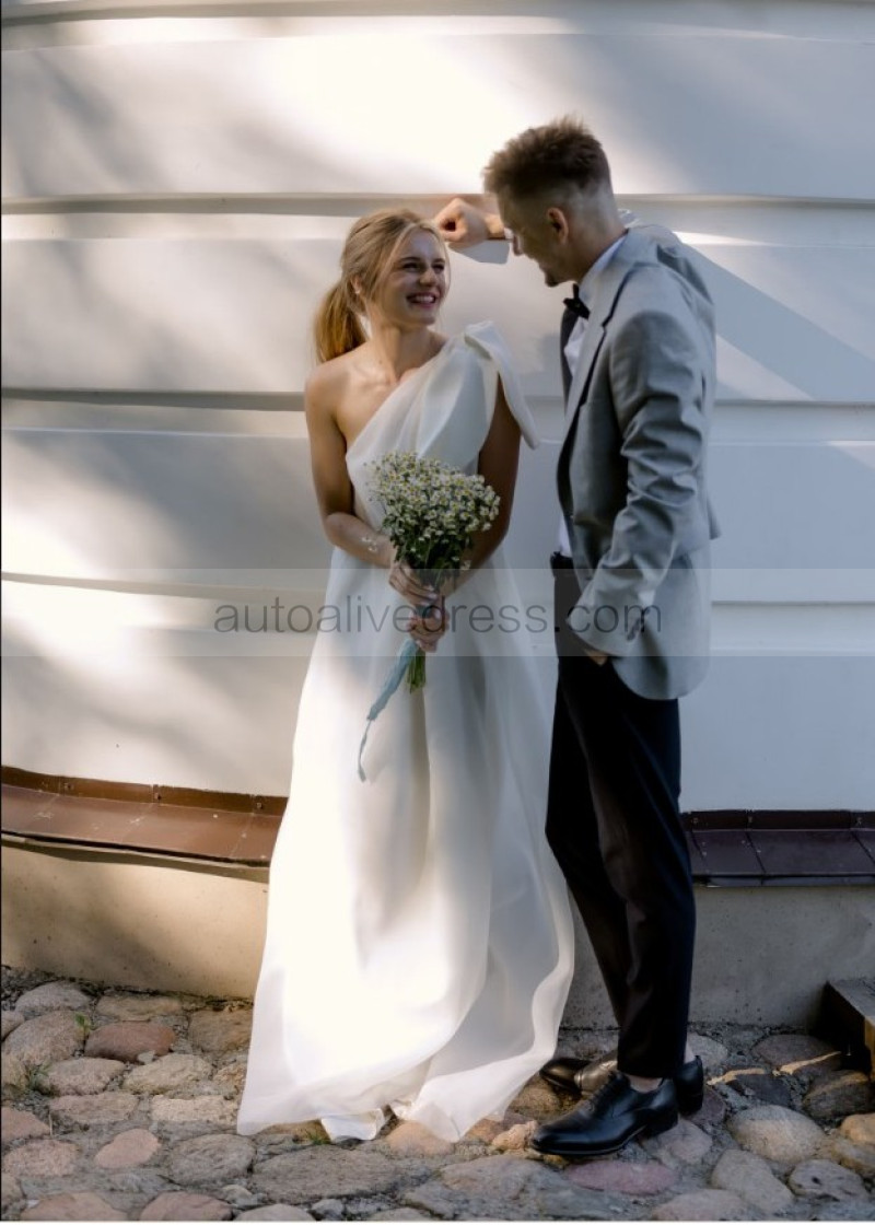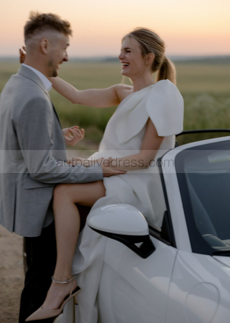 One Shoulder Ivory Organza Romantic Wedding Dress