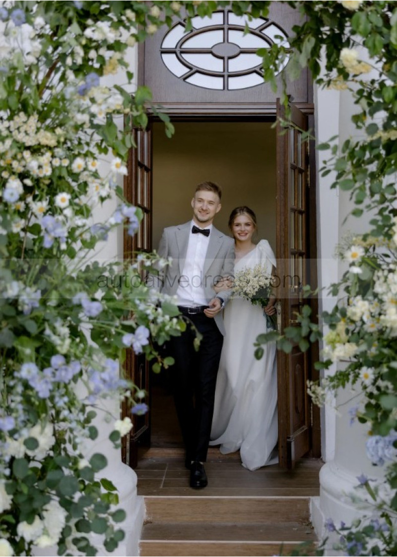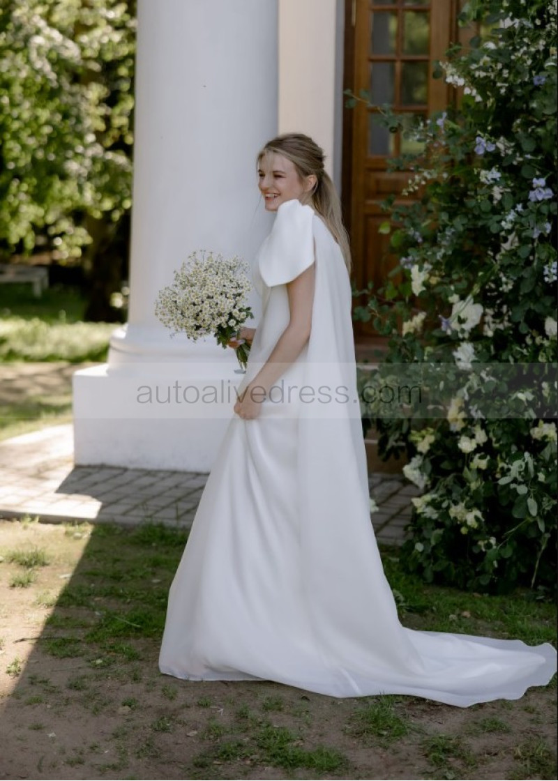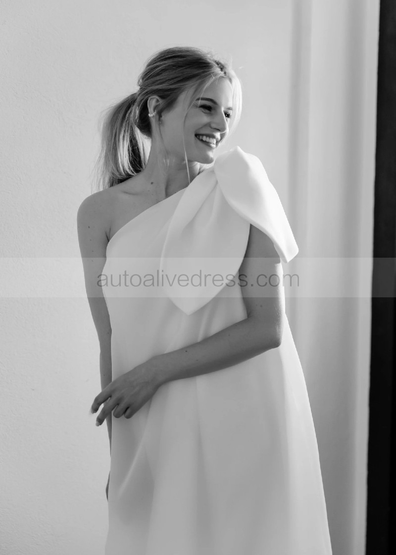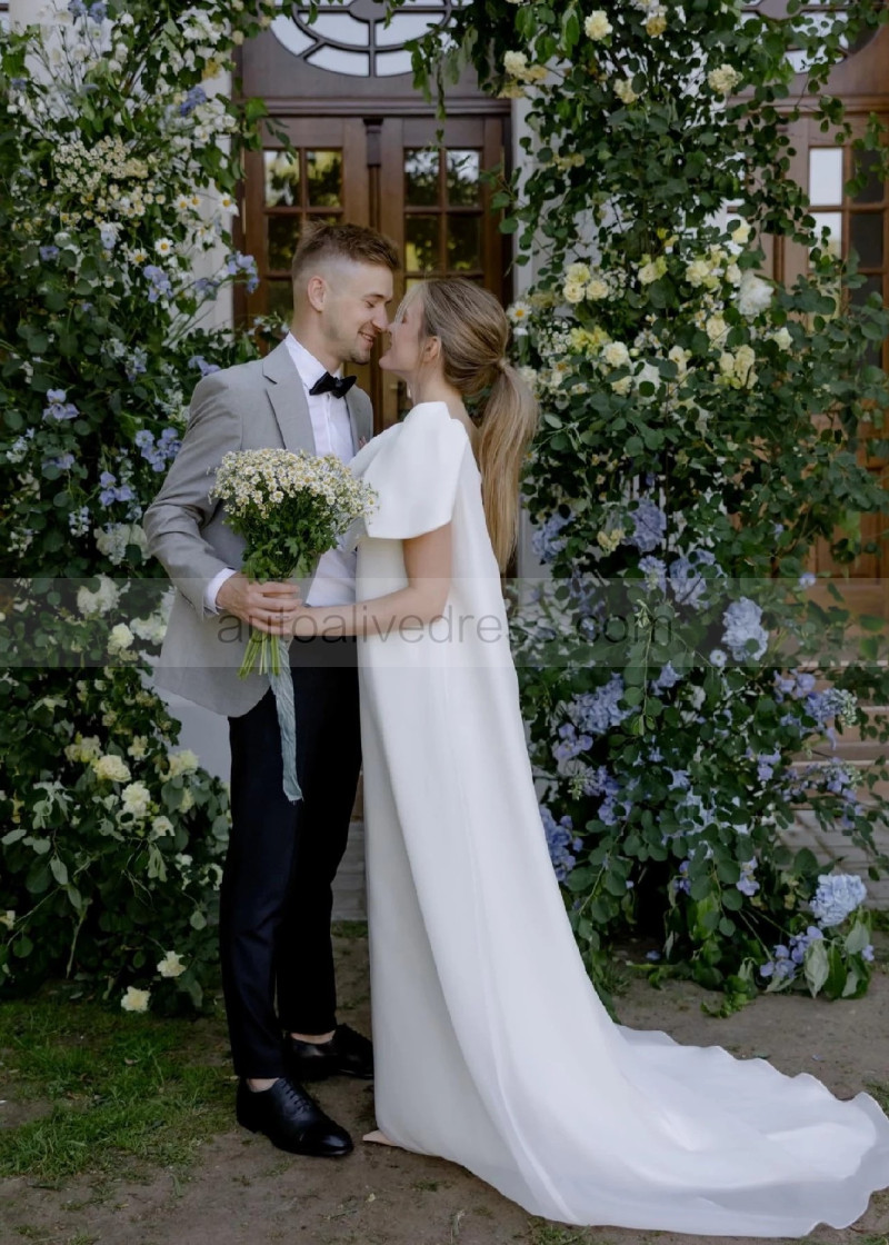 One Shoulder Ivory Organza Romantic Wedding Dress