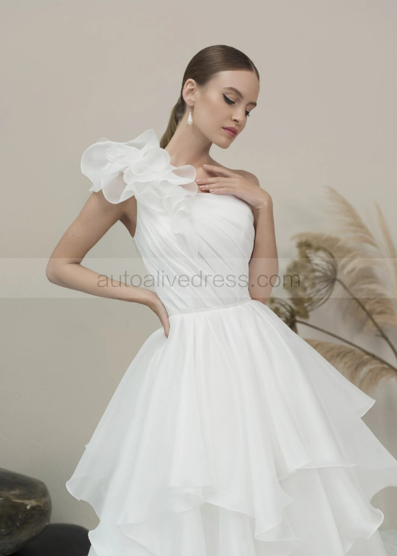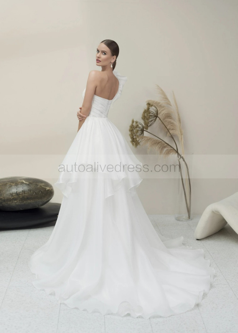 One Shoulder Ivory Pleated Organza Exquisite Wedding Dress