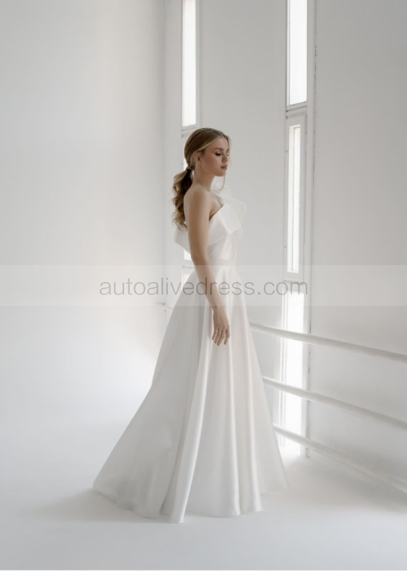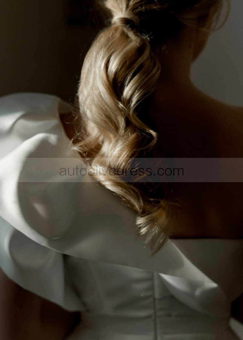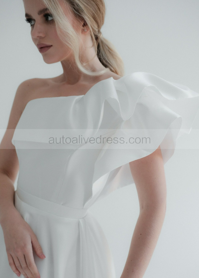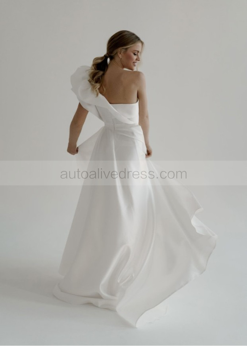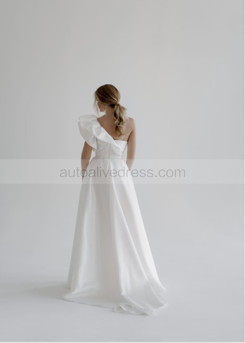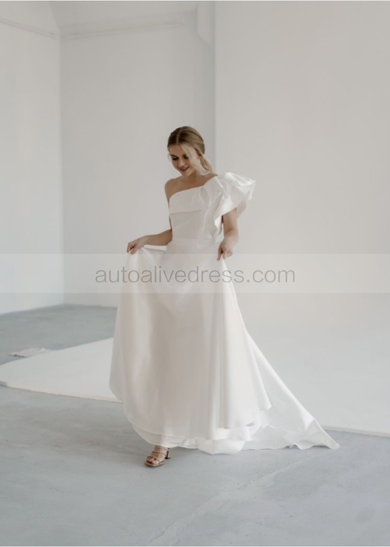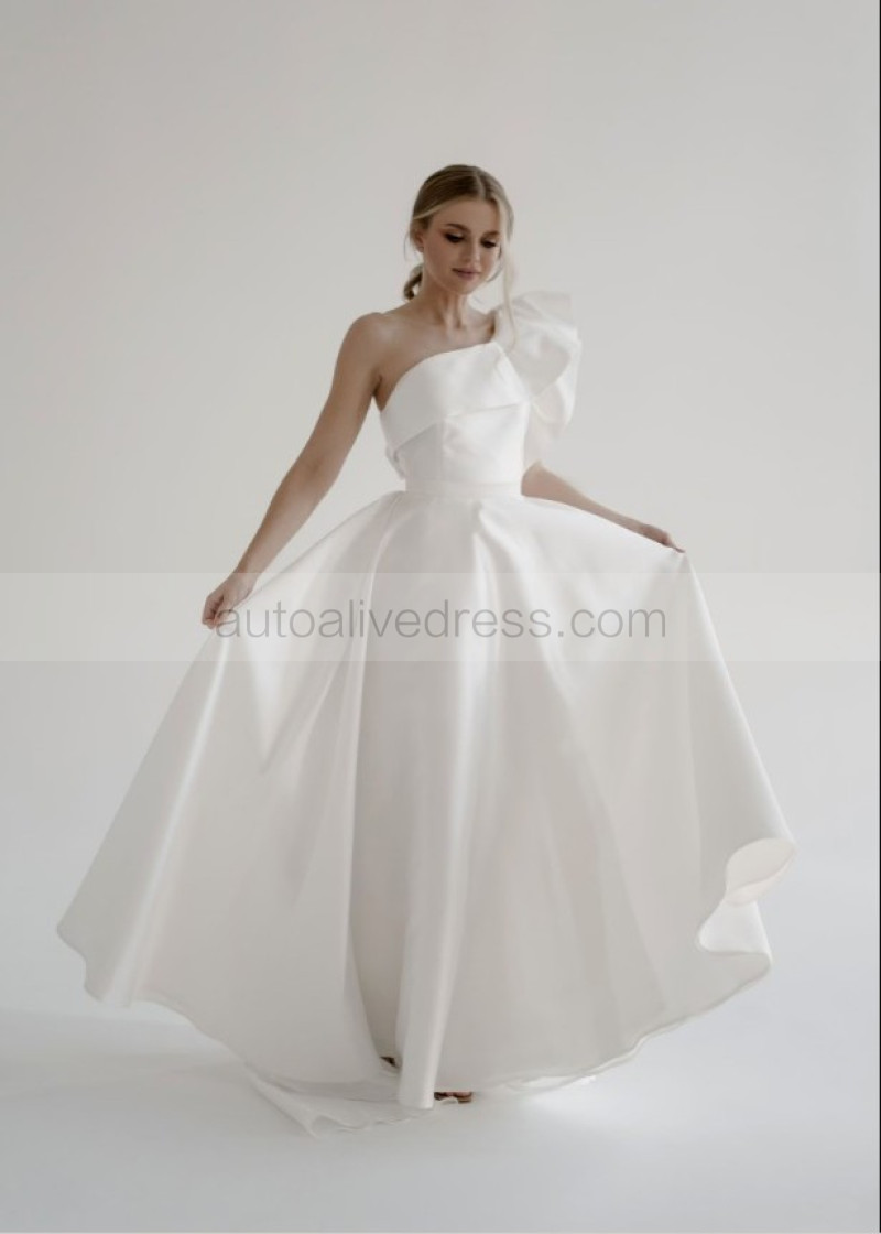 One Shoulder Ivory Satin Fashionable Wedding Dress