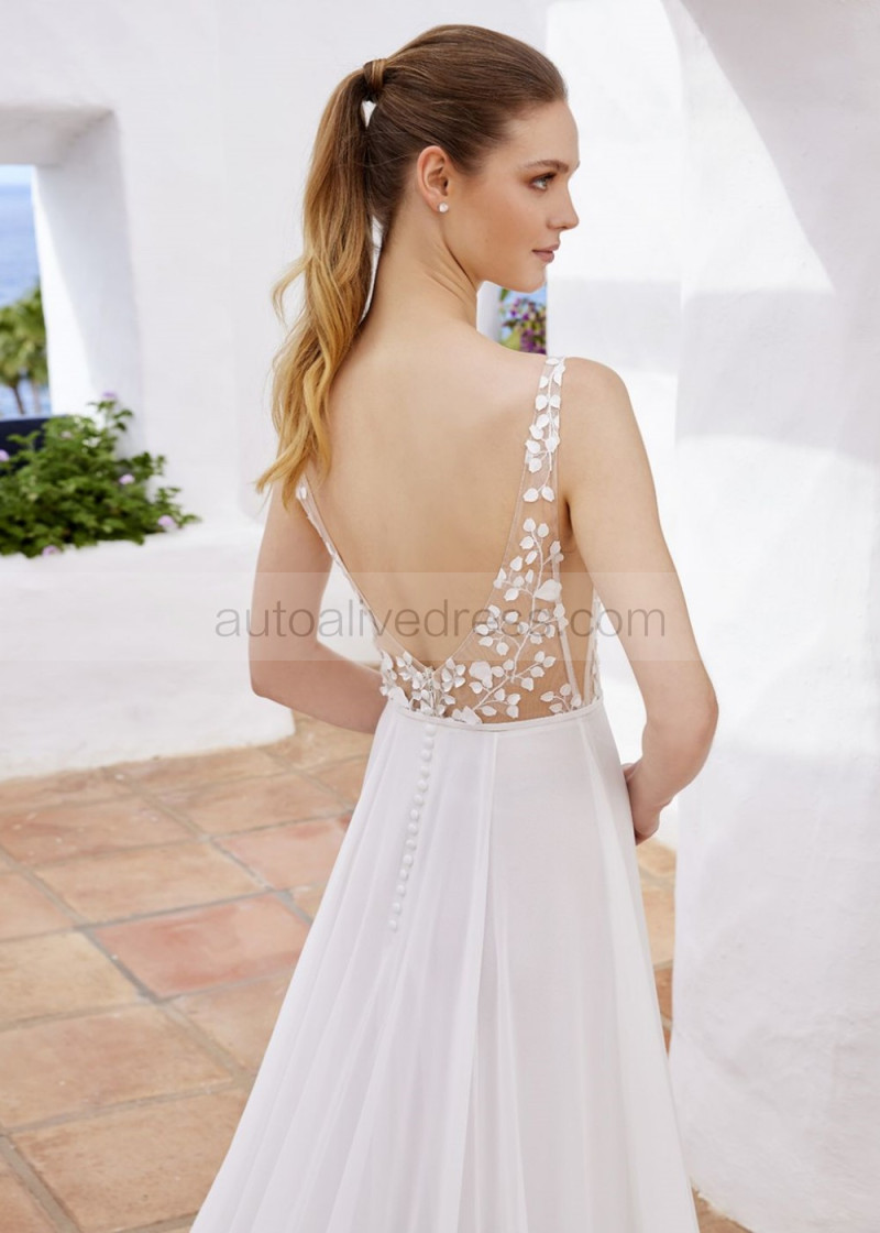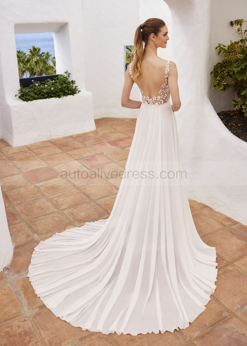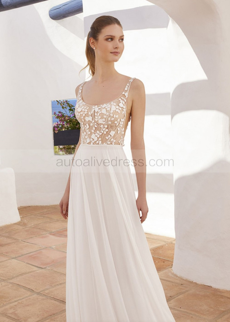 Scoop Neck Ivory Lace Chiffon Flowing Summer Wedding Dress