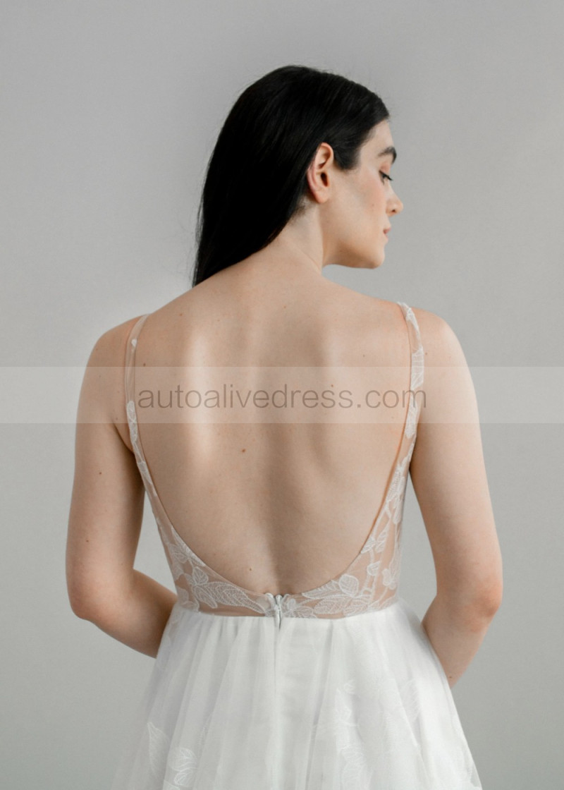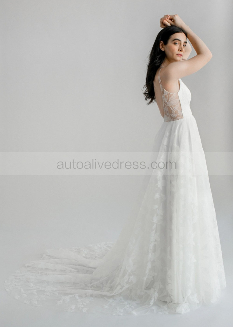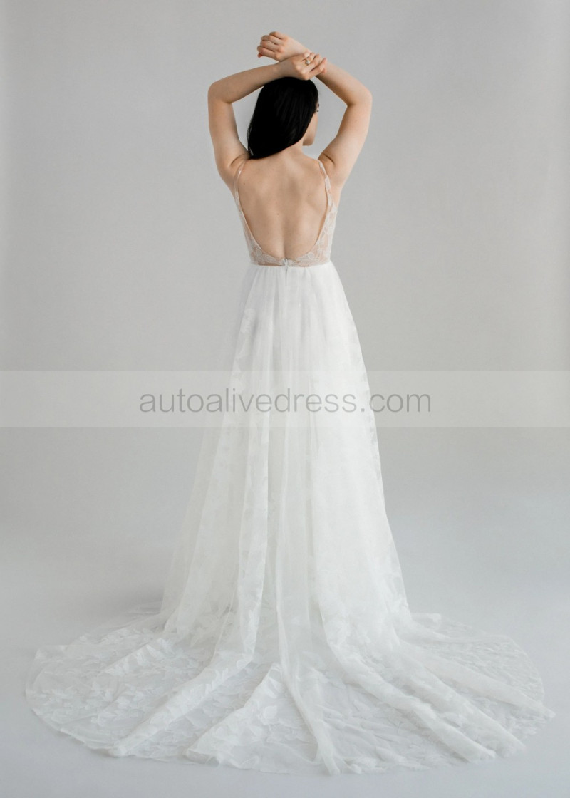 Scoop Neck Ivory Lace Lightweight Wedding Dress