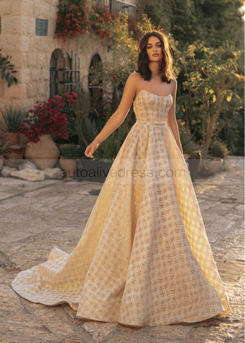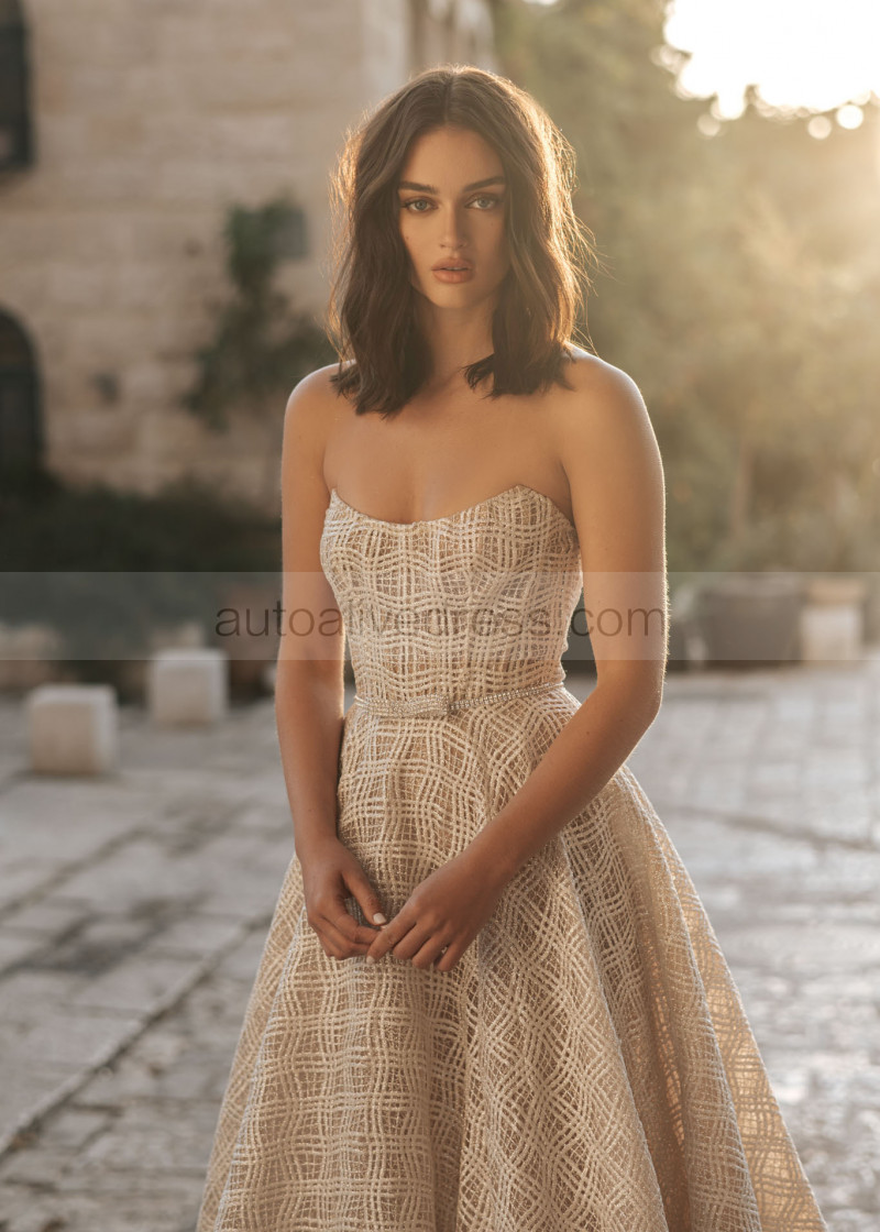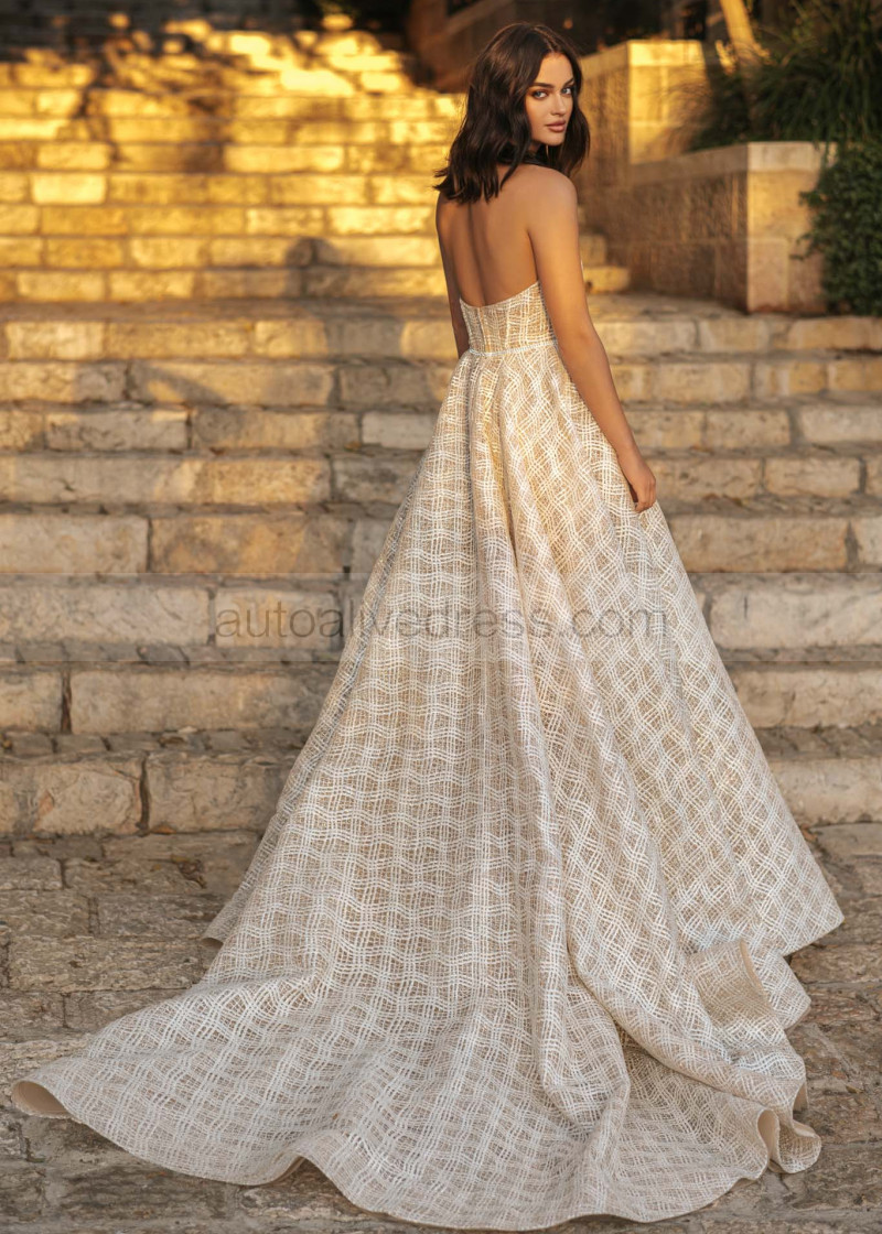 Scoop Neck Lace Open Back Unique Wedding Dress