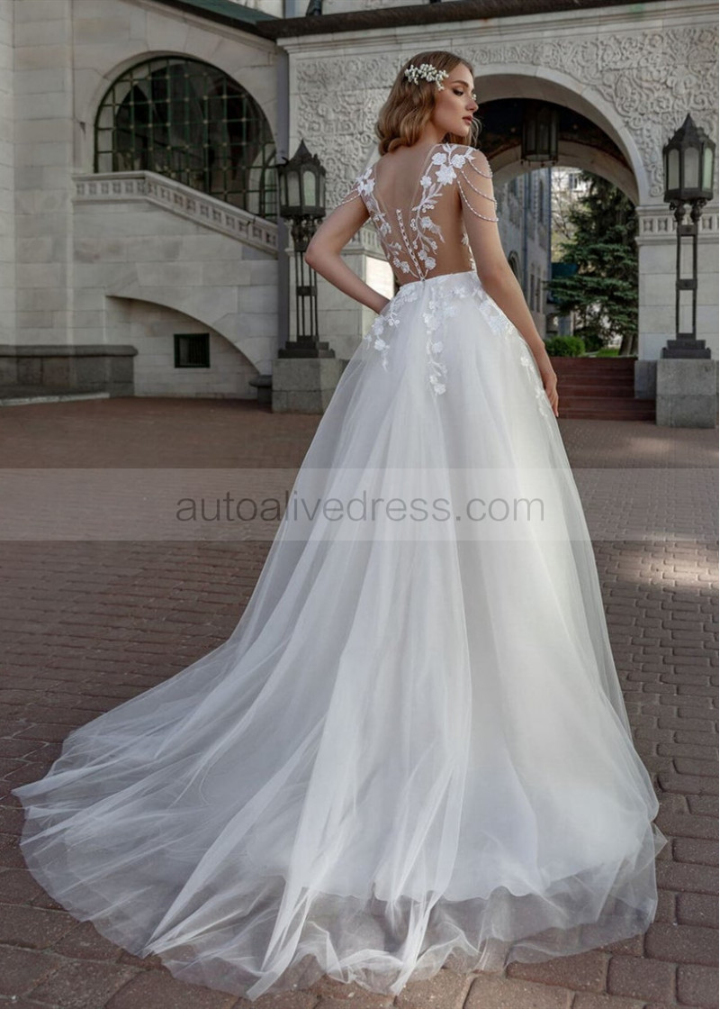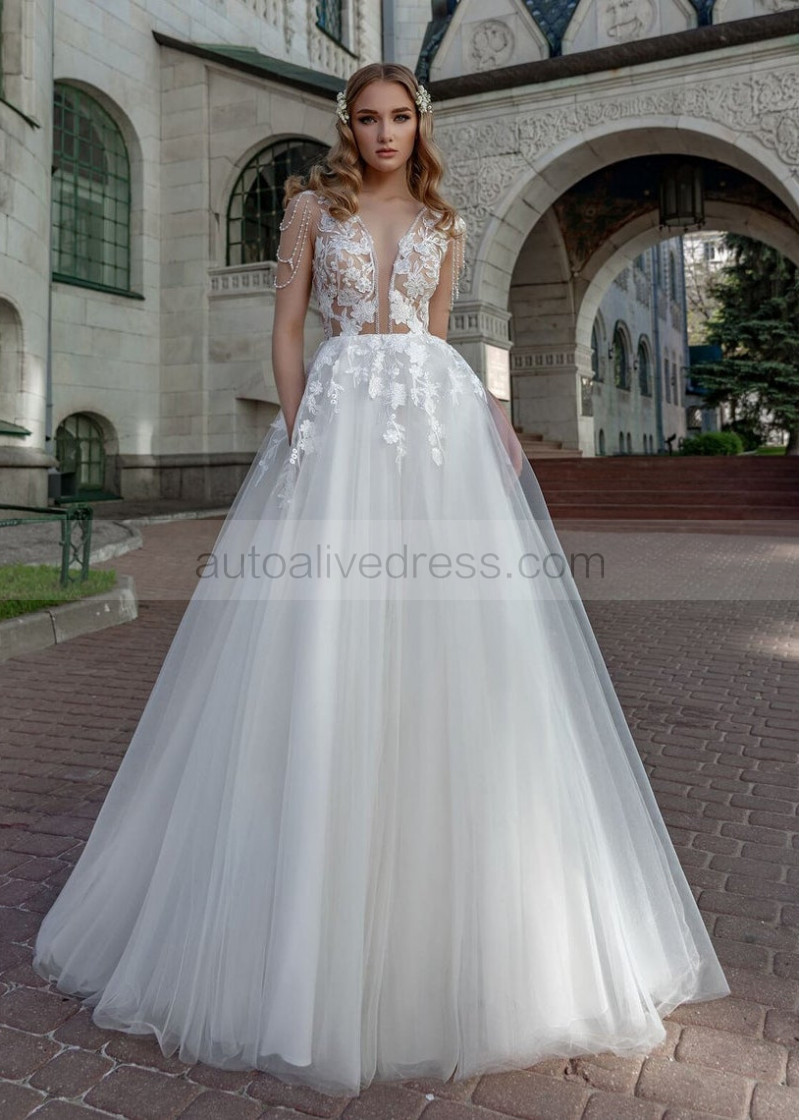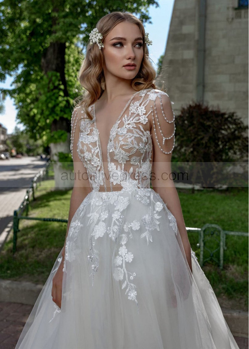 Sexy Beaded Ivory Lace Tulle Wedding Dress