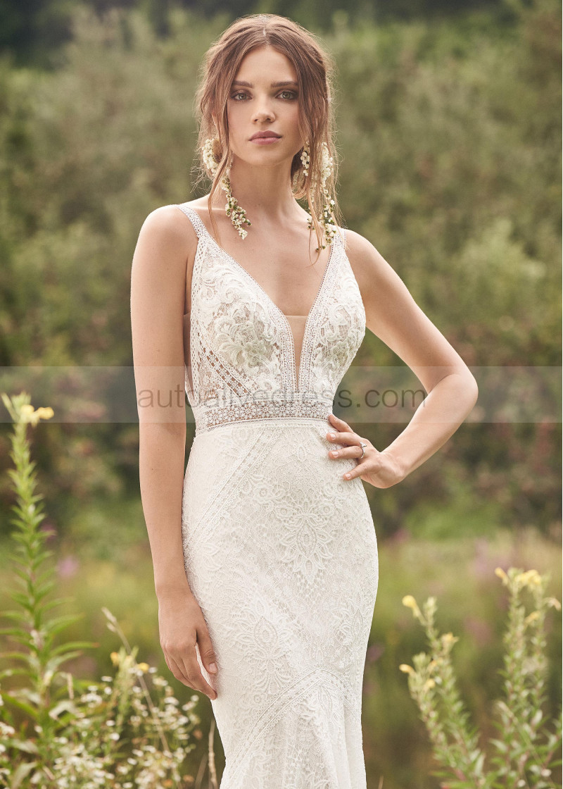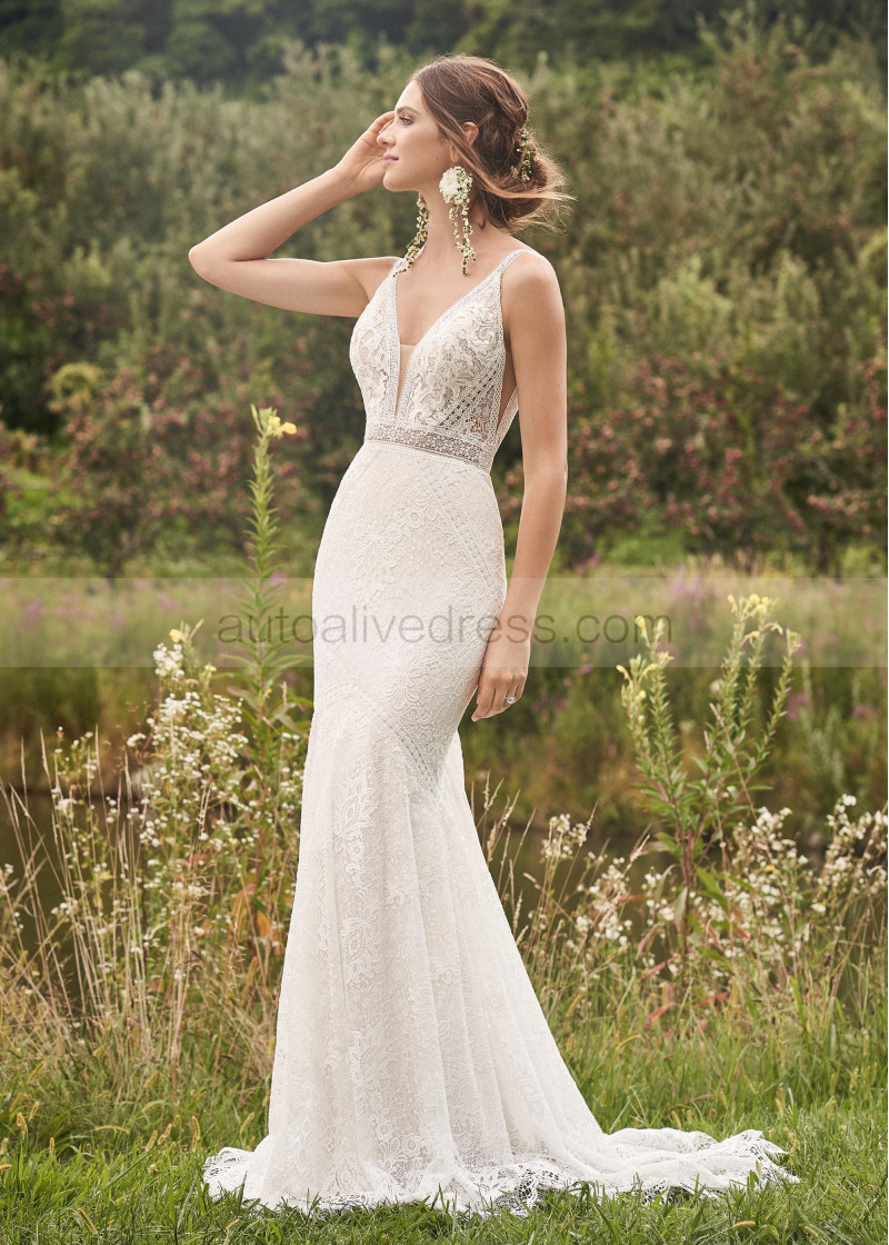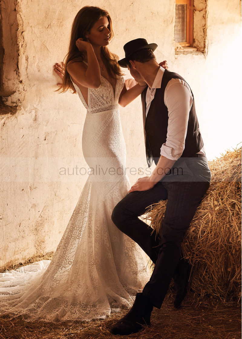 Sexy Ivory Lace V Back Bohemian Wedding Dress