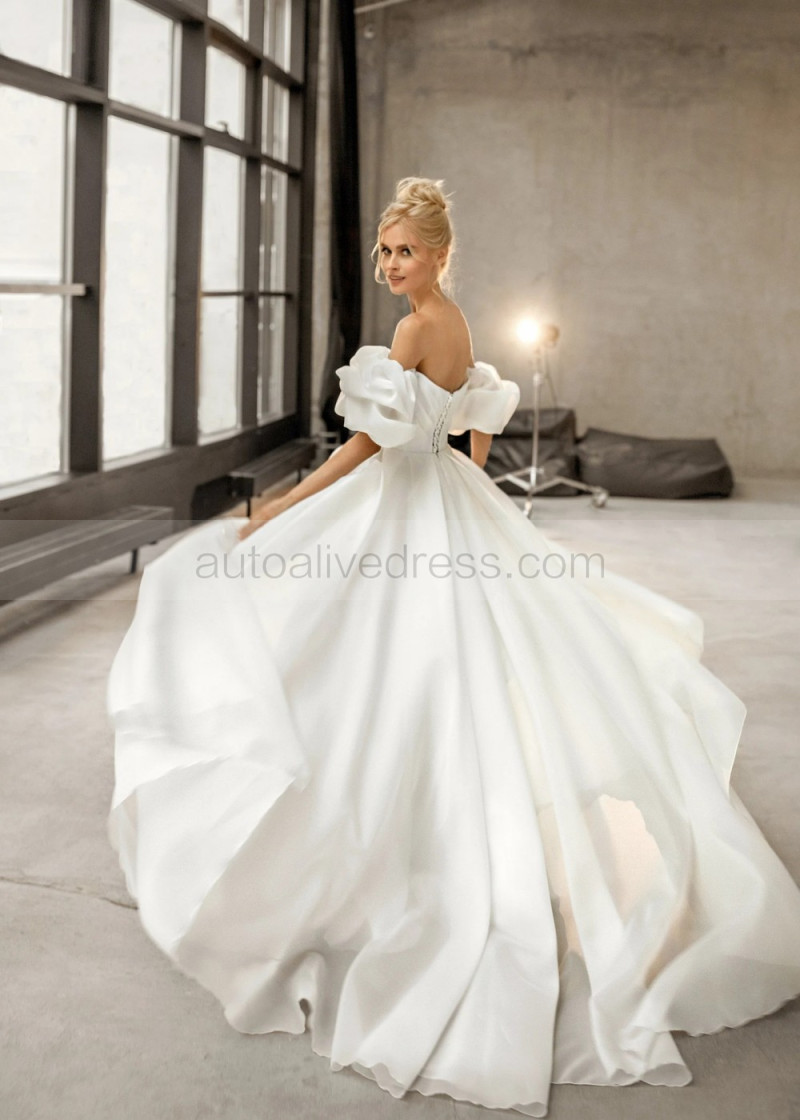 Sexy Ivory Organza Slit Wedding Dress With Detachable Sleeves