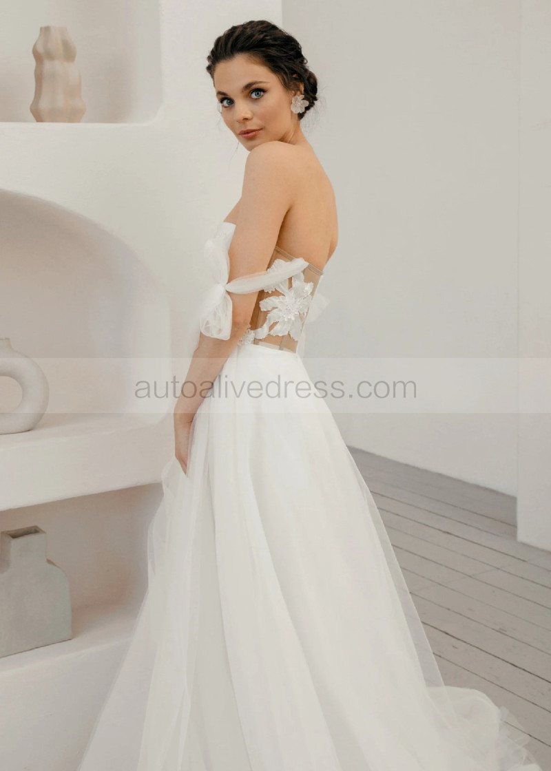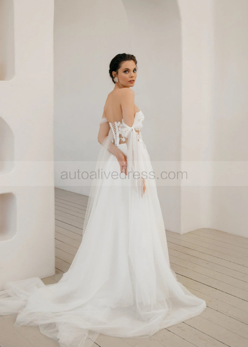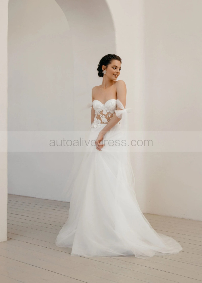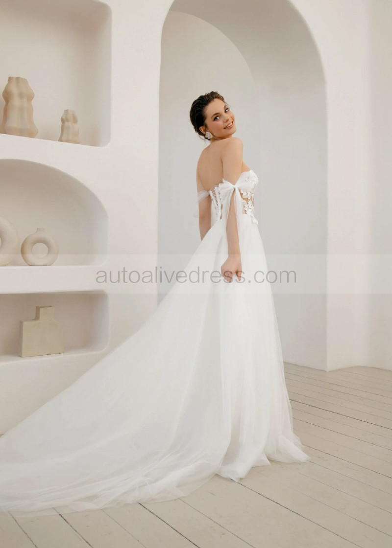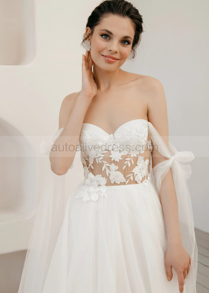 Sexy Off Shoulder Ivory Lace Tulle Wedding Dress