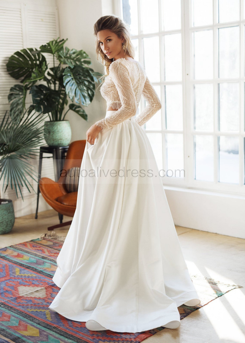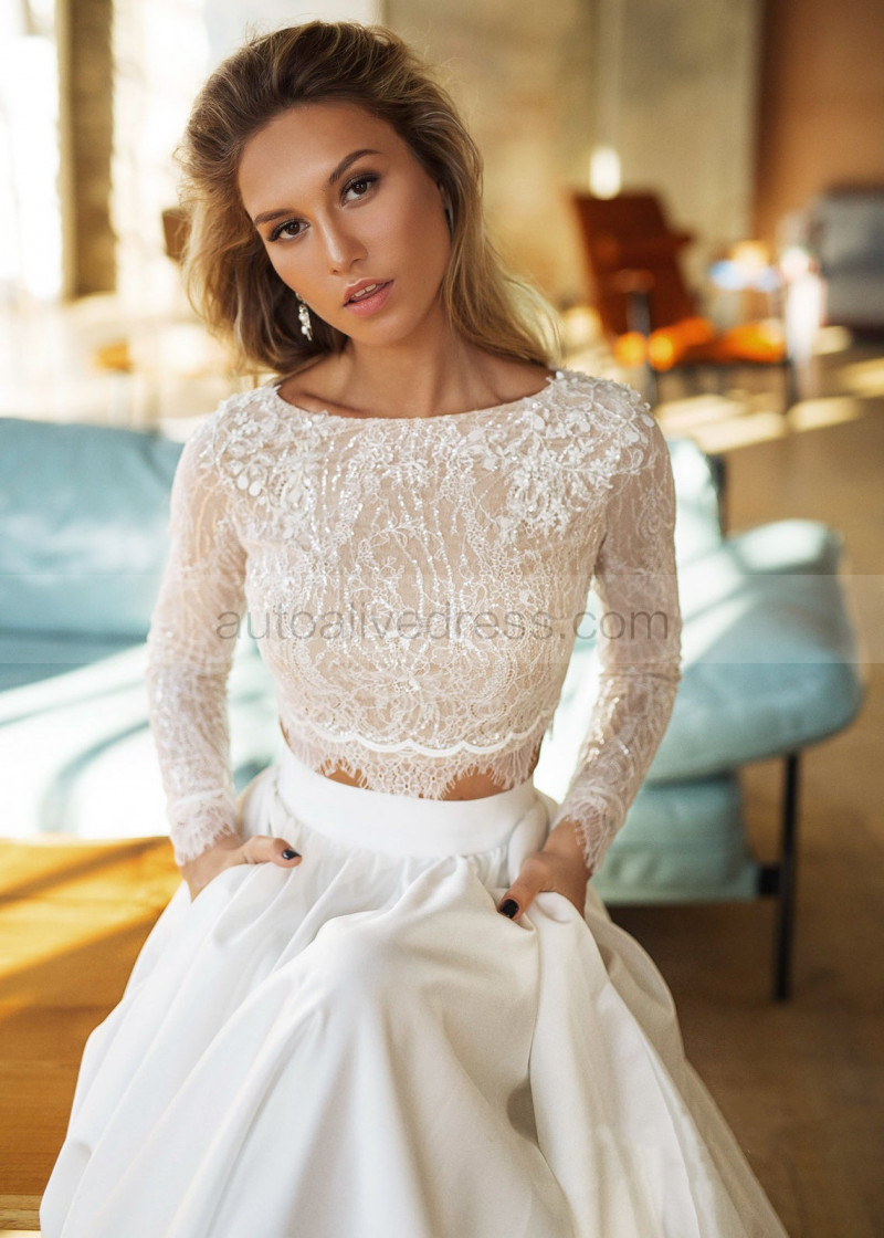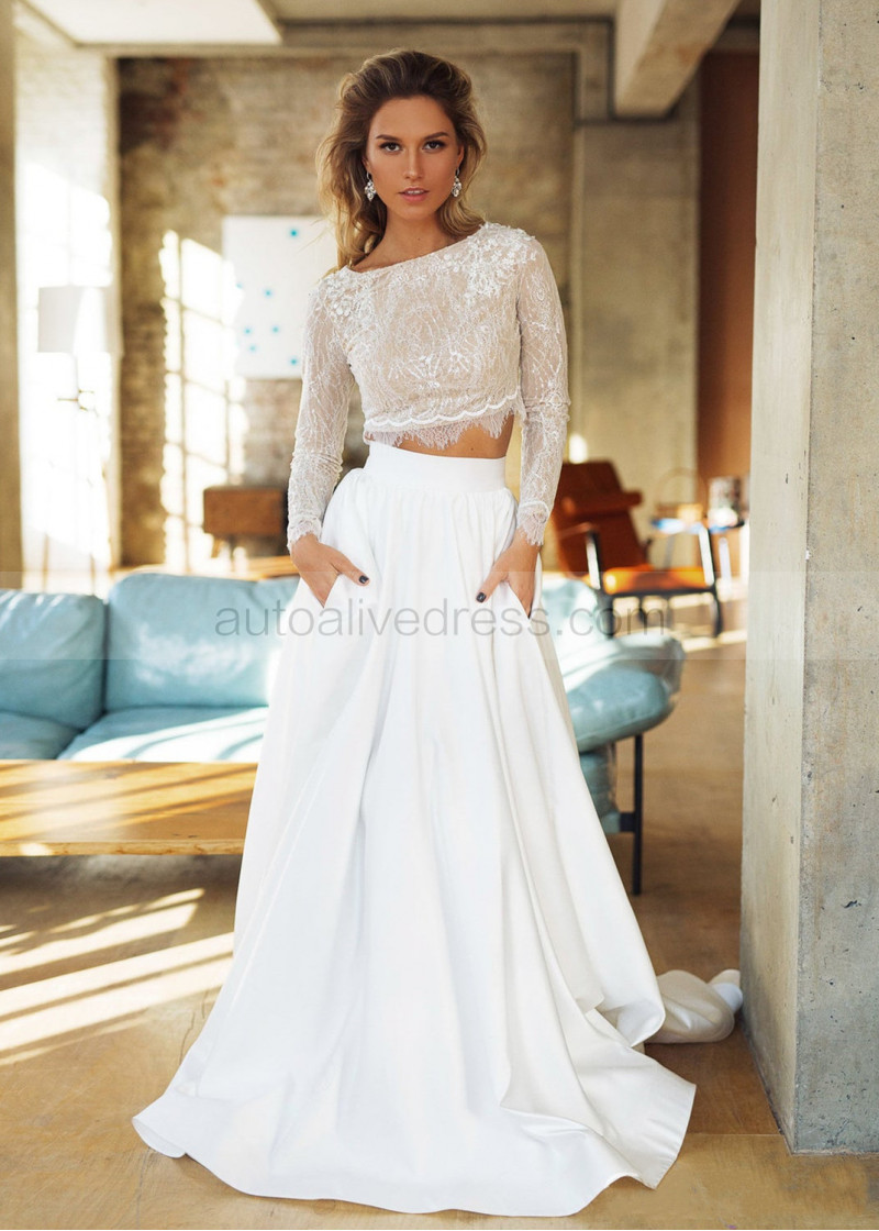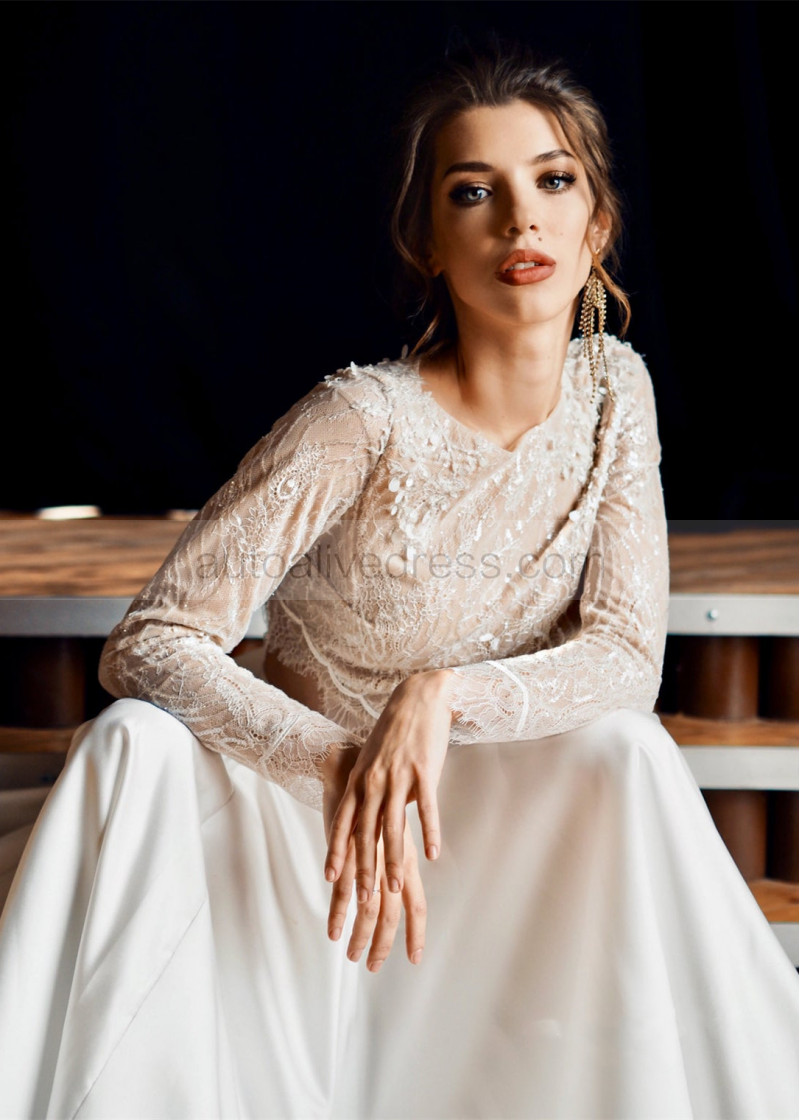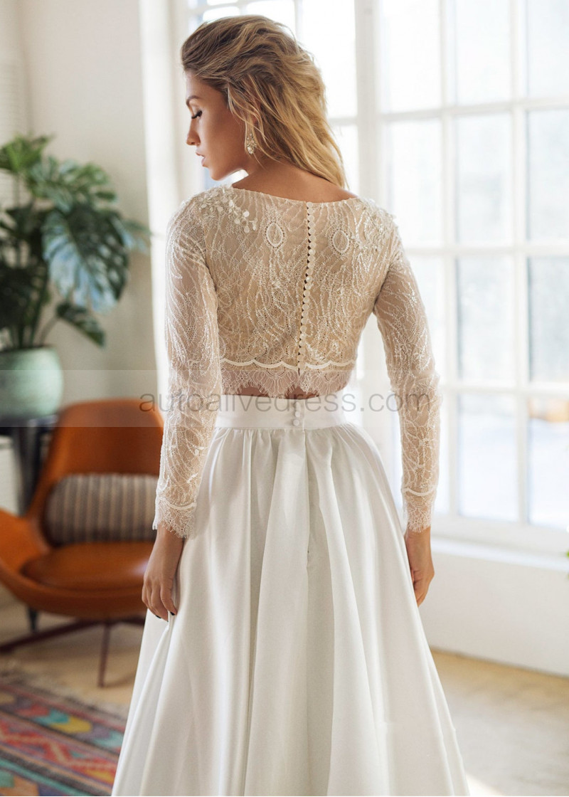 Sexy Two Piece Lace Wedding Dress With Satin Skirt
