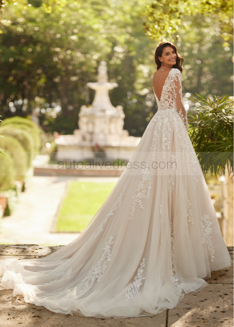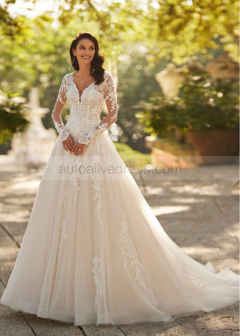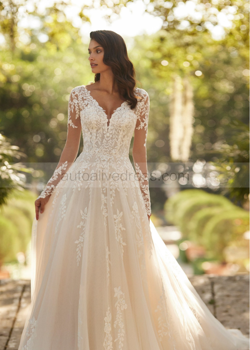 Sheer Long Sleeves Beaded Lace Tulle Gorgeous Wedding Dress
