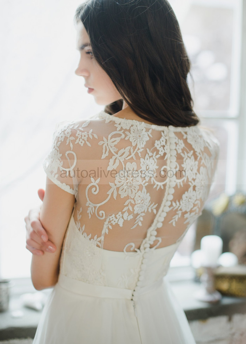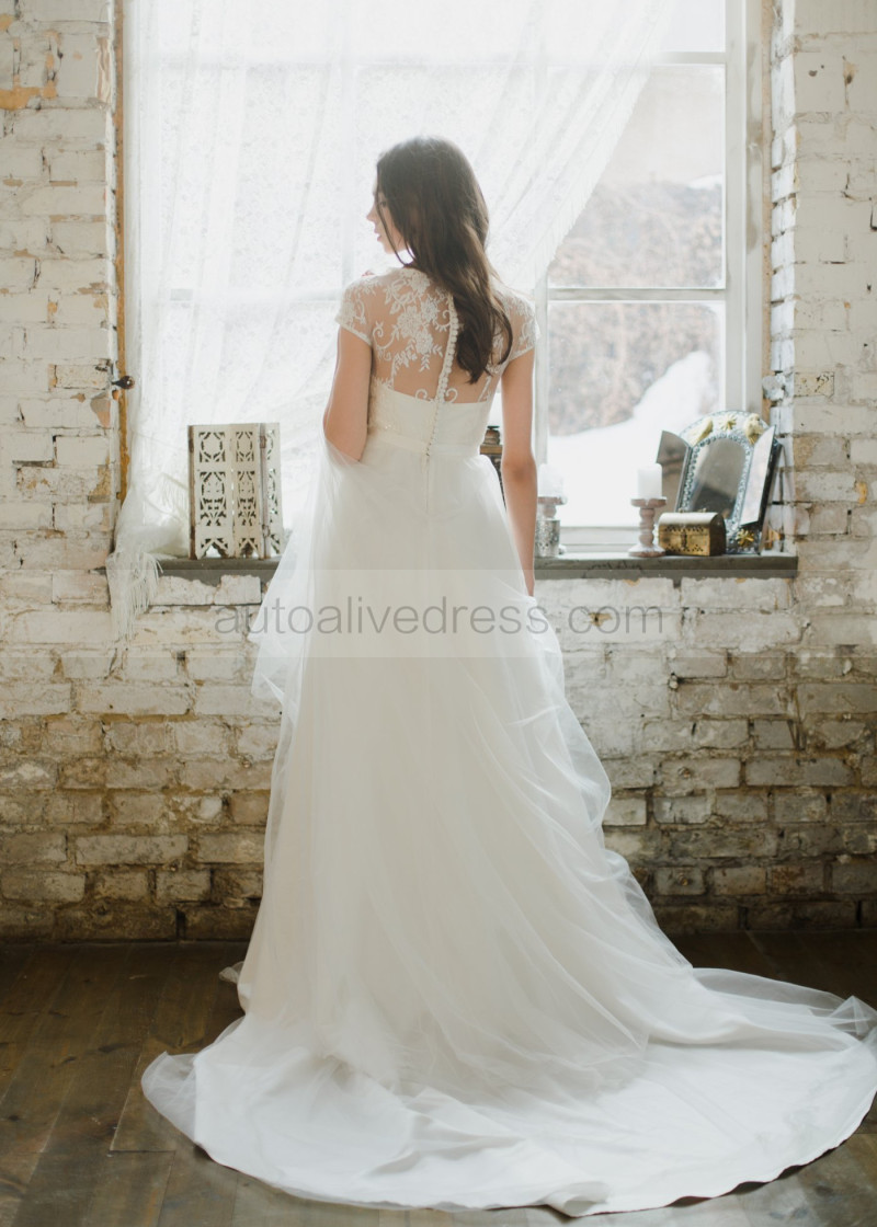 Short Sleeve Ivory Lace Tulle Wedding Dress