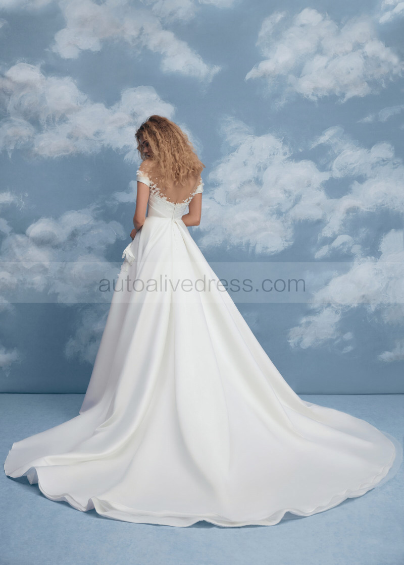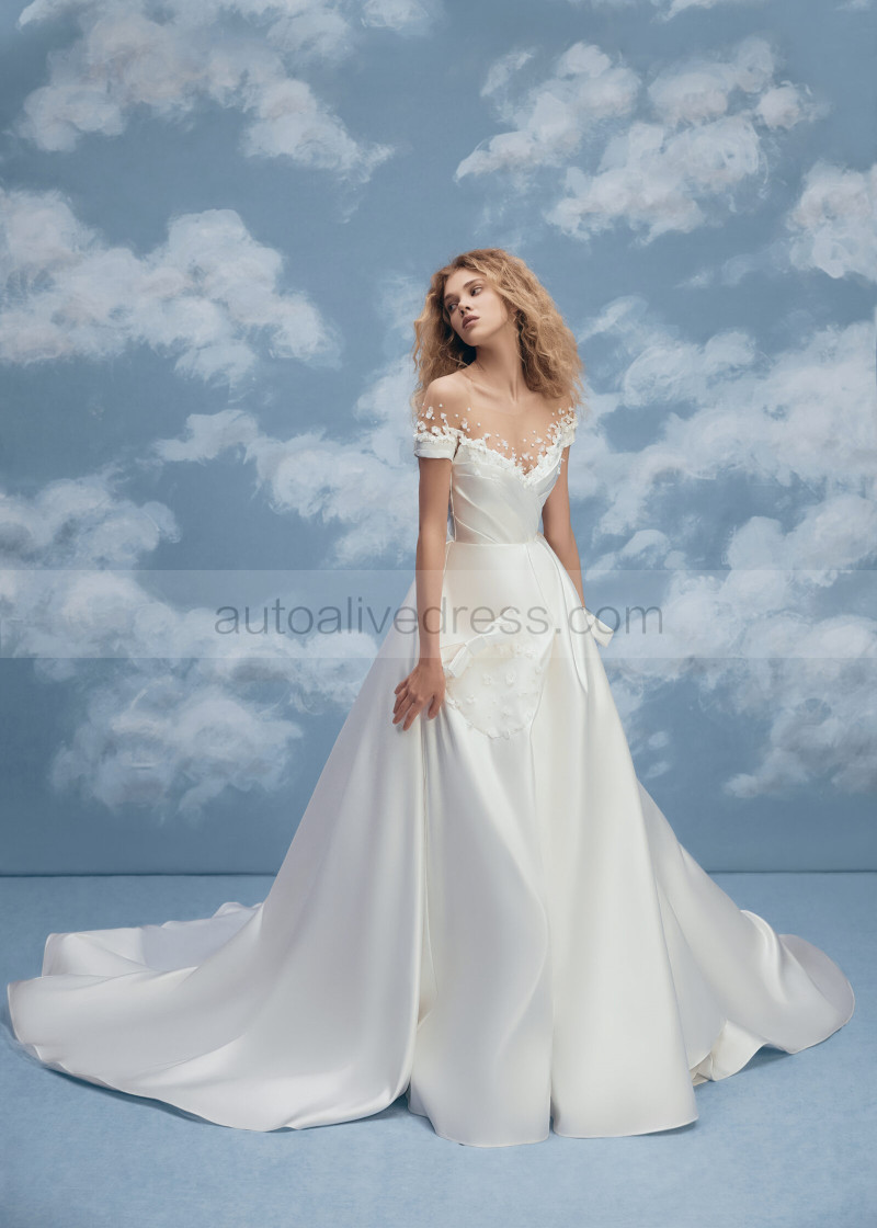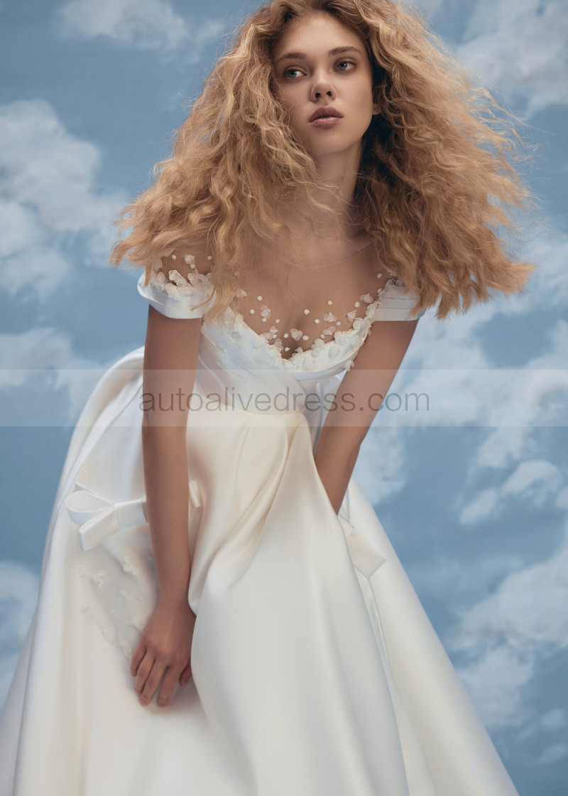 Short Sleeves Ivory 3D Flowers Satin Gorgeous Wedding Dress