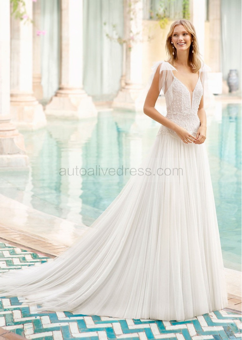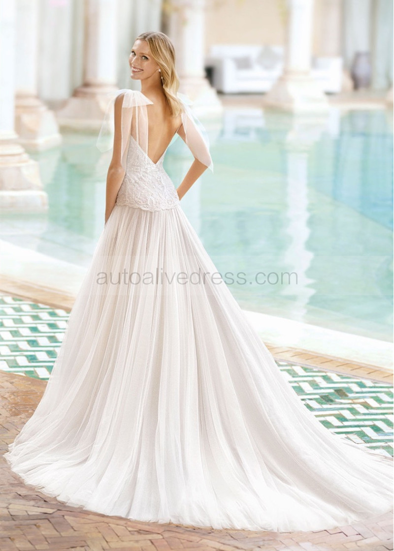Beaded Ivory Lace Tulle V Back Wedding Dress