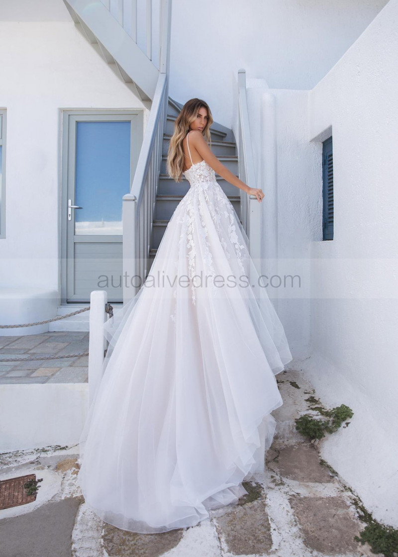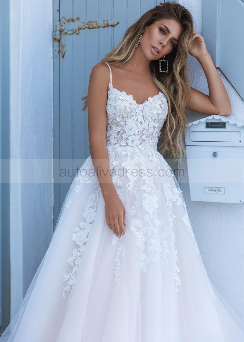 Spaghetti Straps Beaded Ivory Lace Tulle Wedding Dress