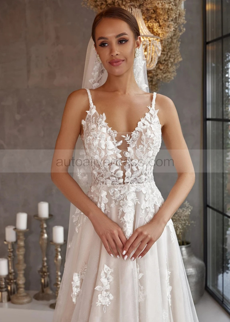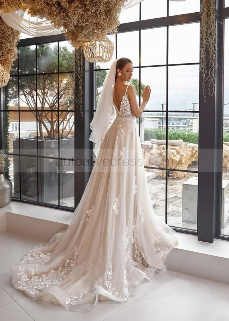 Spaghetti Straps Beaded Lace Tulle Fashion Wedding Dress