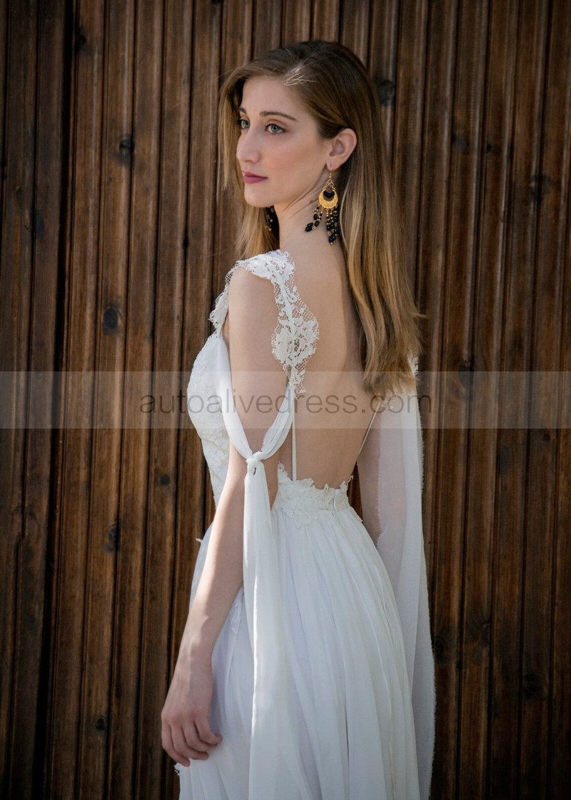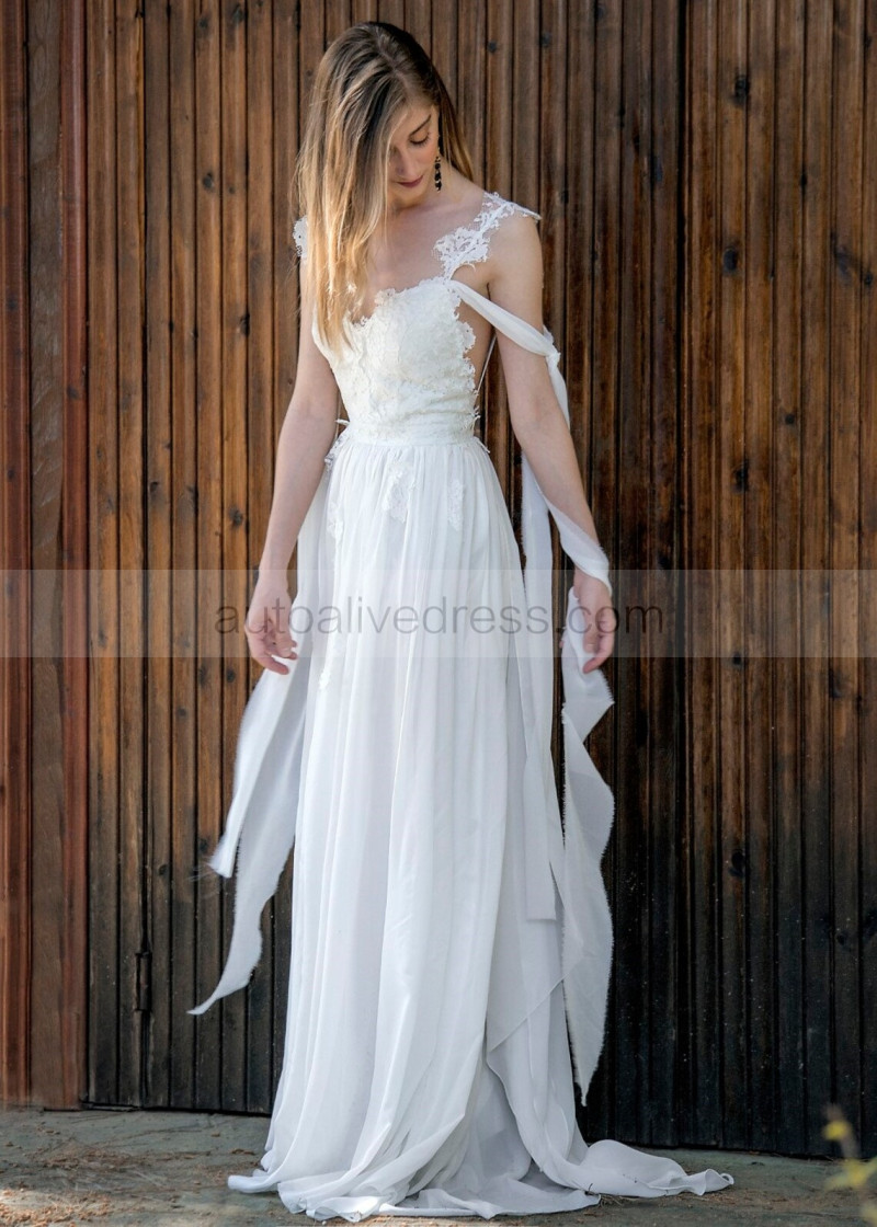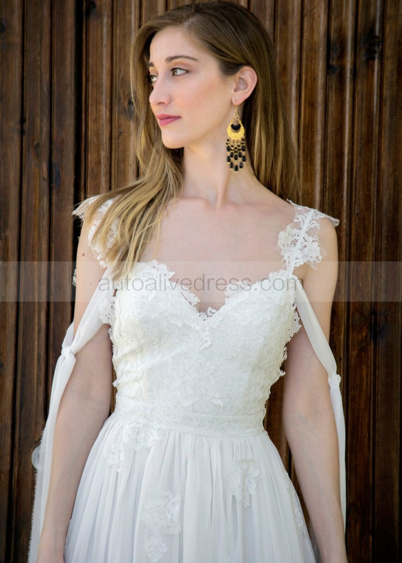 Spagetti Straps Ivory Lace Chiffon Beach Airy Wedding Dress