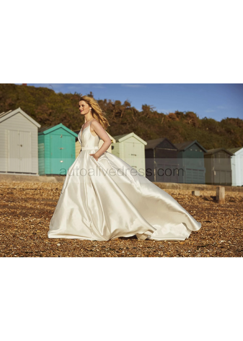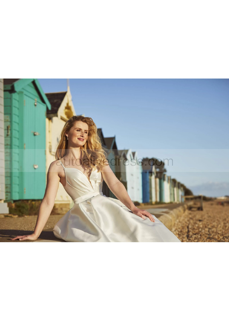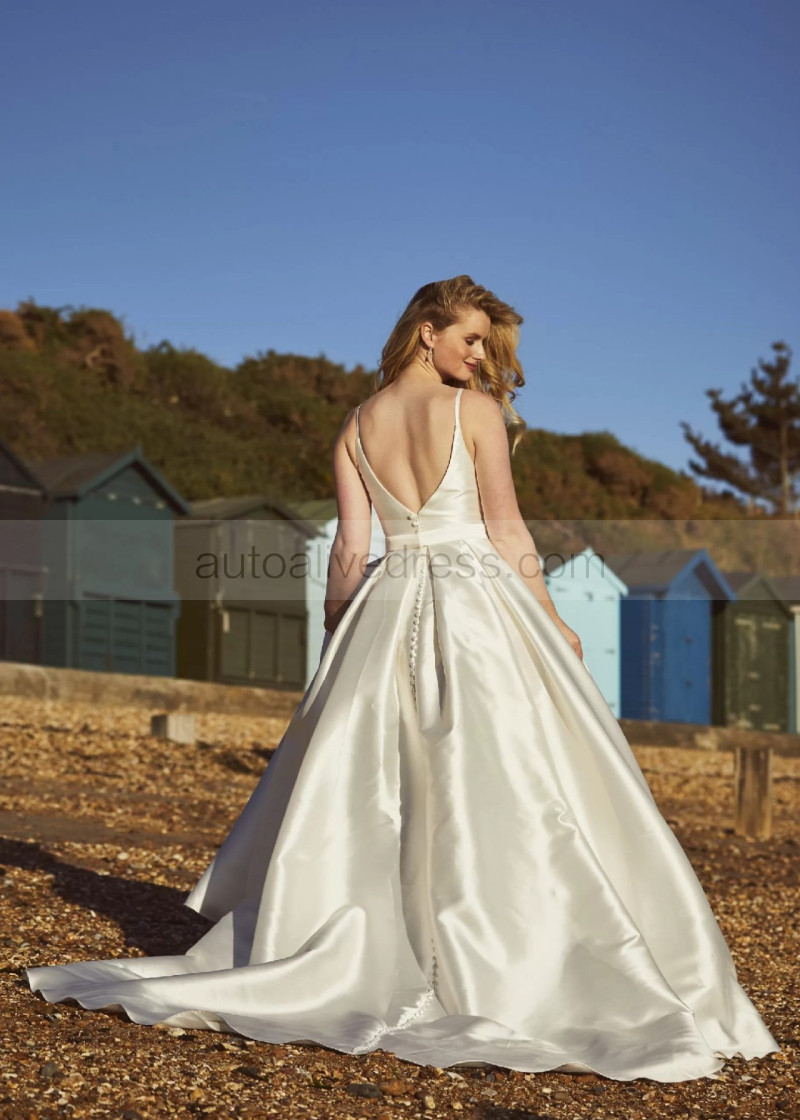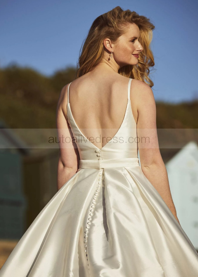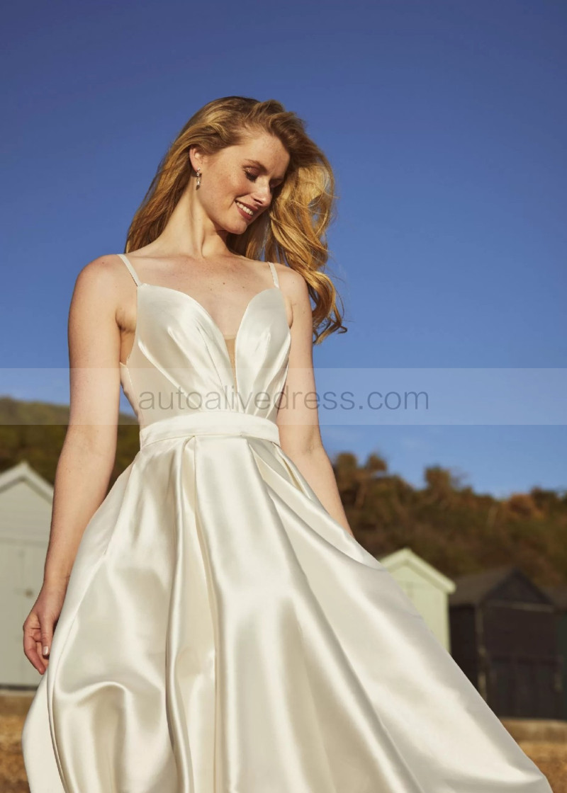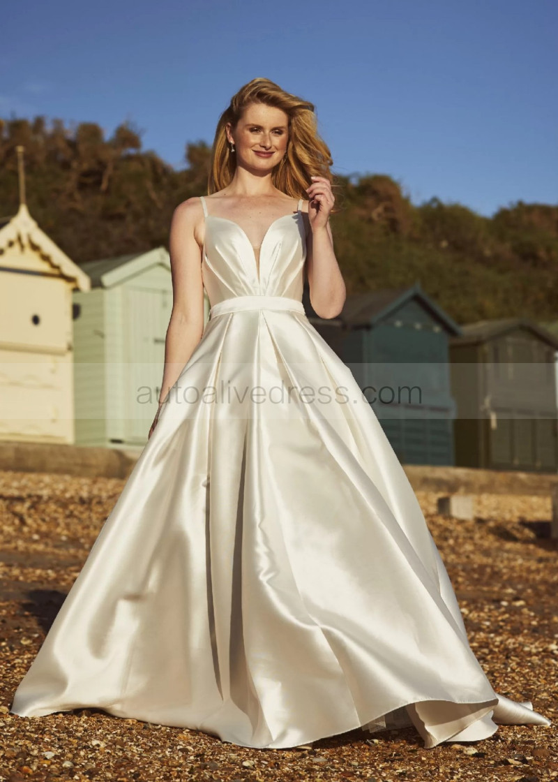 Spaghetti Straps Ivory Pleated Satin Gorgeous Wedding Dress