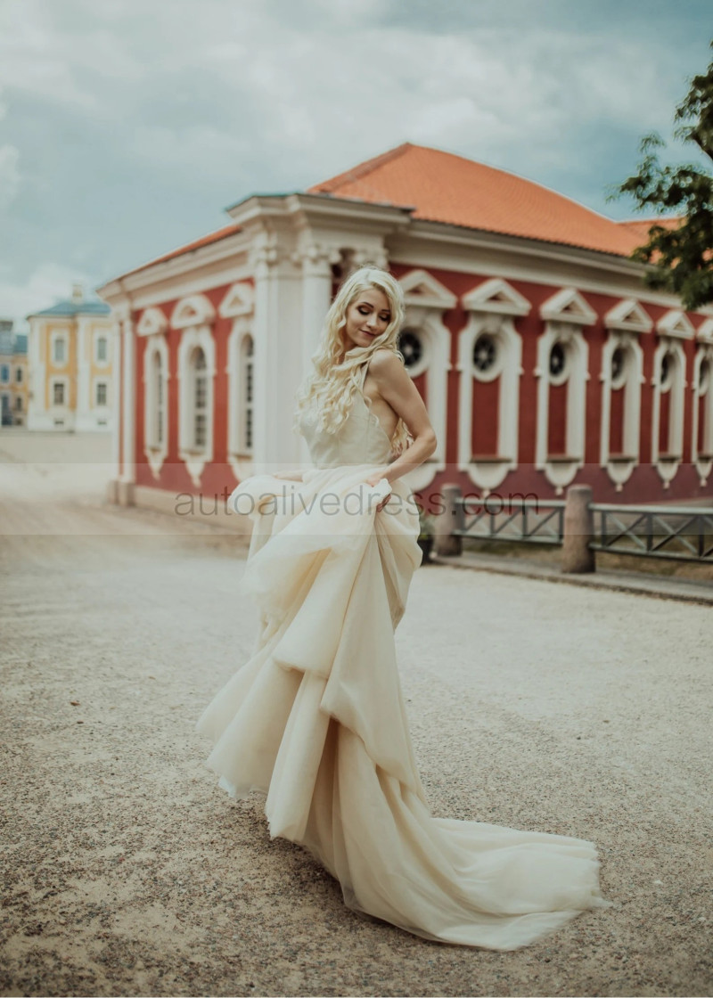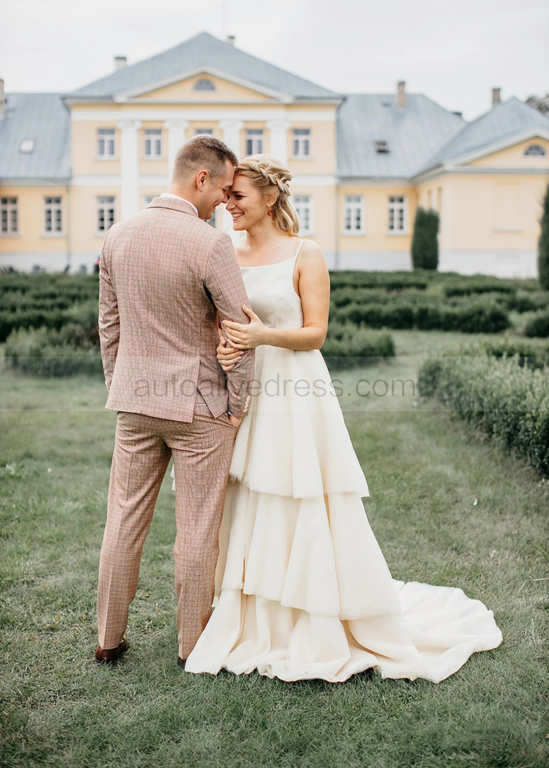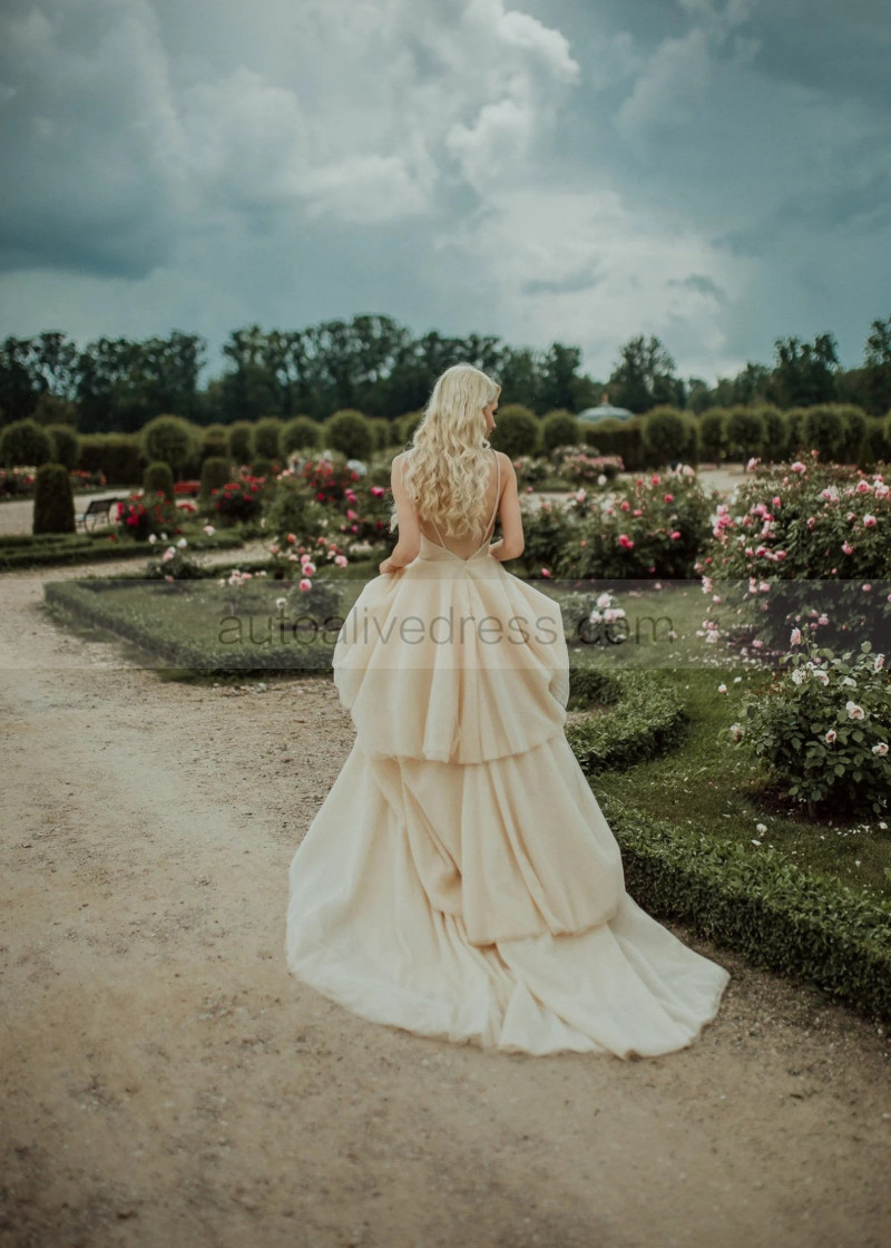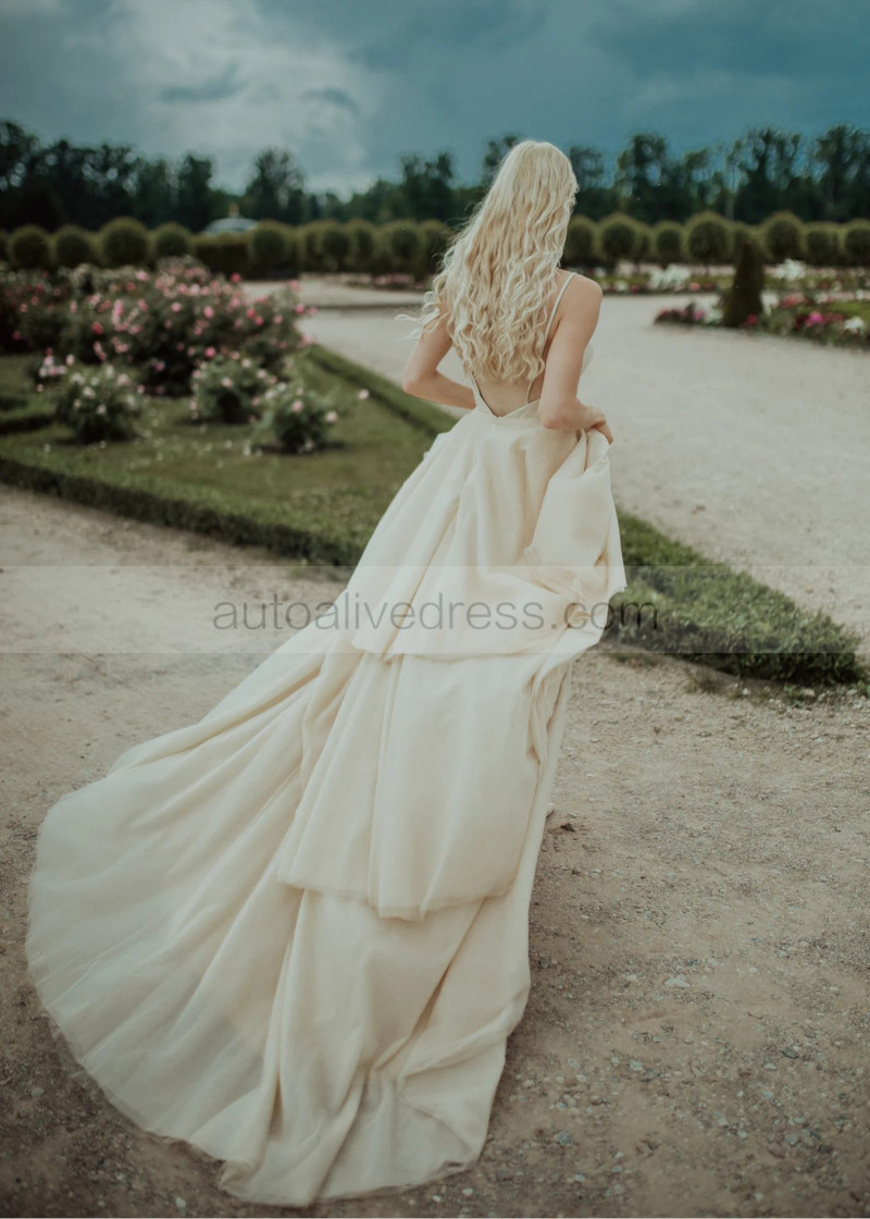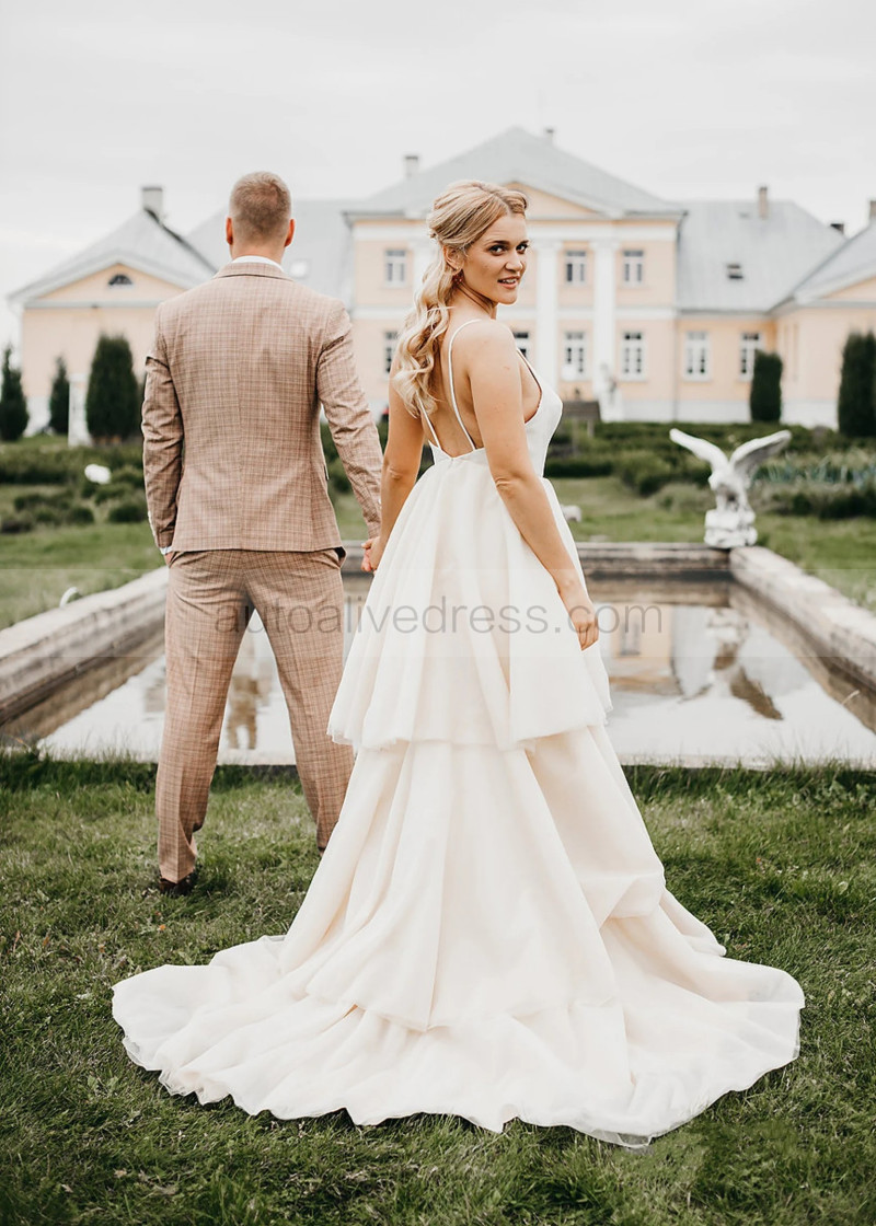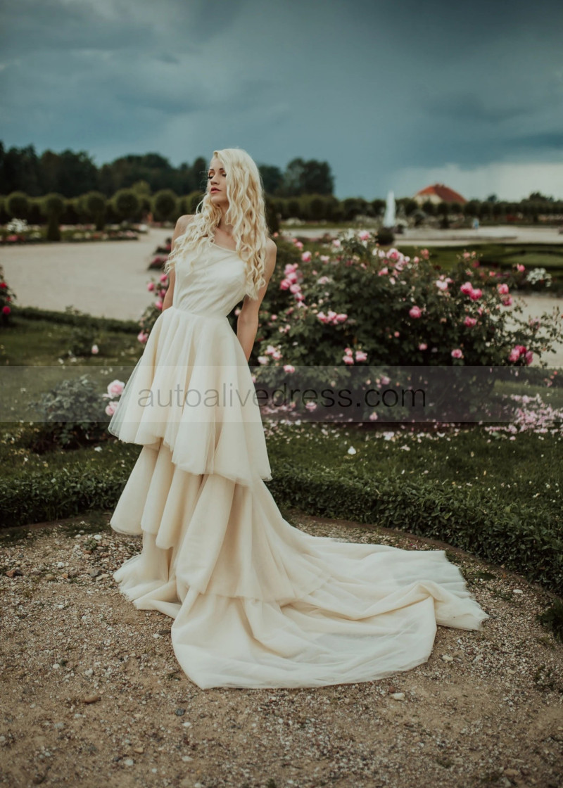 Spaghetti Straps Nude Tulle Layered Wedding Dress