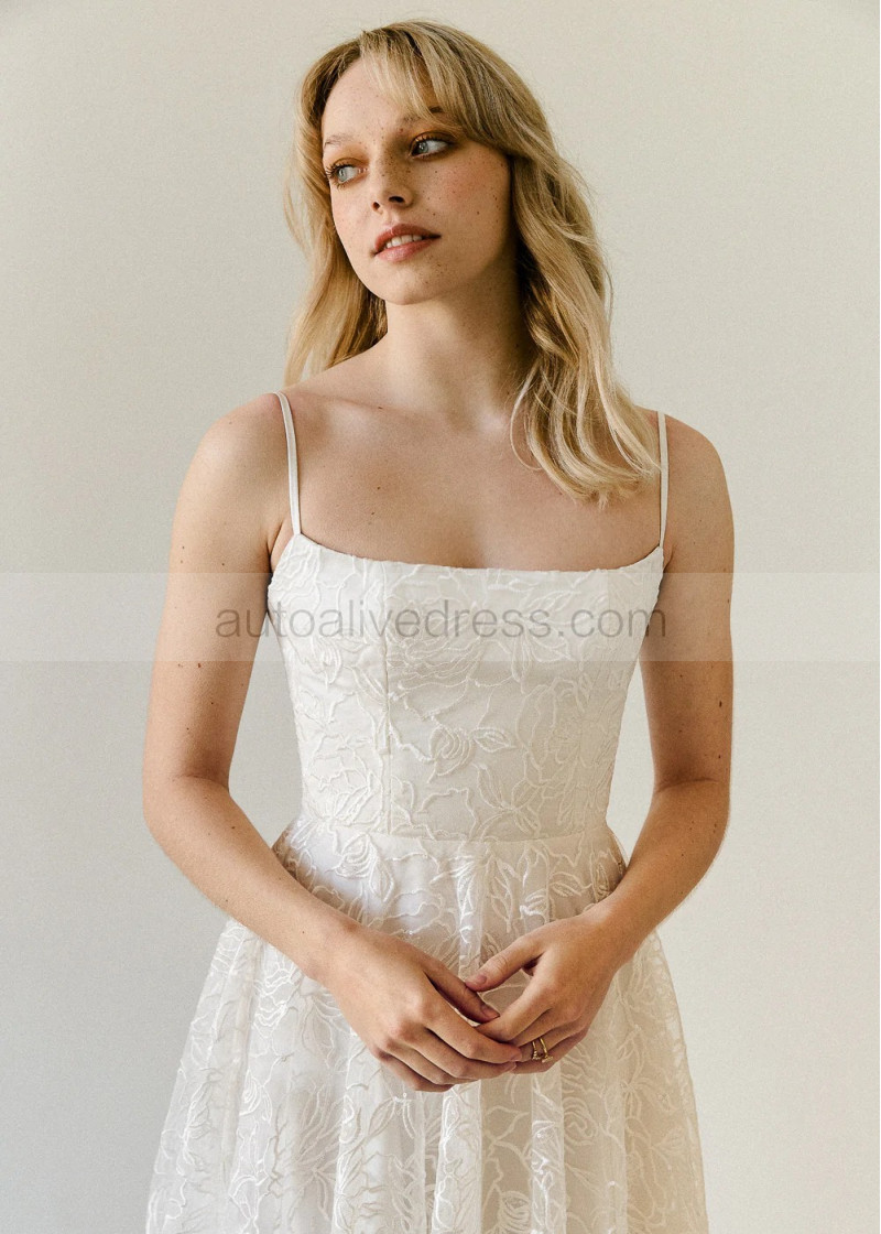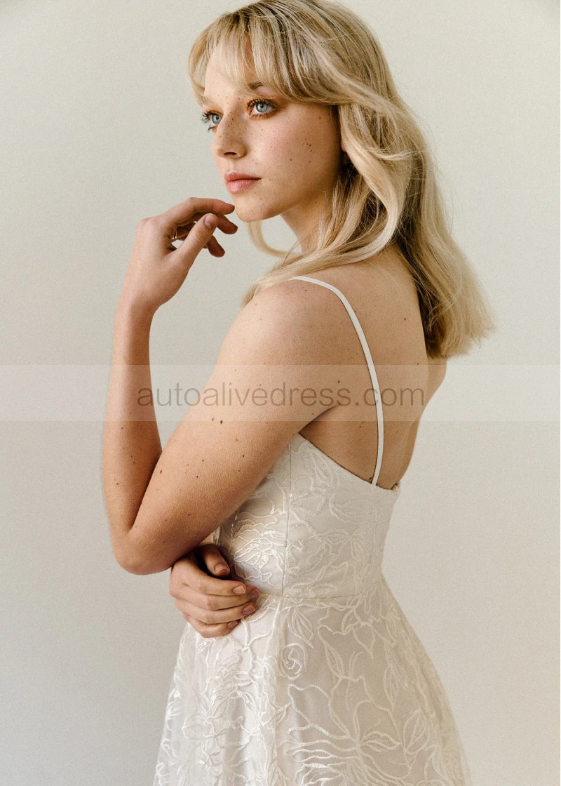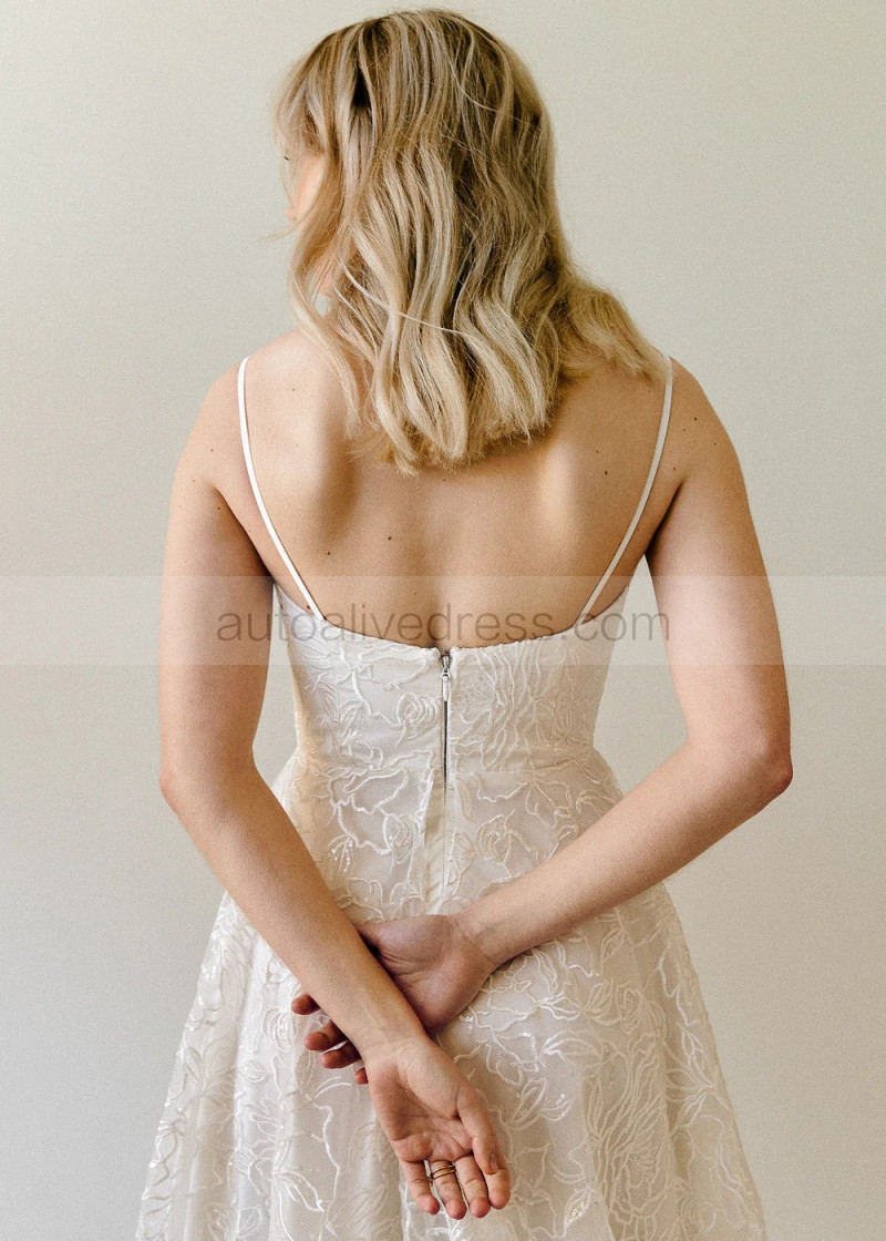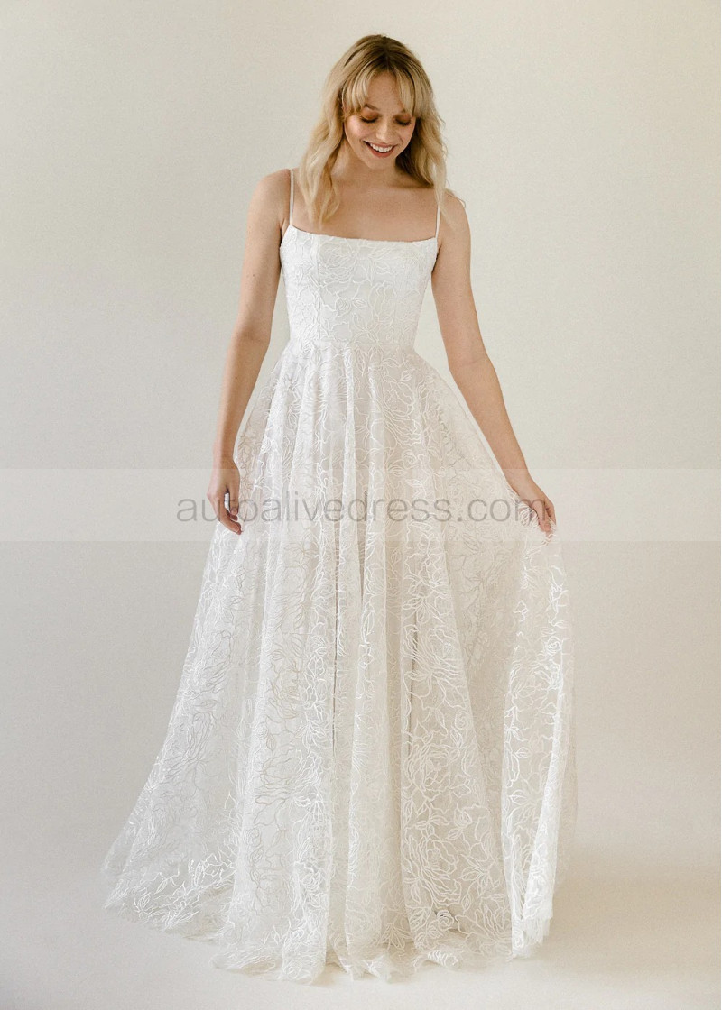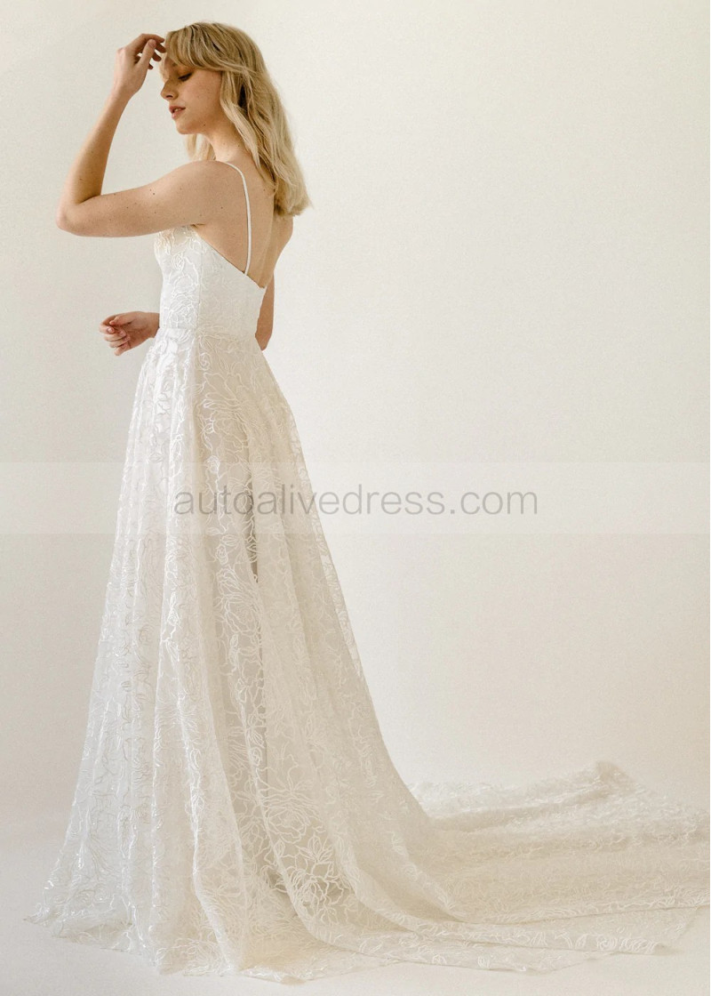 Straight Neck Ivory Sequined Lace Wedding Dress