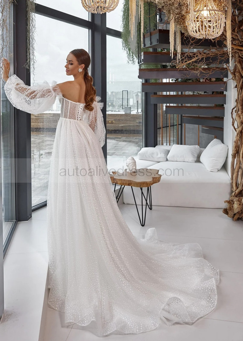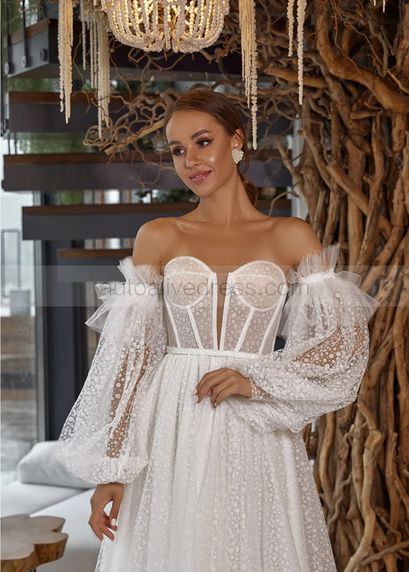 Strapless Beaded Ivory Lace Tulle Corset Back Structured Wedding Dress
