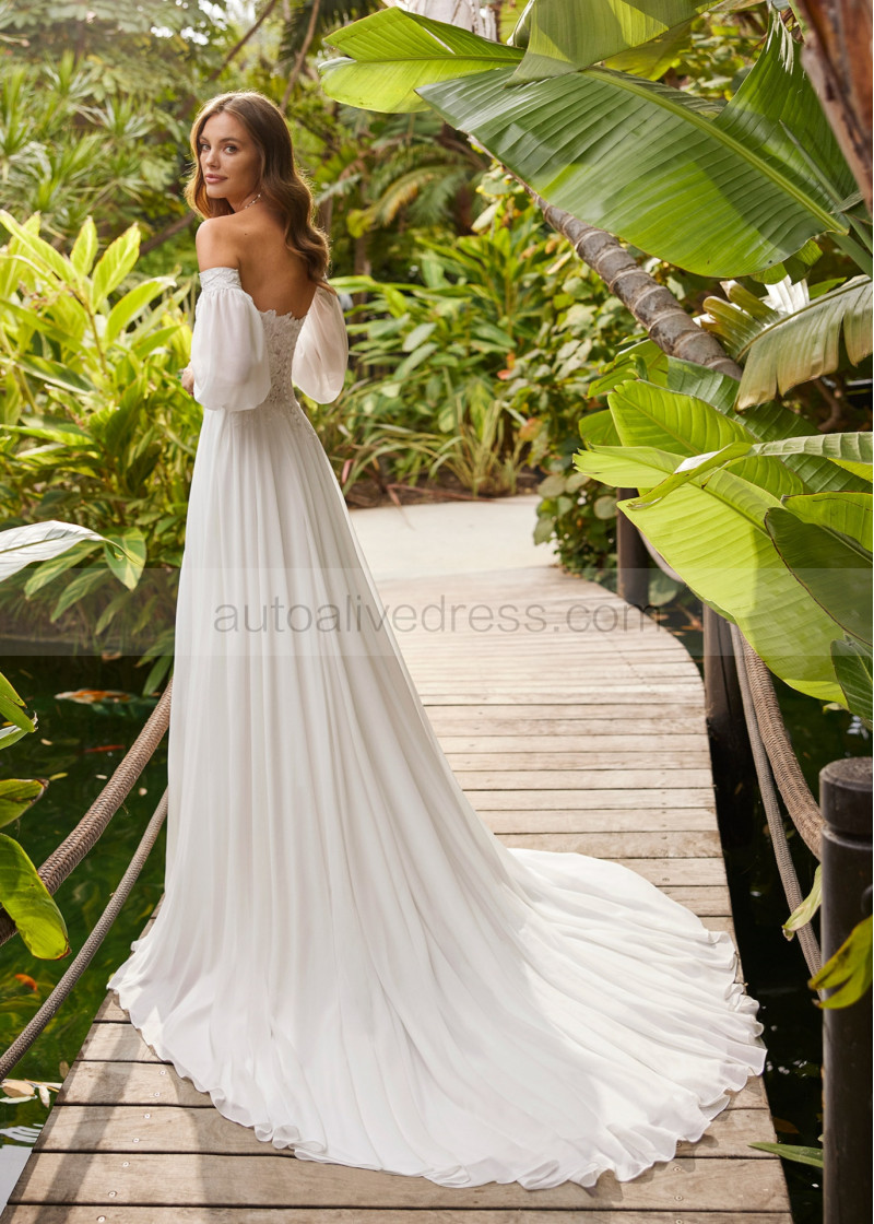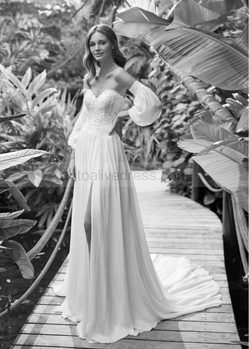 Strapless Ivory Lace Chiffon Slit Sexy Wedding Dress