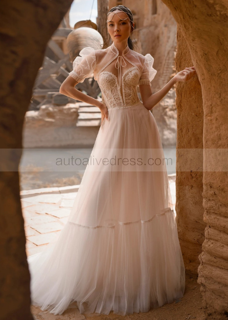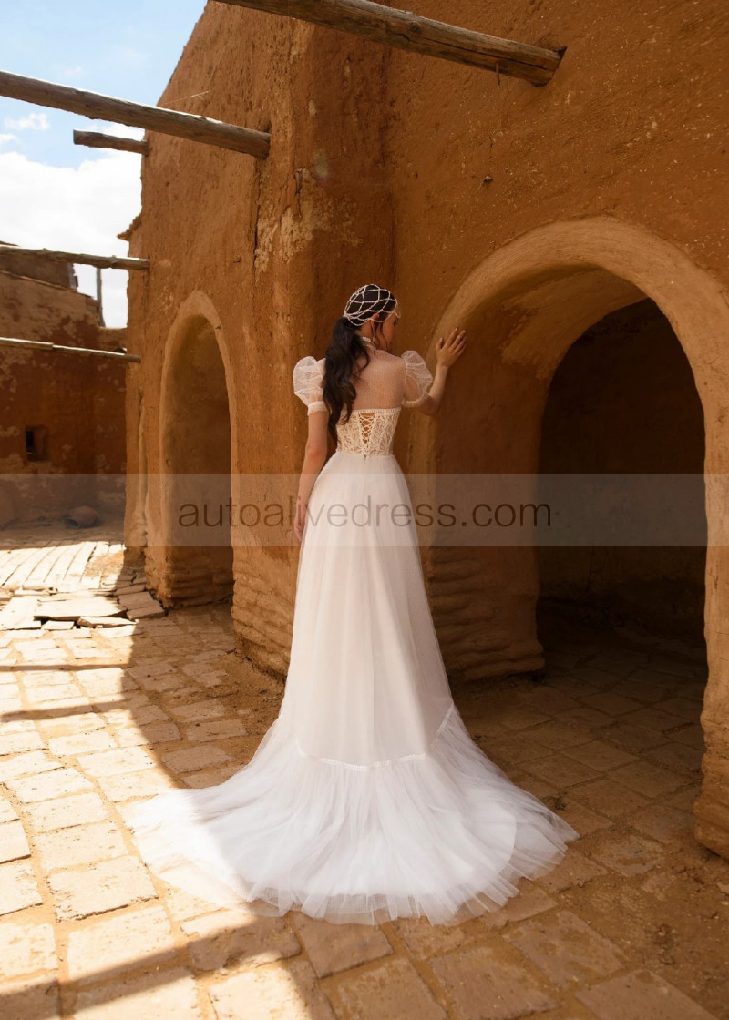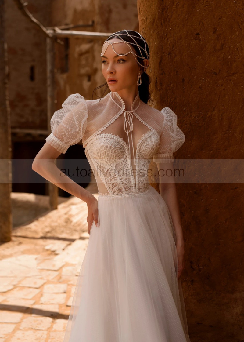 Strapless Ivory Lace Dotted Tulle Wedding Dress With Jacket