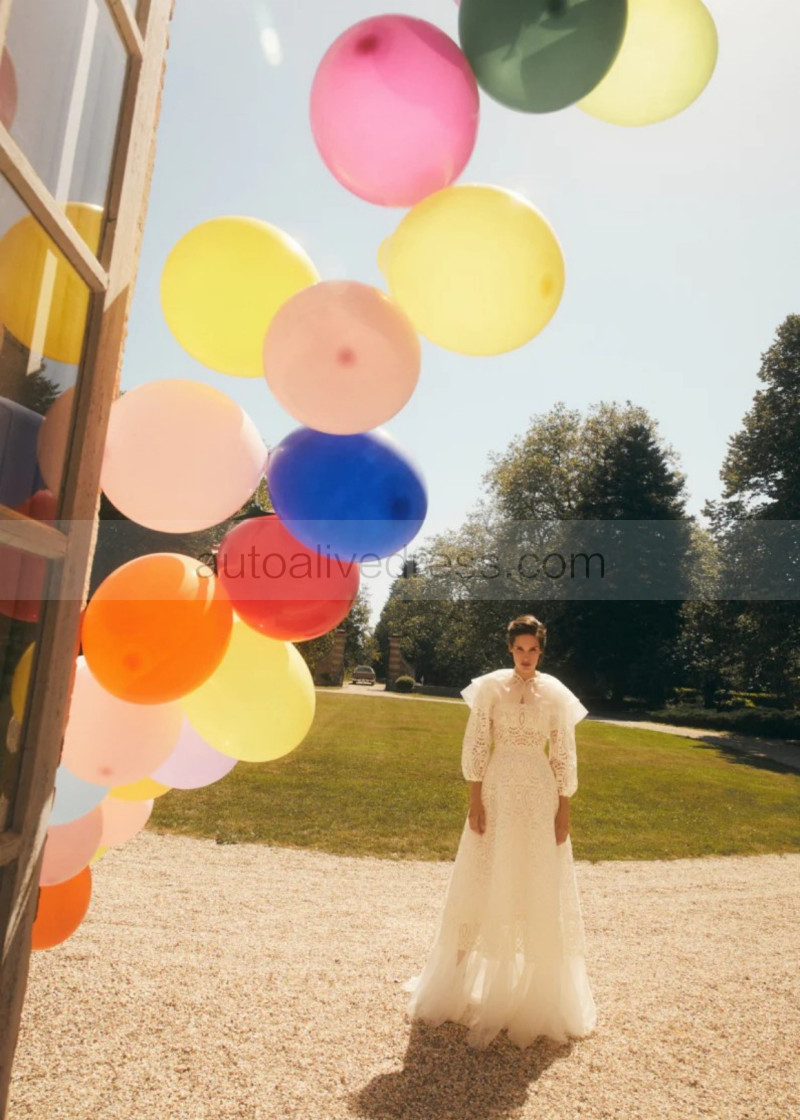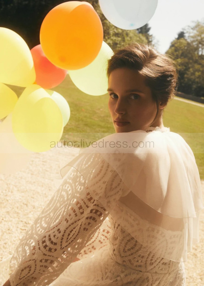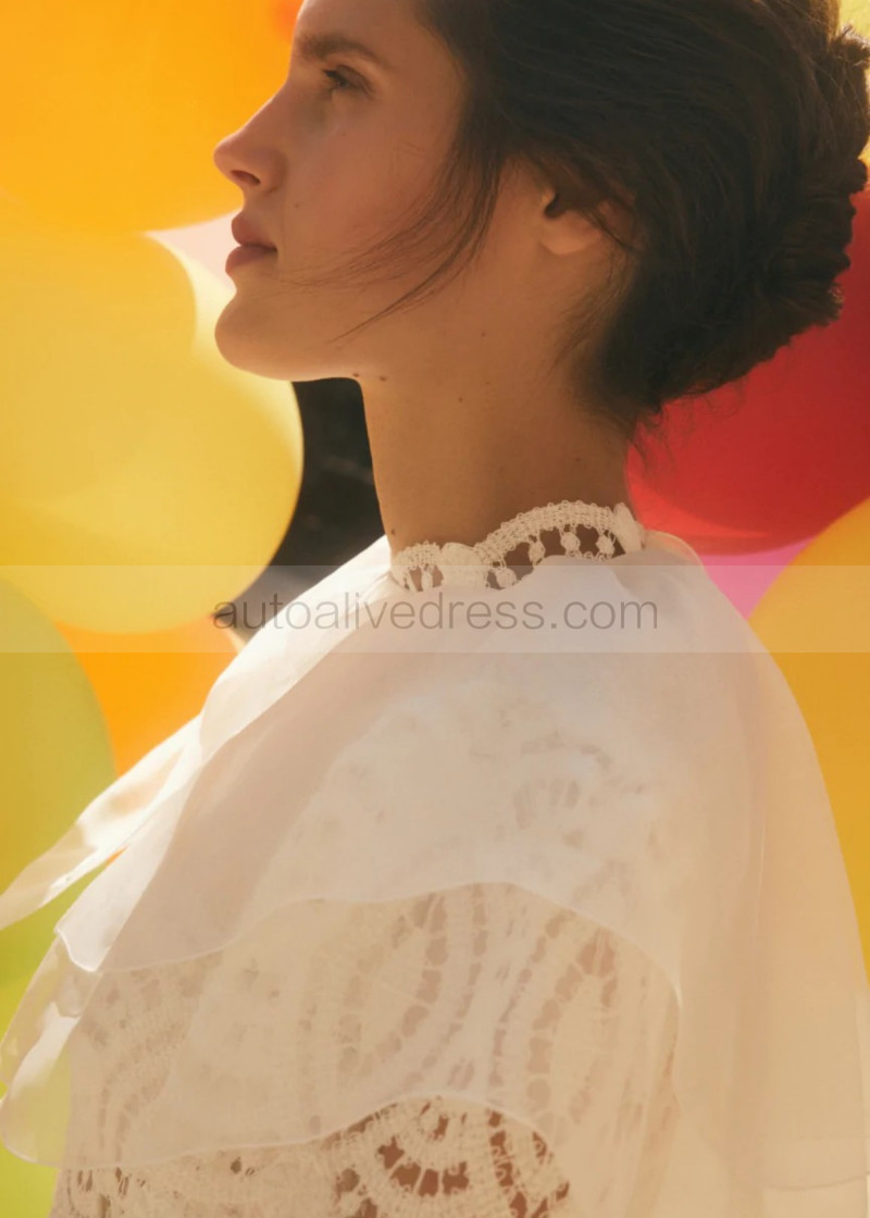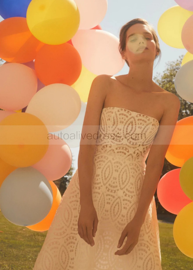Strapless Ivory Lace Organza Wedding Dress With Removable Cape