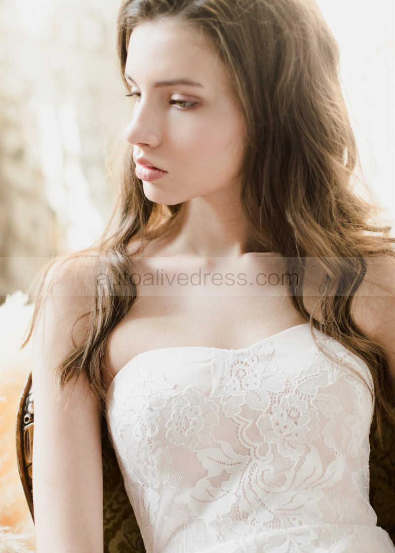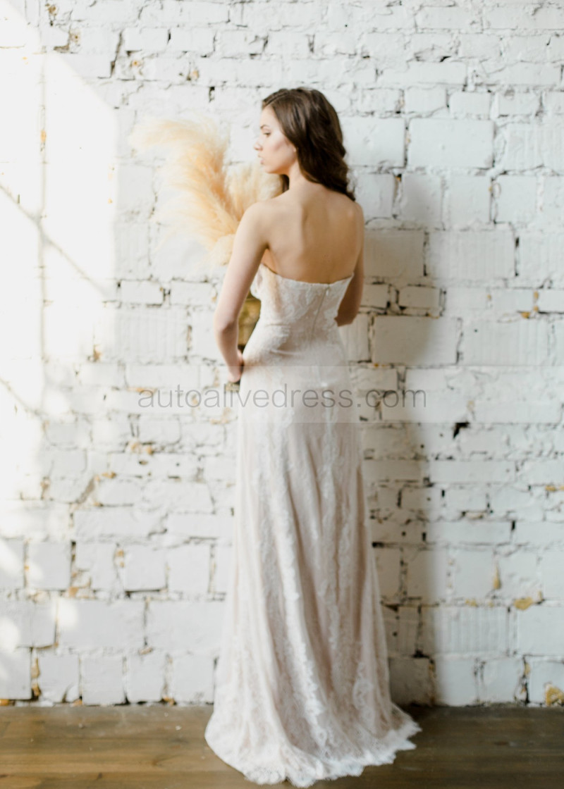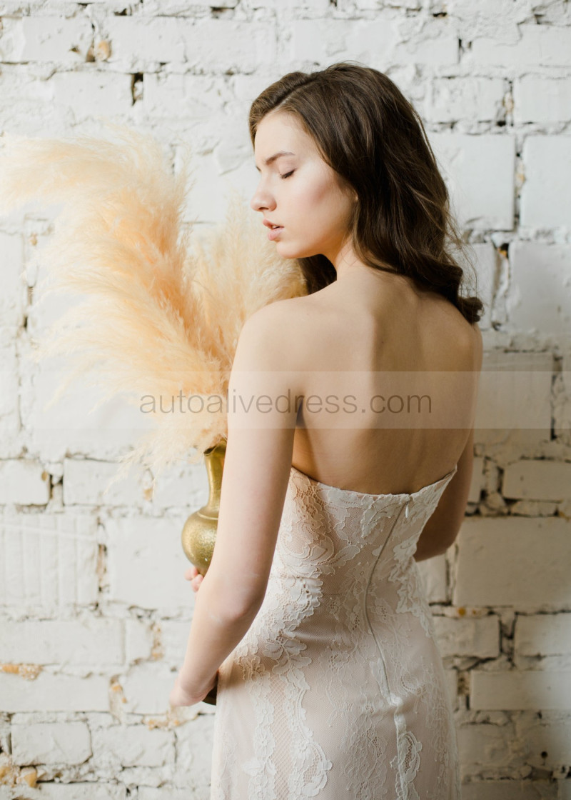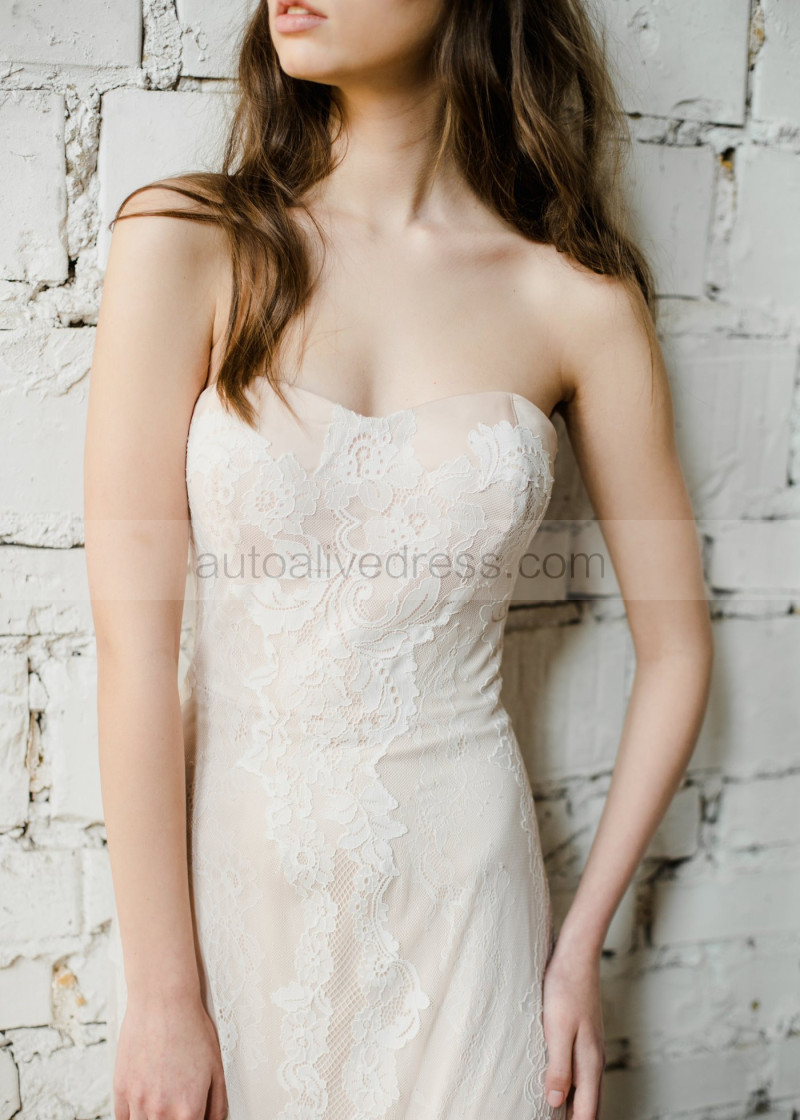 Strapless Ivory Lace Wedding Dress With Champagne Lining