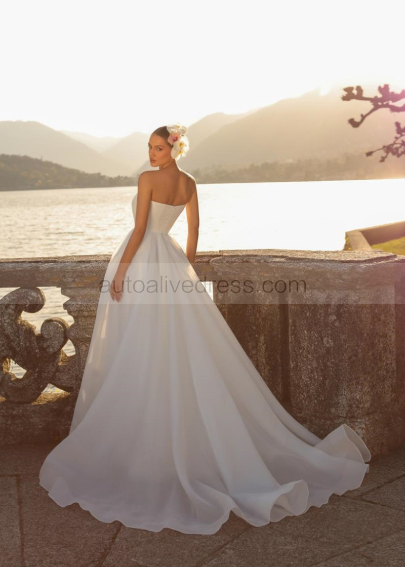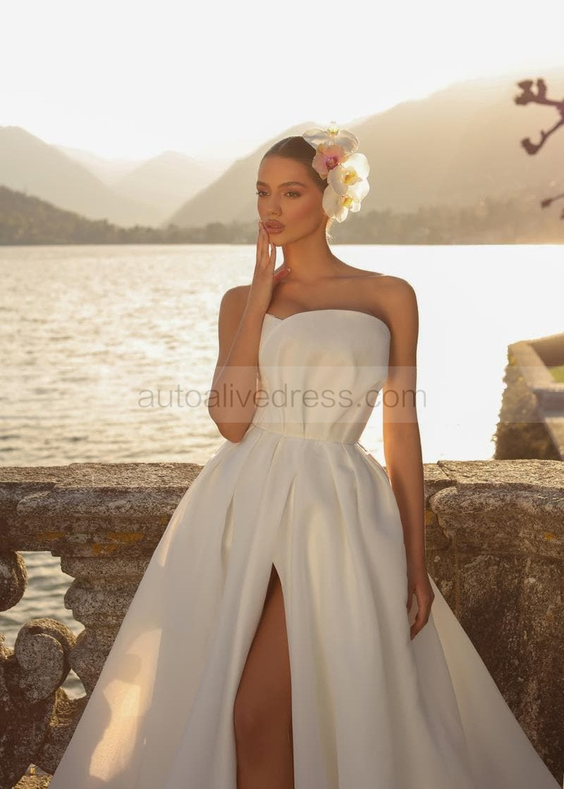 Strapless Ivory Organza Slit Unusual Wedding Dress