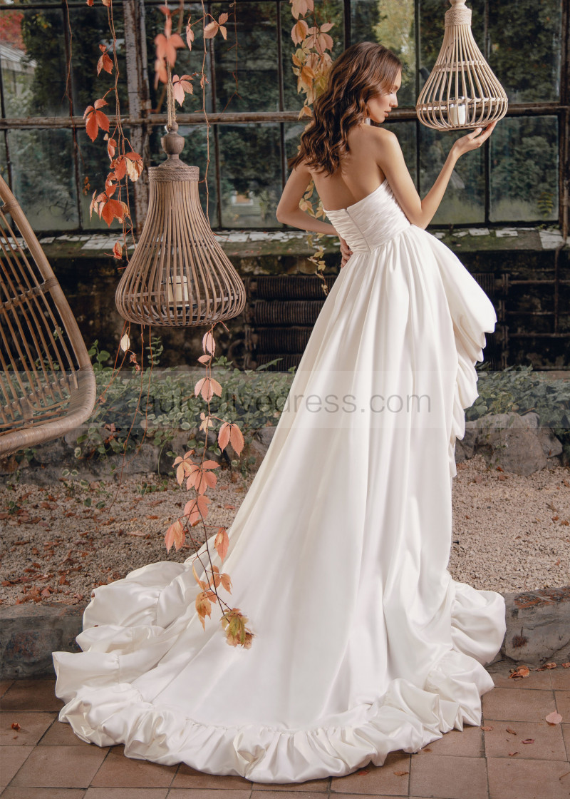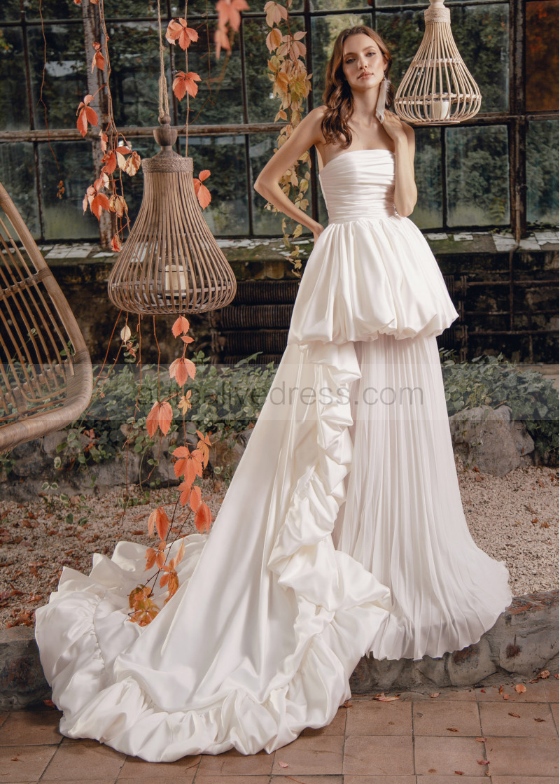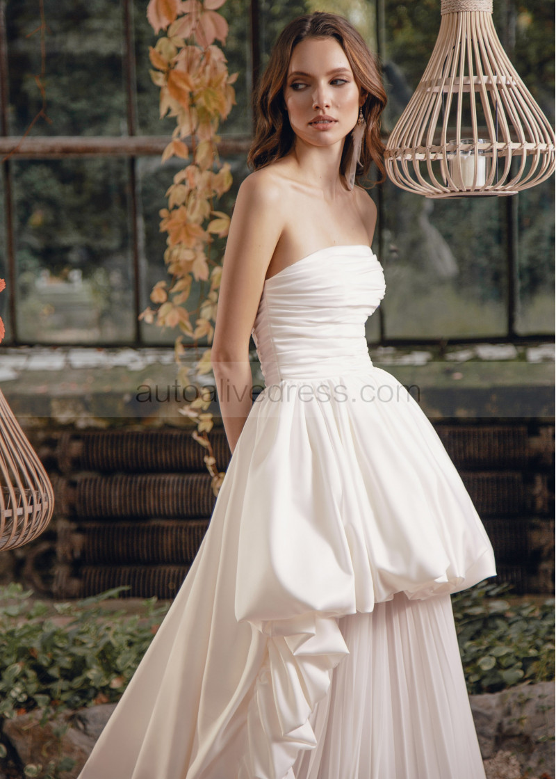 Strapless Ivory Pleated Satin Unique Wedding Dress