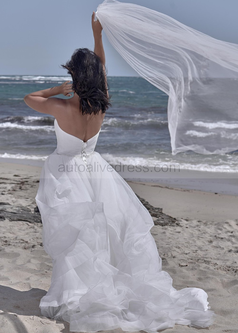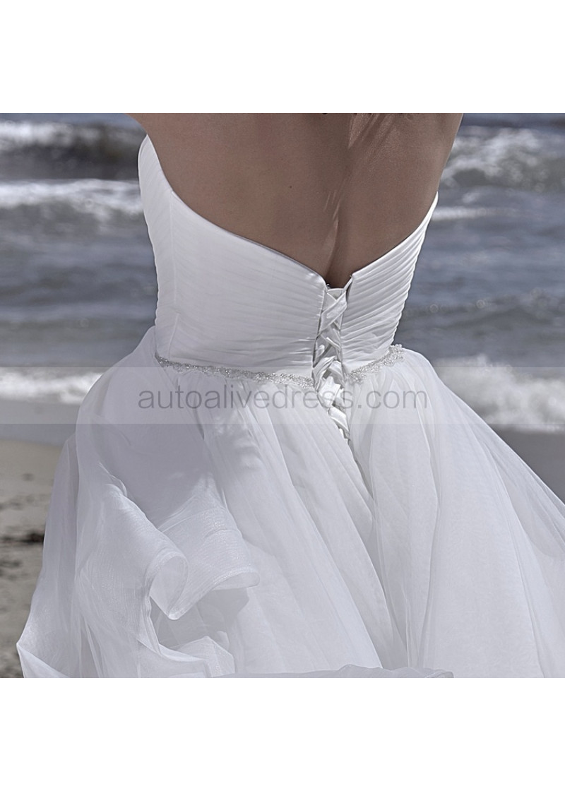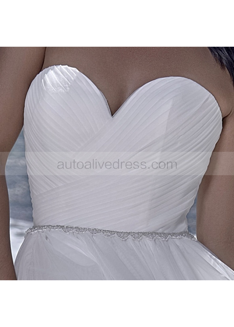 Strapless Ivory Ruched Tulle Corset Back Modern Wedding Dress