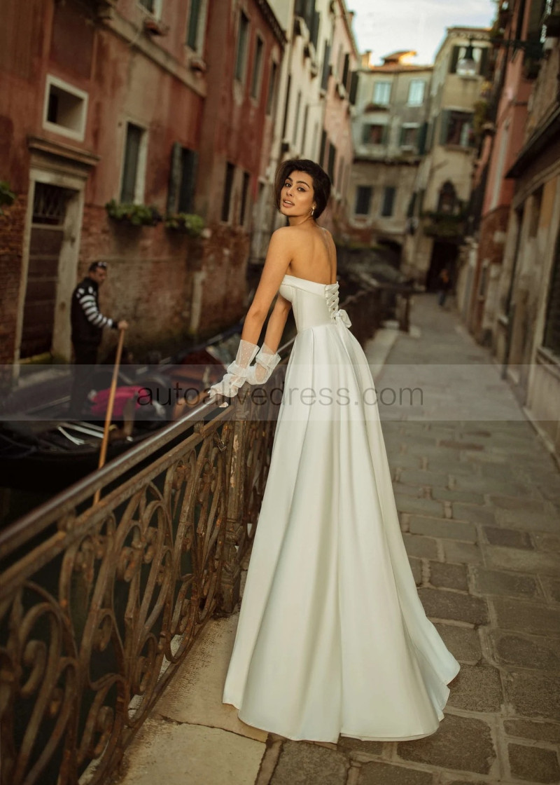 Strapless Beaded Ivory Satin Corset Back Classic Wedding Dress