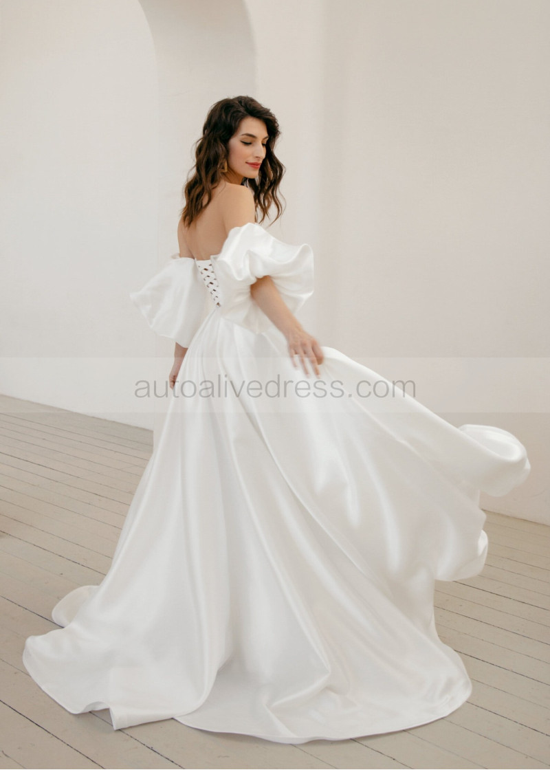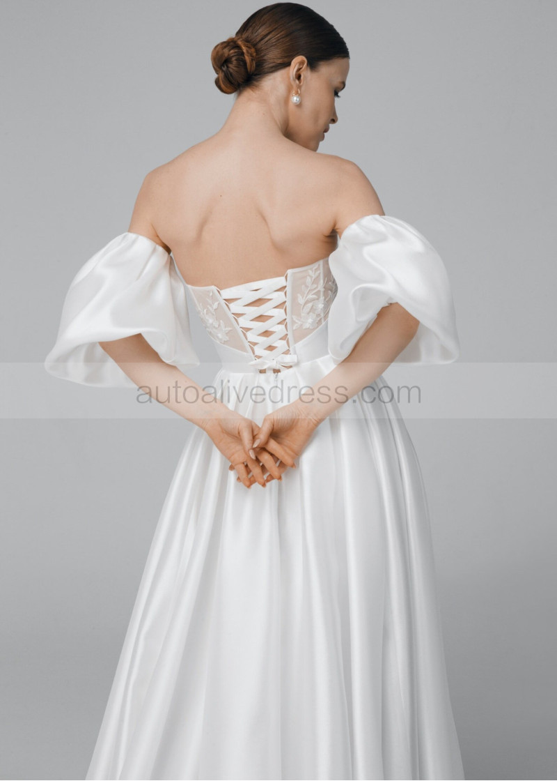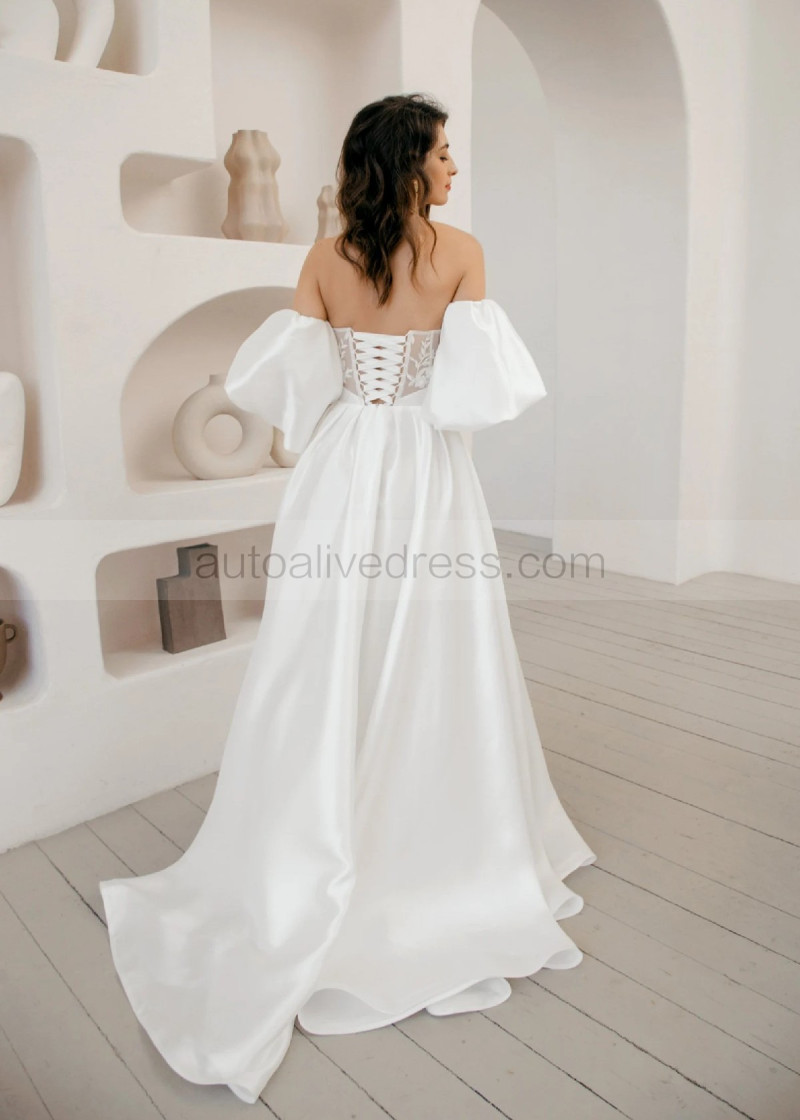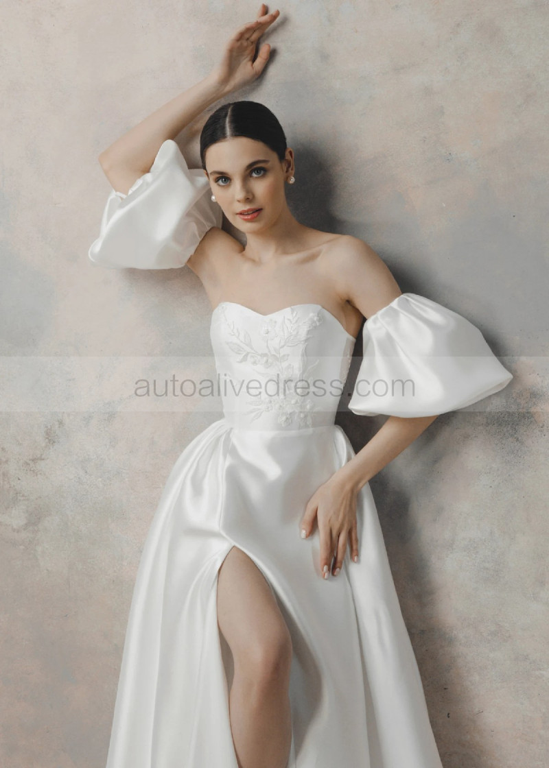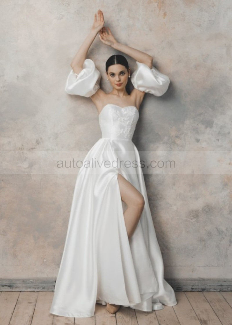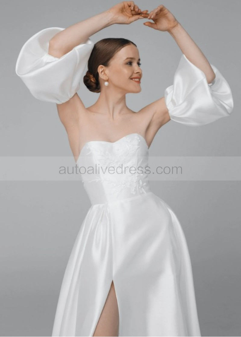 Strapless Ivory Satin Lace Wedding Dress With Detachable Sleeves