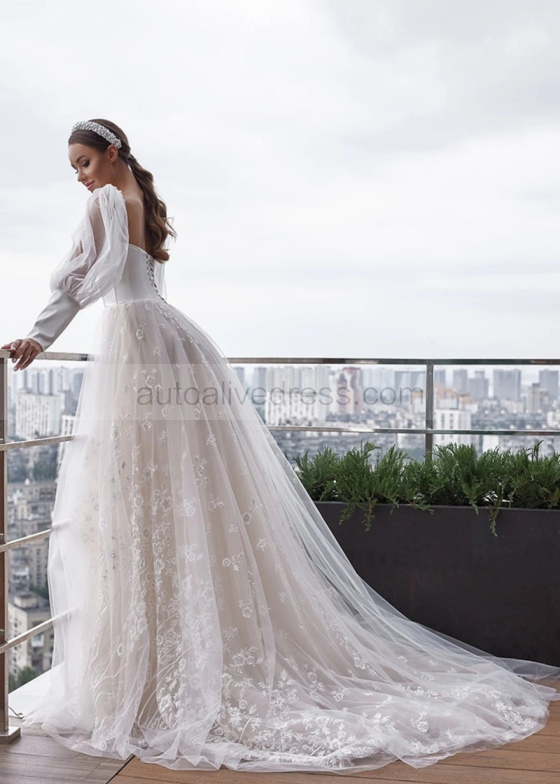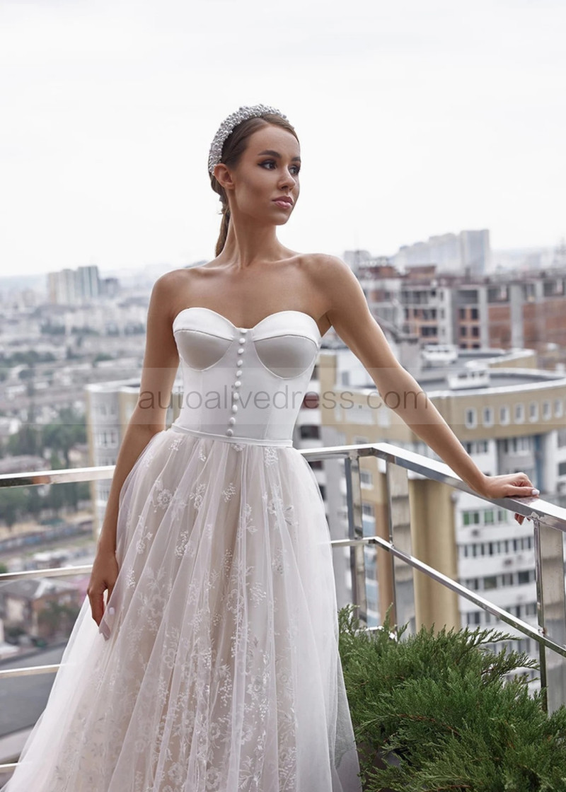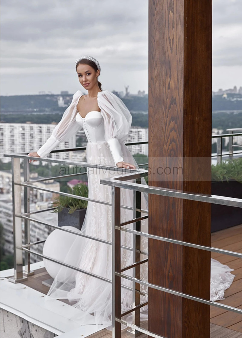 Strapless Satin Lace Dreamy Wedding Dress With Removable Sleeves