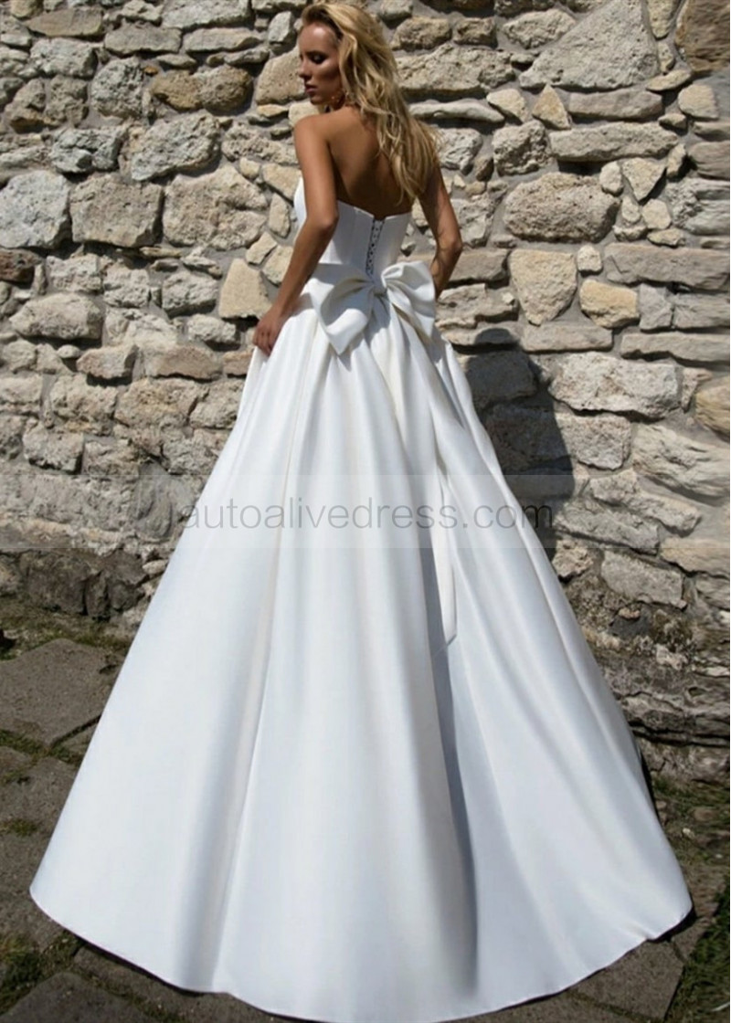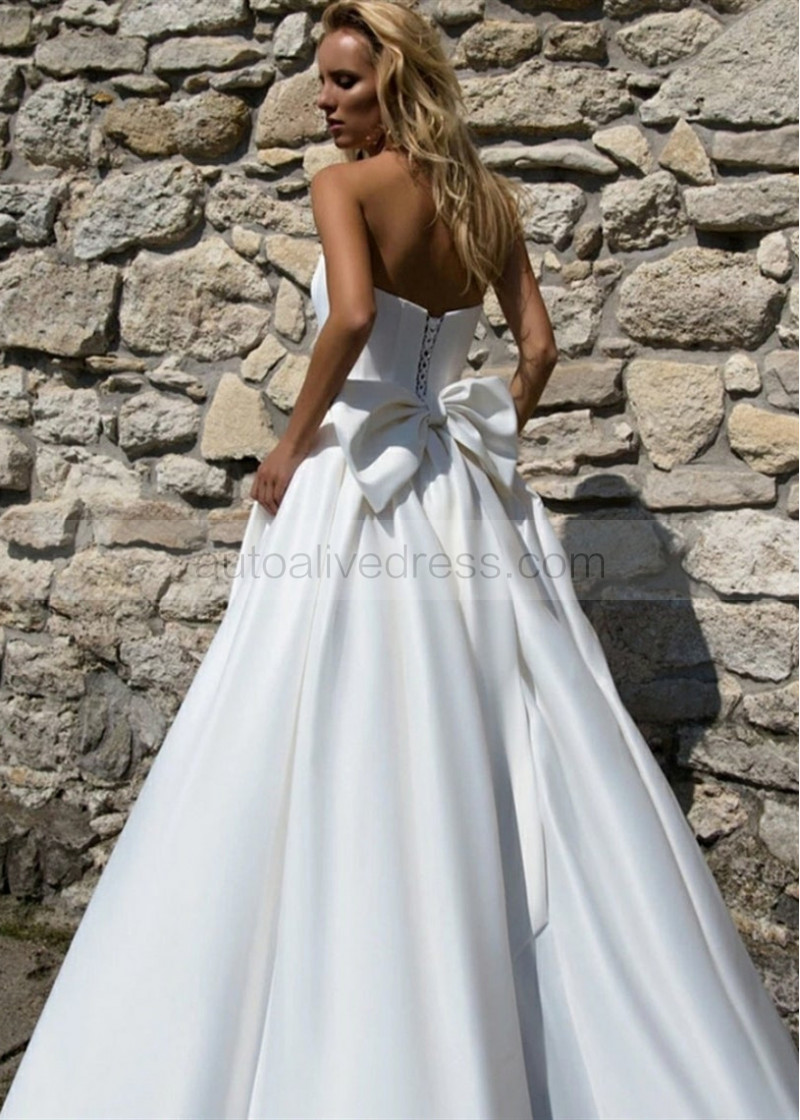 Strapless Satin White Lace Up Wedding Dress