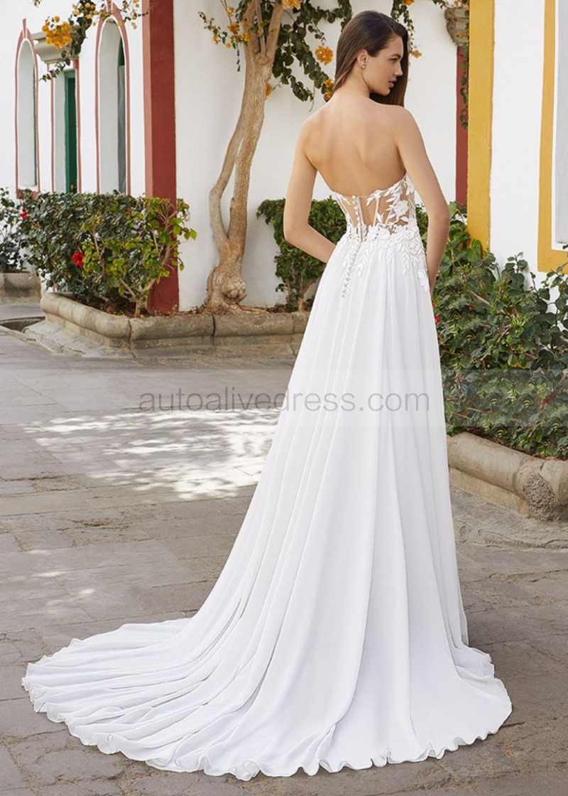 Strapless Sweetheart Neck Ivory Lace Chiffon Airy Wedding Dress