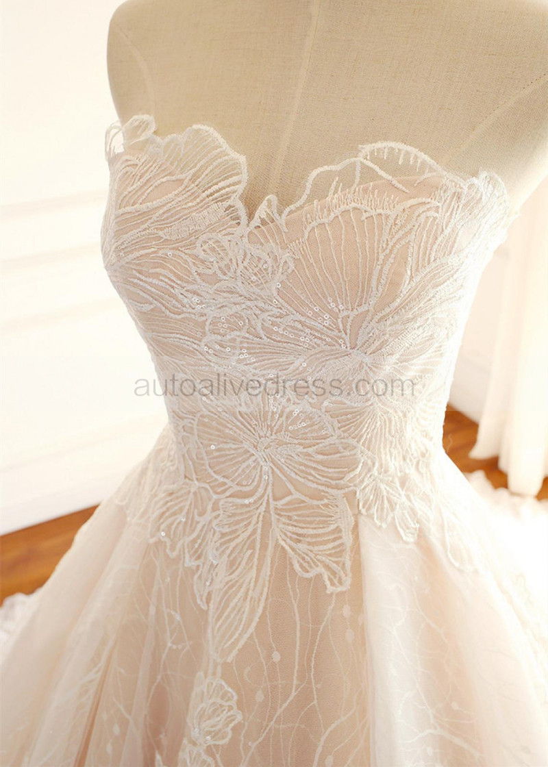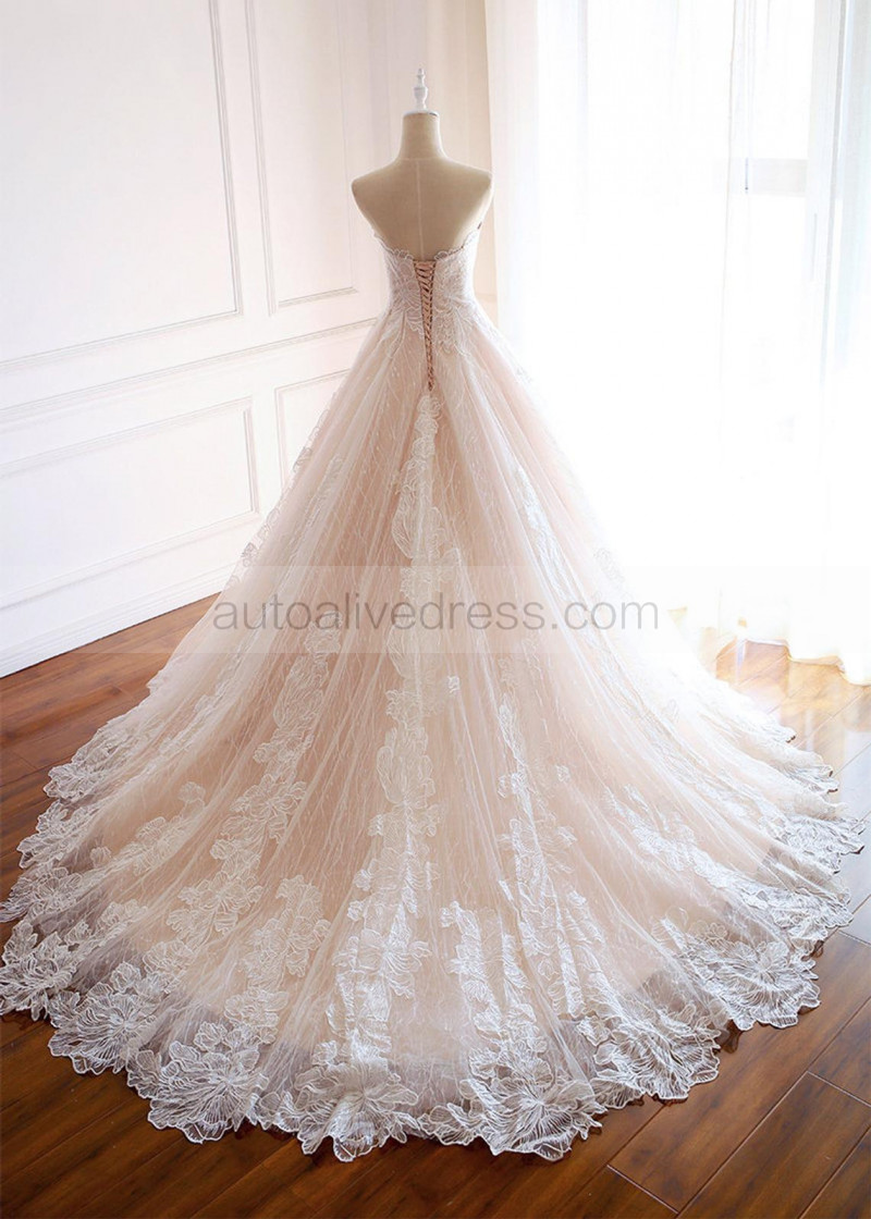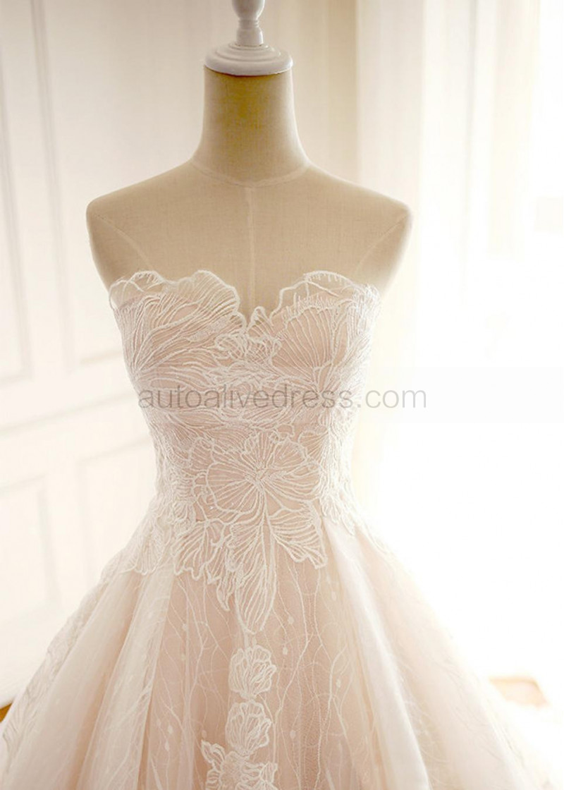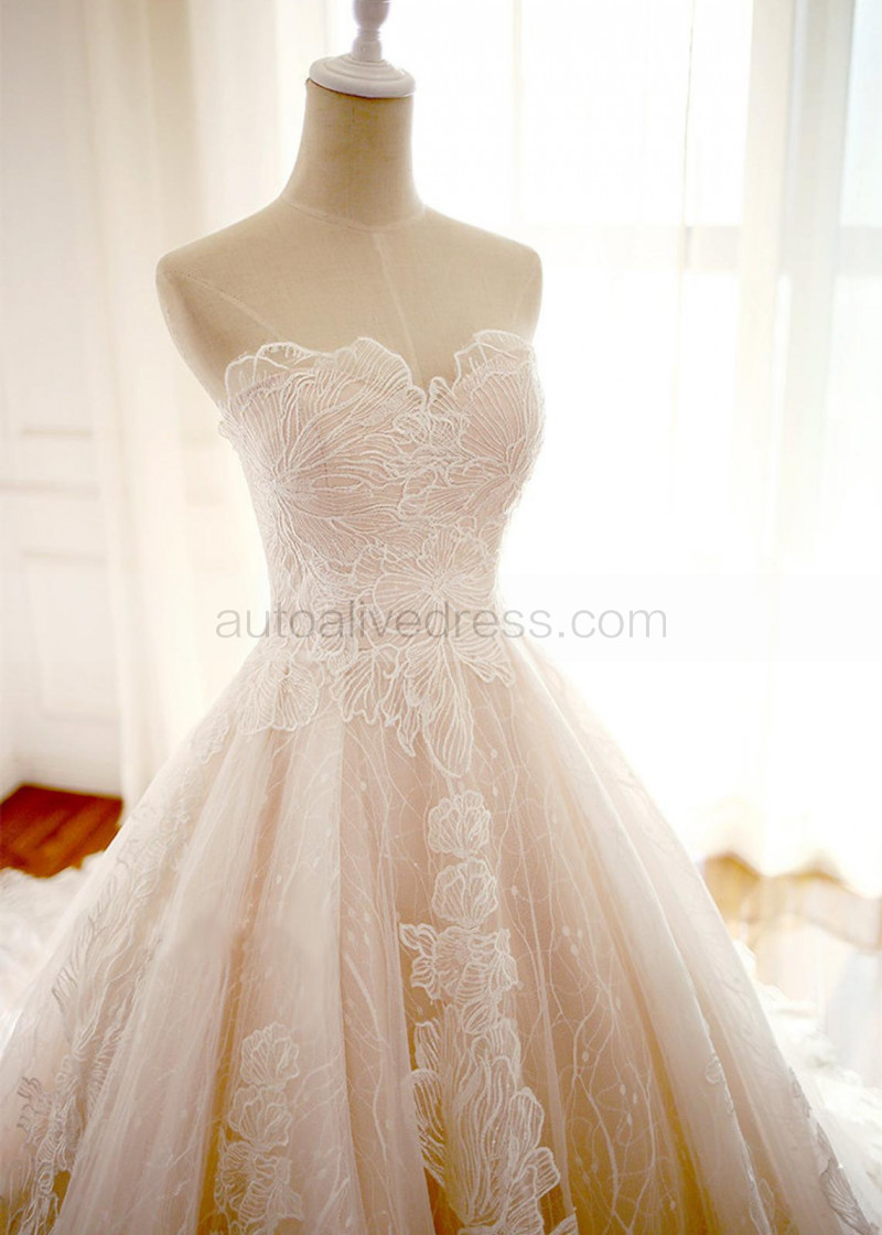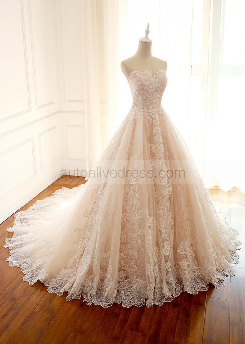Strapless Sweetheart Neck Vintage Lace Wedding Dress