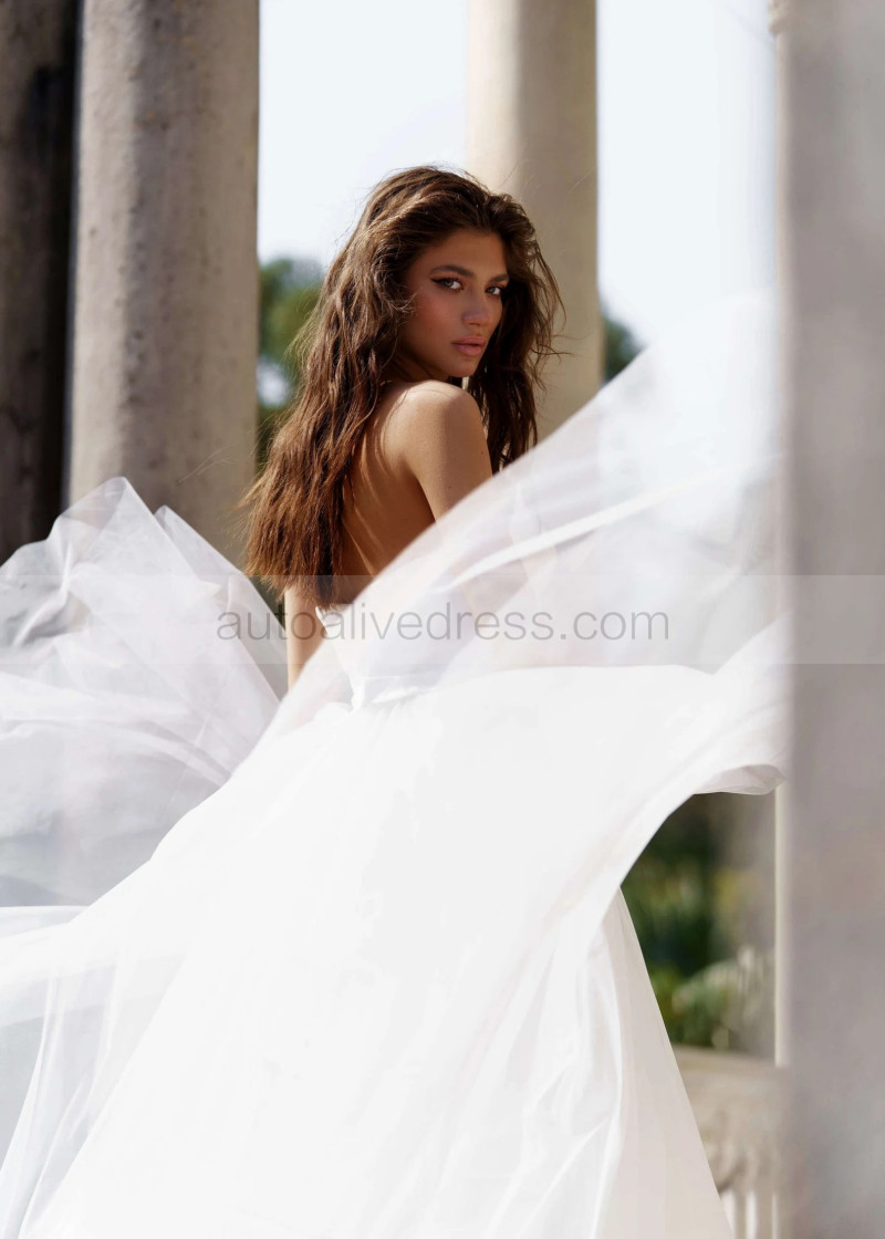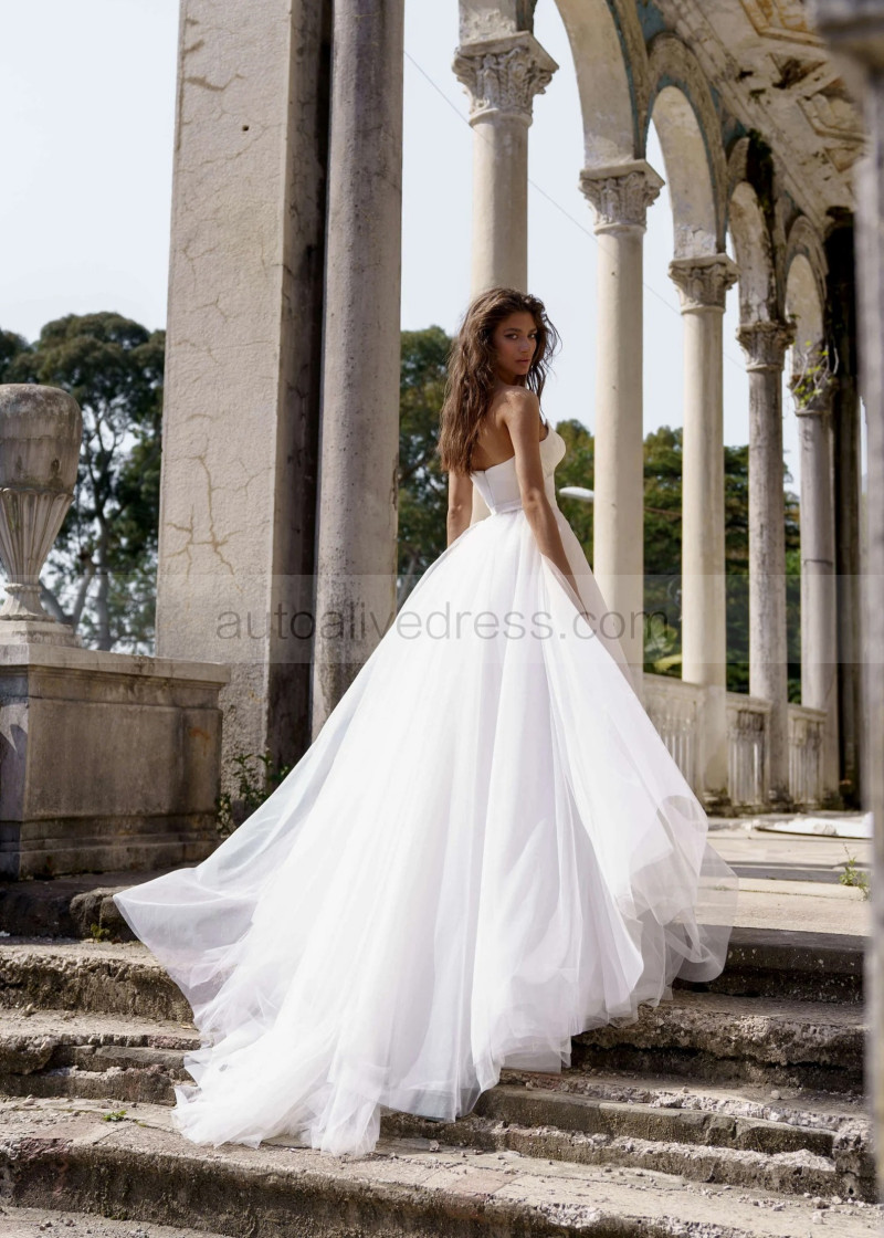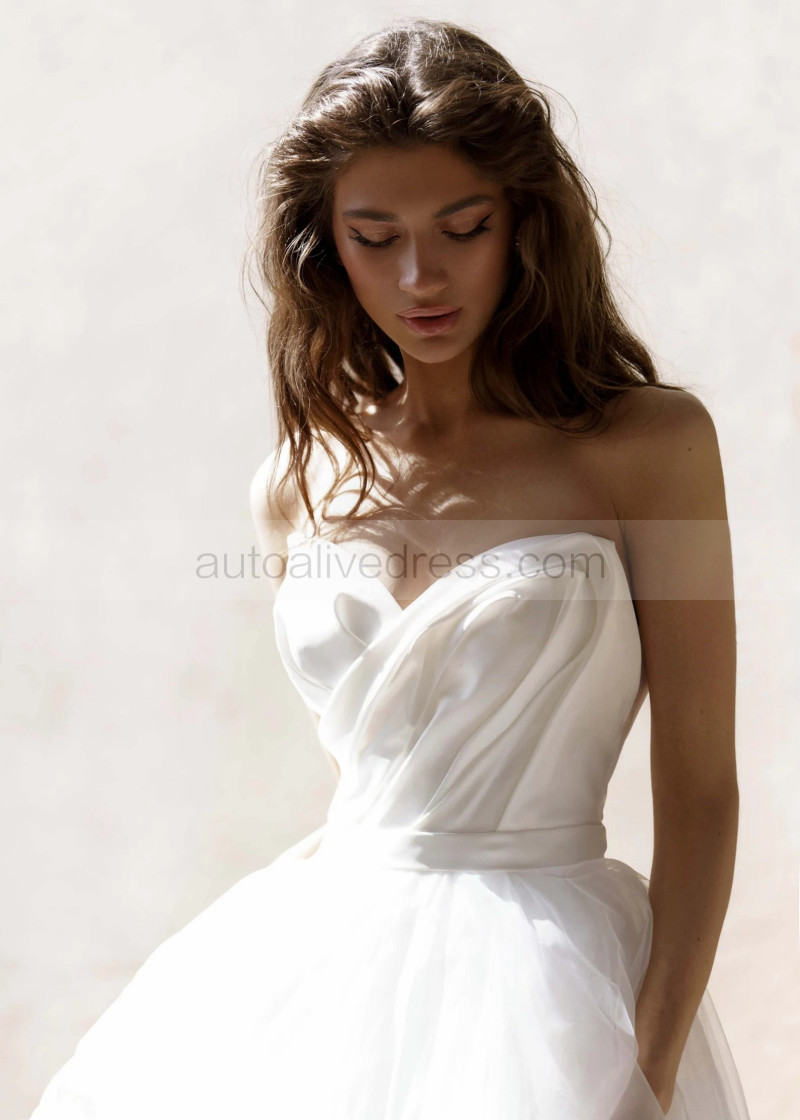 Strapless White Satin Tulle Simple Wedding Dress
