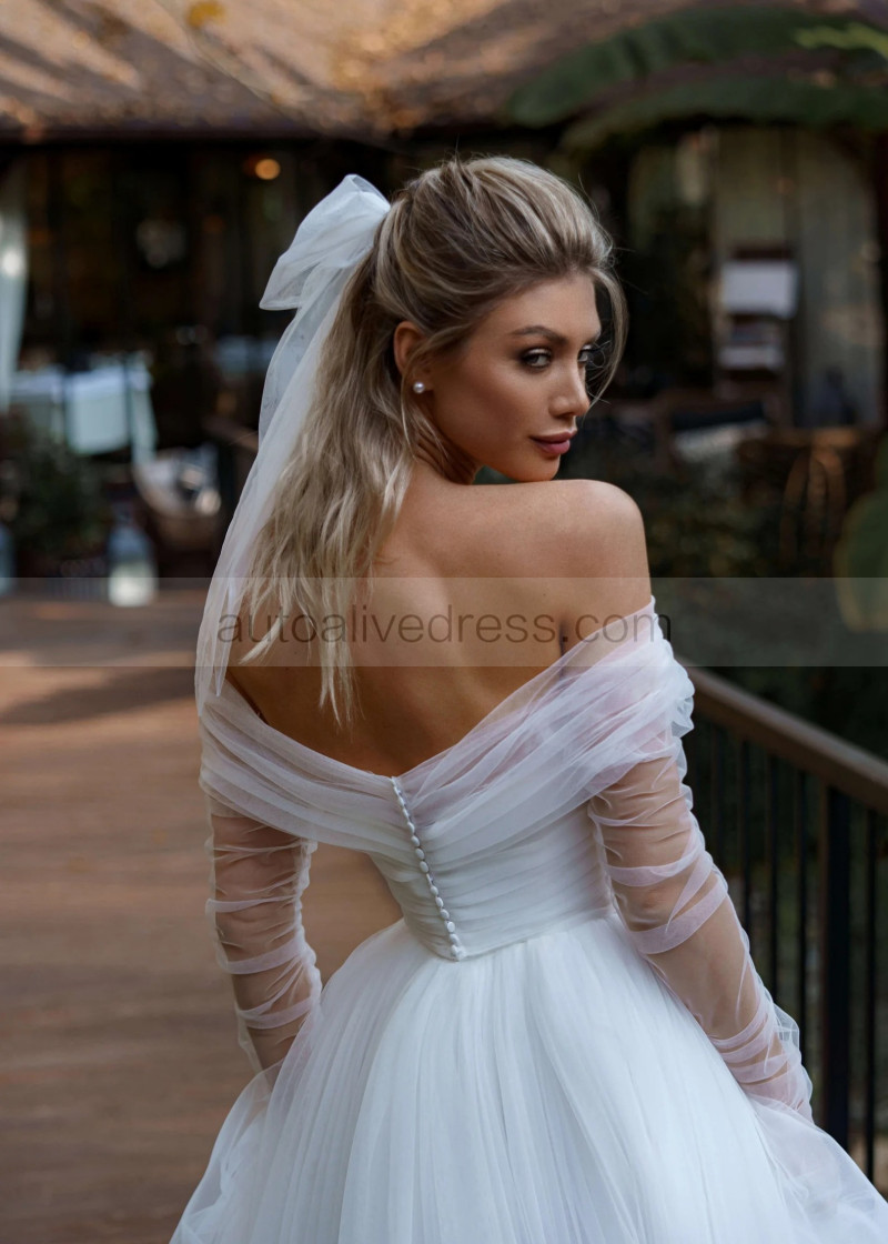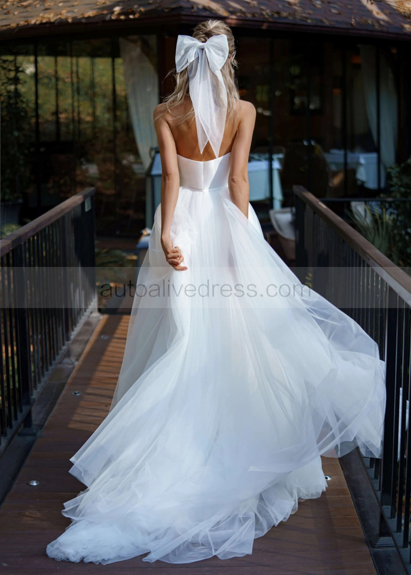 Strapless White Satin Tulle Wedding Dress With Detachable Bolero