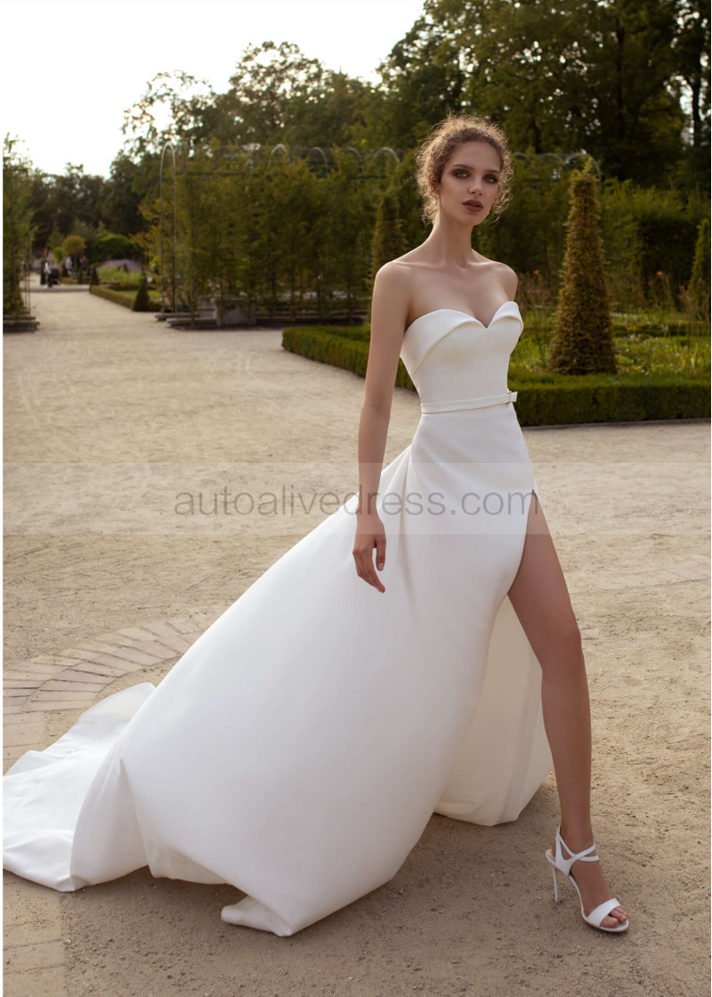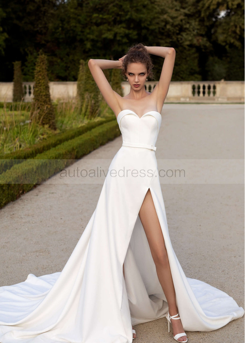 Sweetheart Ivory Satin Slit Modern Wedding Dress