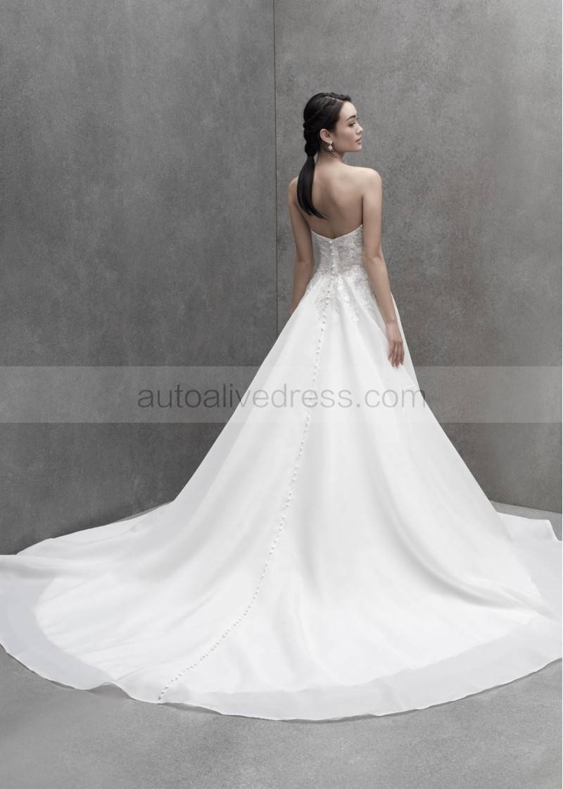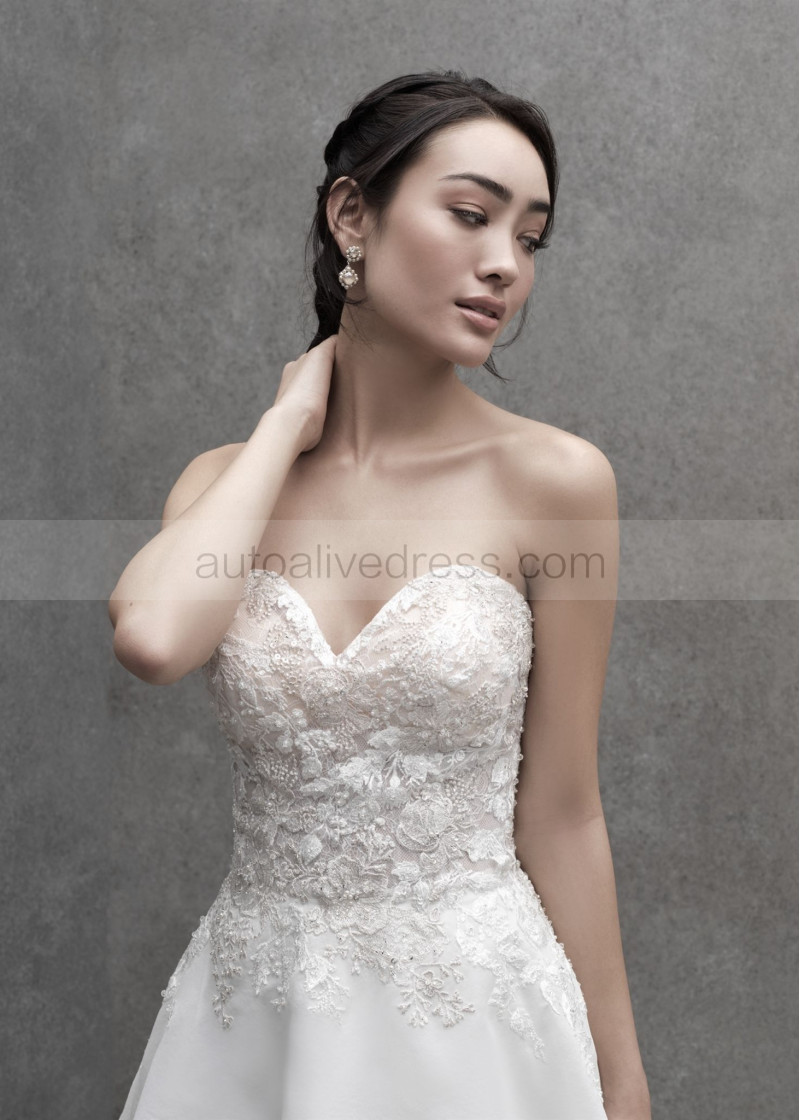 Sweetheart Neck Beaded Ivory Lace Organdy Wedding Dress